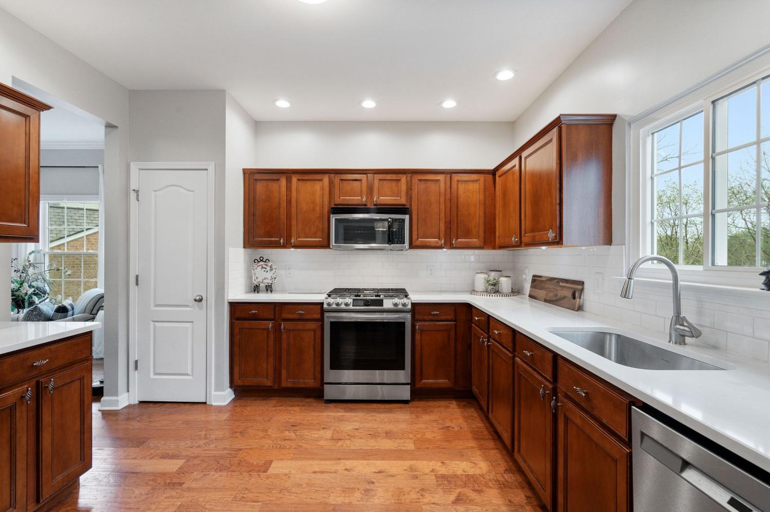 Welcome to this gorgeous all-brick 3-bed, 2.5-bath home nestled in the desirable Barnes Cove subdivision With this unique location, you can be in Brentwood in less than 5 minutes or head to I-65 or I-24 within 10 minutes. A special bonus: it’s located at the end of a cul-de-sac! As you walk up the steps and enter the front door, the living room greets you with its open, airy feel, with natural light flooding in through the large windows and spacious rooms. You also can’t miss the beautiful and inviting wooden balcony that goes up the staircase as you walk in. The home features a versatile bonus room upstairs and soaring 12-foot ceilings in the expansive basement. The beautifully appointed kitchen boasts sleek stainless steel appliances and dark natural wooden cabinets, along with a large sink and window offering a great view of the backyard while you do the dishes! Gleaming hardwood floors add warmth and character throughout the home. The living area has a large stone fireplace and many ceiling fans for added comfort! The primary bathroom has dual sinks and a large soaking tub! The basement is a showstopper with many windows and natural light - a great bonus! Step outside to your private backyard oasis, complete with a luxurious in-ground saltwater pool You’ll feel like you’re on vacation all the time! The fully fenced lot ensures privacy, making it an ideal space for entertaining or relaxing in style. With ample living space and elegant finishes throughout, this home is a true gem in Barnes Cove. Don’t miss your opportunity to experience it in person, schedule your showing TODAY! ****Receive a 1% discount—up to $5,000—when you use our preferred lender!