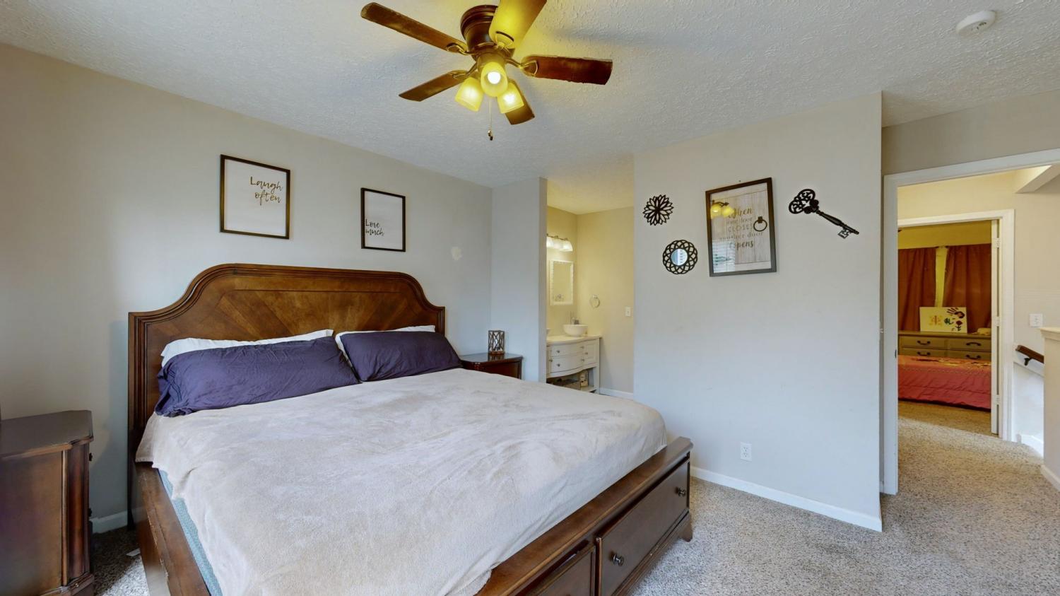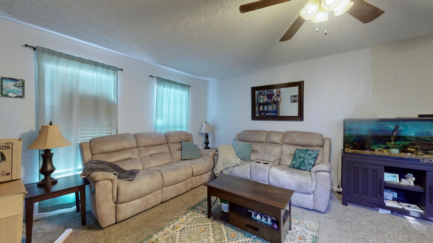 The property has undergone several recent updates, including a fresh coat of paint throughout the entire house, as well as a thorough cleaning. Other notable updates include the replacement of the water heater approximately 2.5 years ago, the installation of a comprehensive water softener system with a reverse osmosis spigot at the kitchen sink, new kitchen backsplash, and new flooring in the kitchen and dining areas. Furthermore, a ReBath renovation in 2024 replaced the tub and surrounding walls. It is worth noting that there is no HOA. The seller is willing to have the carpets cleaned prior to closing and will include the Nest cameras and additional upstairs air conditioner in the sale.