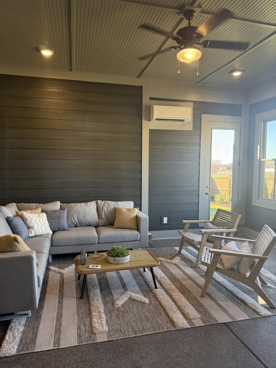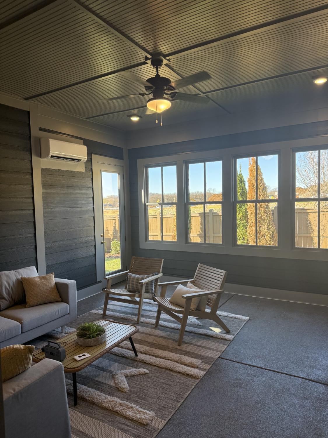 Enjoy relaxing mornings and evenings on the inviting wraparound porch of the best selling Hayes floor plan! Inside, the spacious kitchen is a chef’s dream—featuring stacked cabinets to the ceiling, high-end GE Café appliances, a generous walk-in pantry, and plenty of space to cook and entertain on the quartz countertops. The main floor includes a luxurious primary suite with a soaking tub and a tray ceiling lined with modern stained beams. 3 car garage, oversized laundry room and primary BR and office on the main floor make the Hayes a best seller. Relax in the heated/cooled sunroom that’s enclosed by a wood privacy fence and greenery. This well-appointed home blends style, comfort, and everyday practicality—all on a desirable corner lot. Homeowners will enjoy walking to the future June Lake town center and experiencing resort-style amenities including resort style pool, clubhouse with a fitness center, playground, pickleball court, and more!