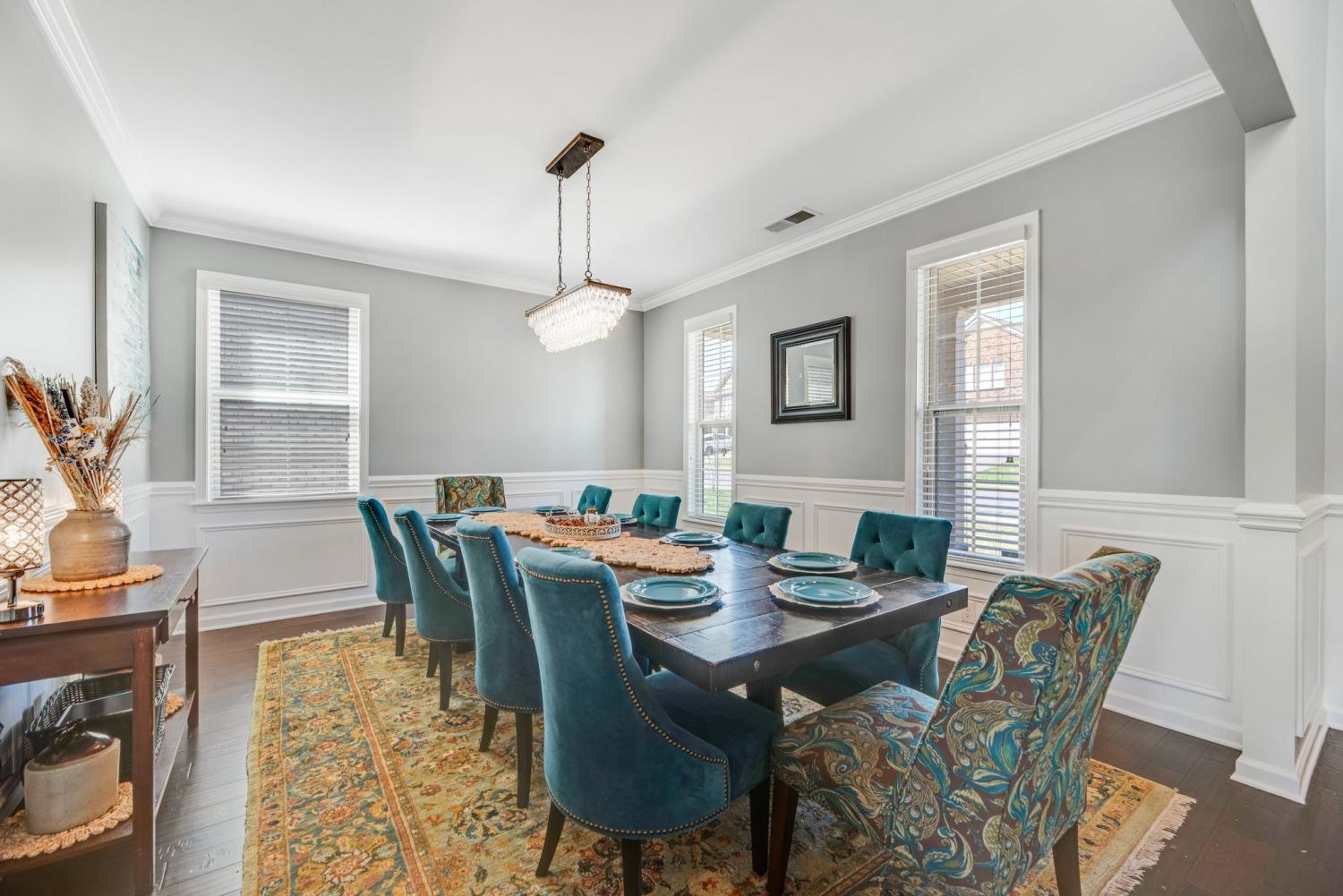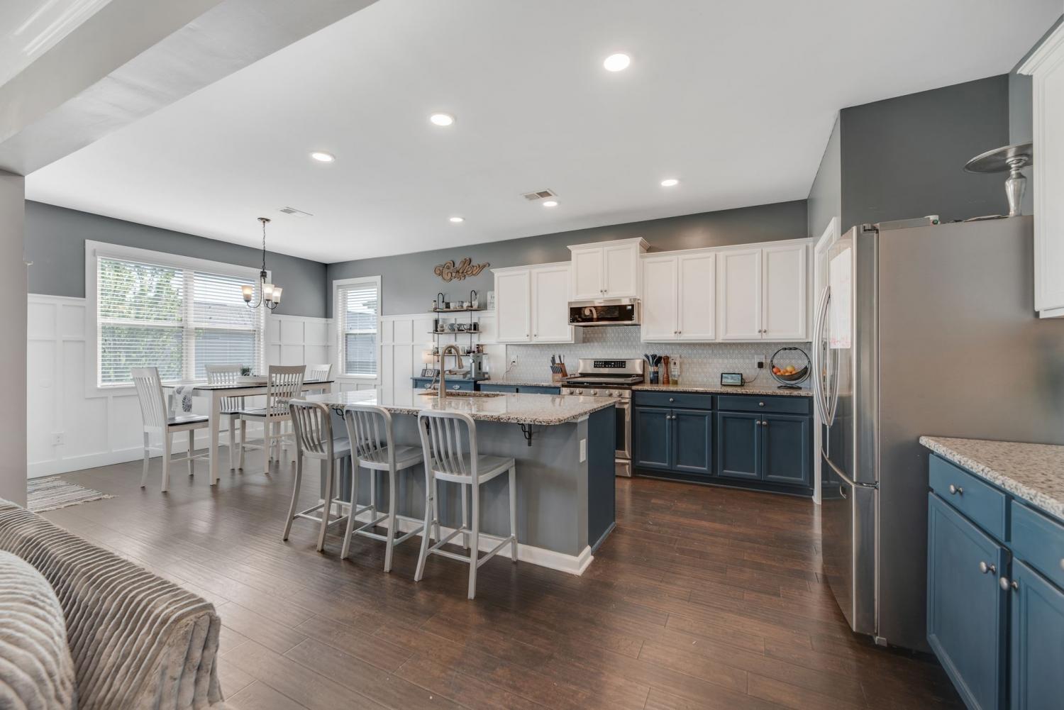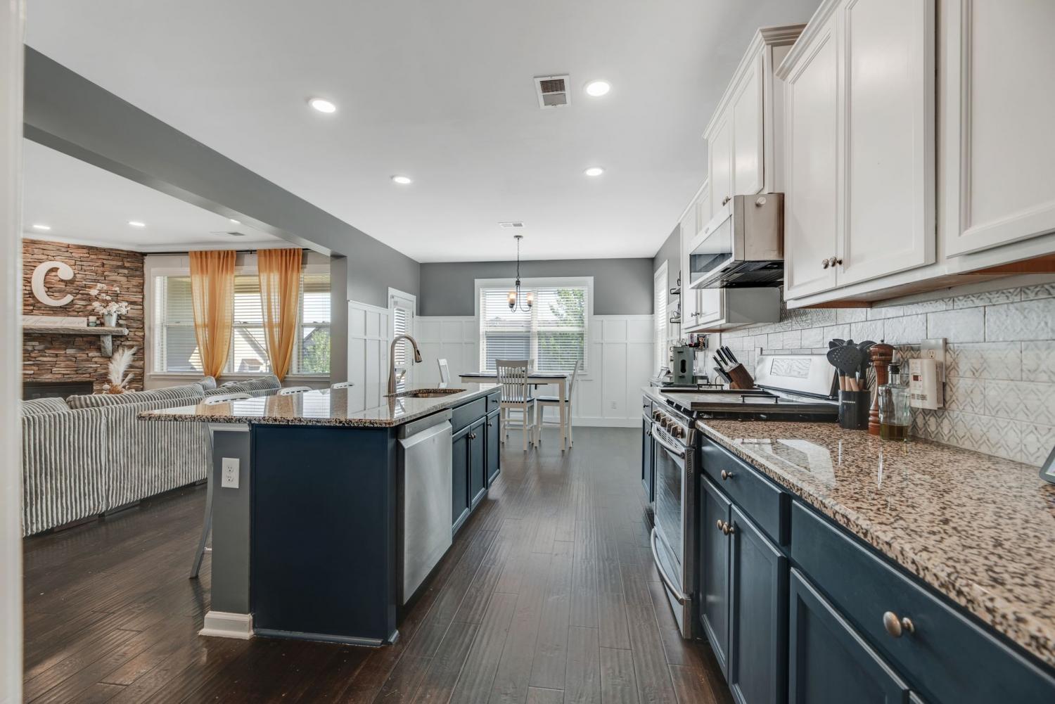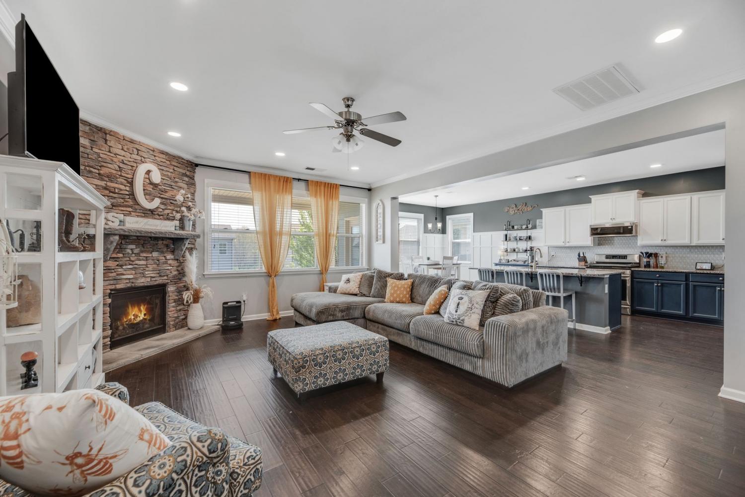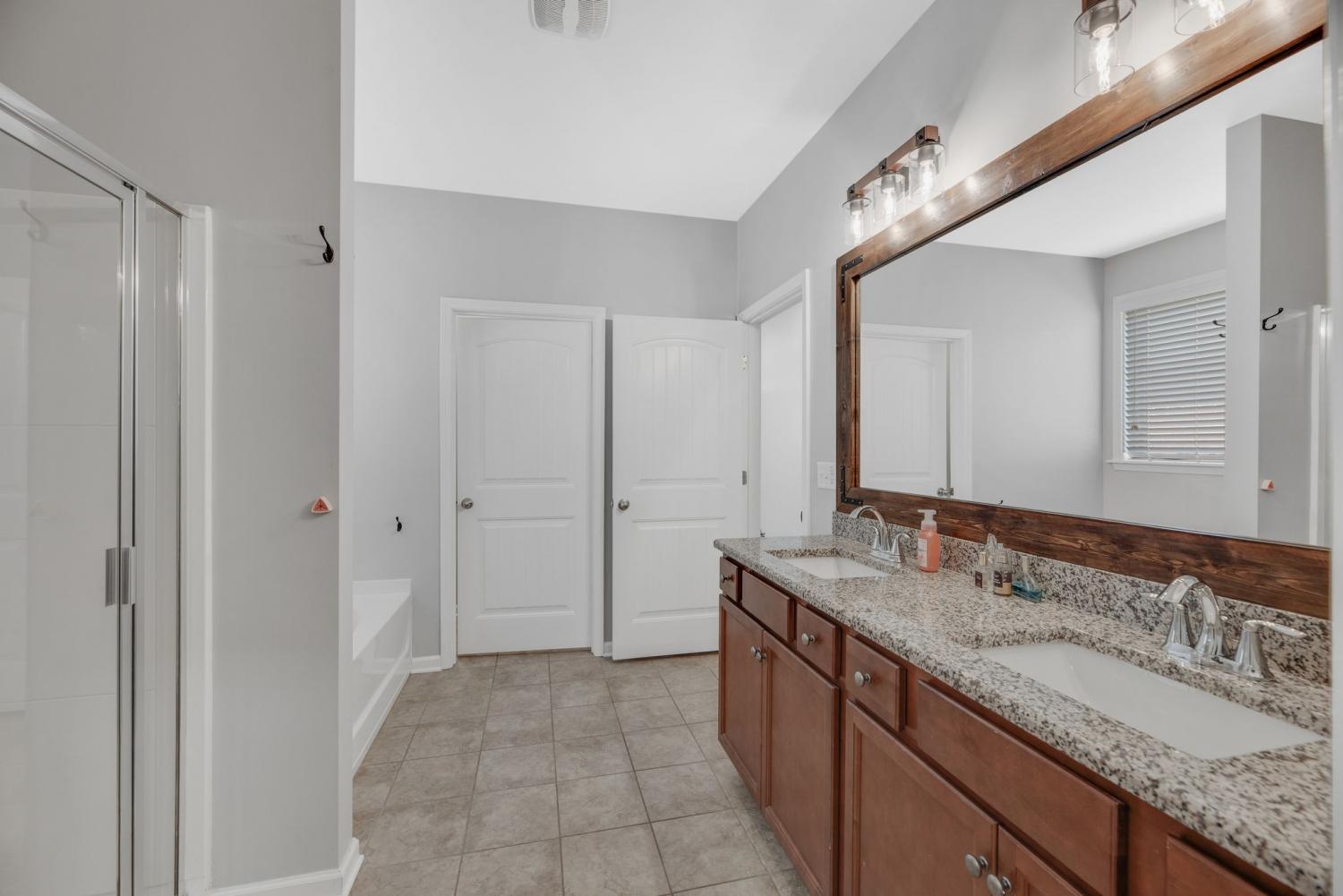 This spacious 5 bedroom, 3.5 bath house is perfect for your large family! Open floor plan with primary bedroom downstairs, 4 bedrooms upstairs with a large bonus room and 2 full bathrooms. TWO LAUNDRY ROOMS! Large walk in pantry with updated shelving. Great front porch and patio area to enjoy grilling this summer! Sidewalks throughout the neighborhood makes family walks and bike rides a breeze. Community pool, green spaces, and pond. Community events and food trucks give the family tons to do within walking distance. TRIPLE STEWARTS SCHOOLS!
