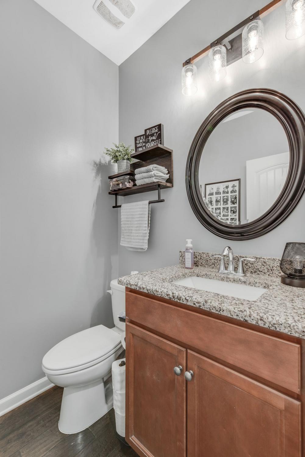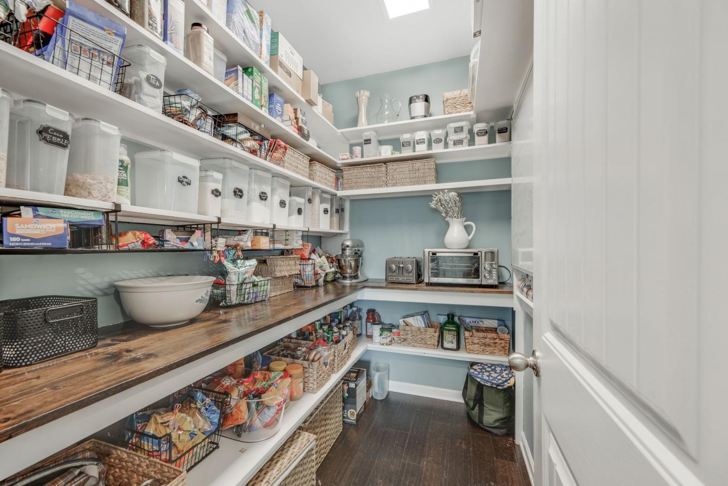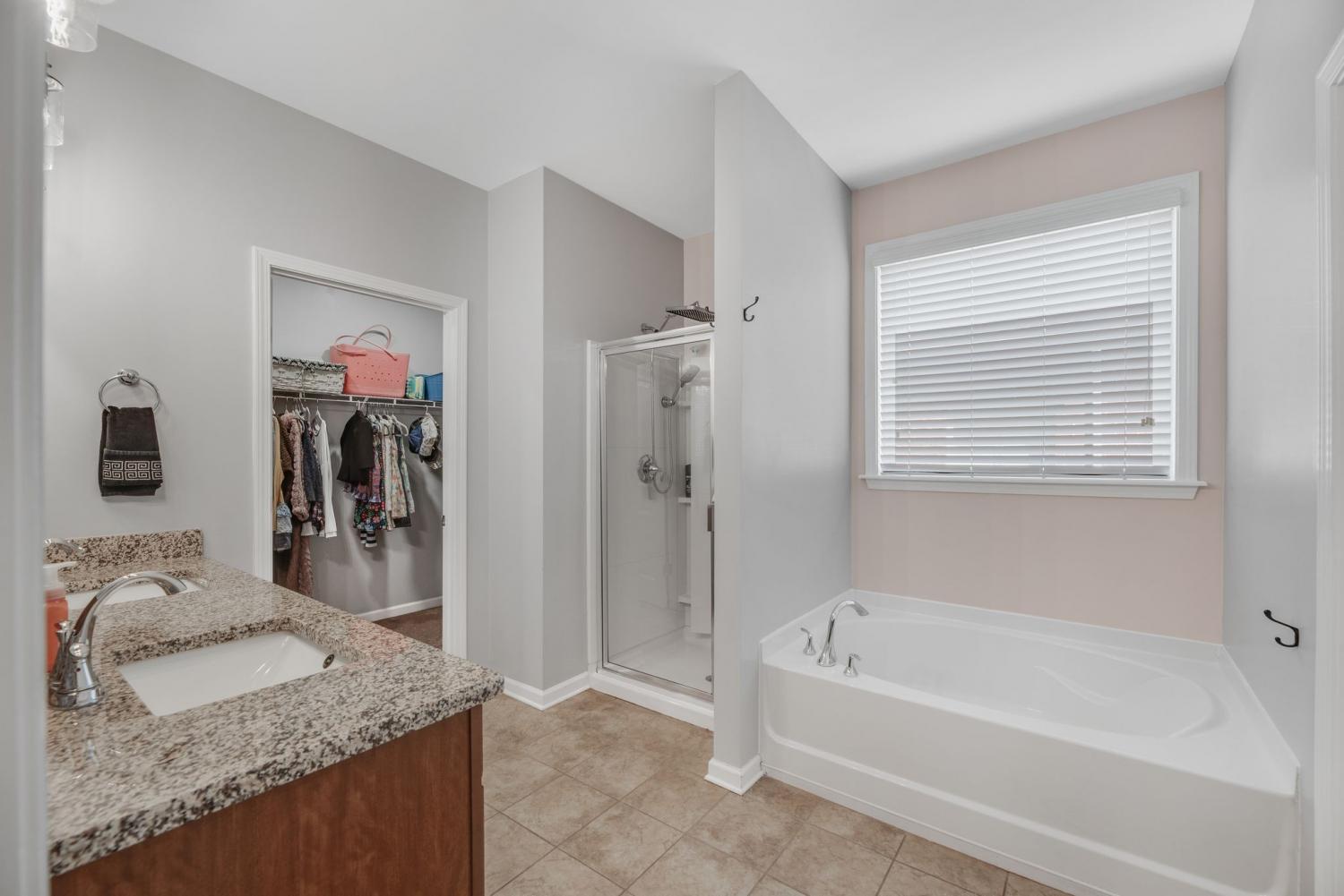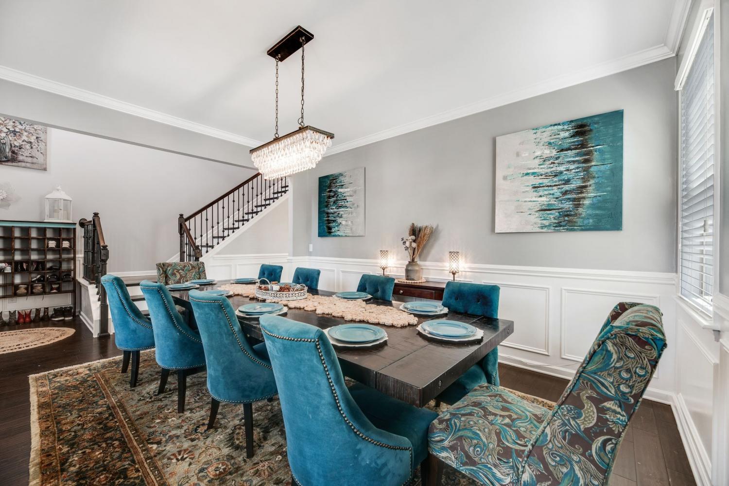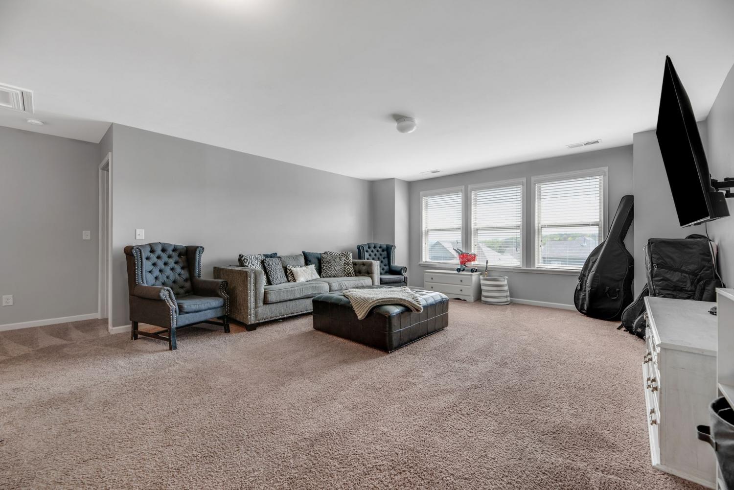 This spacious 5 bedroom, 3.5 bath house is perfect for your large family! Open floor plan with primary bedroom downstairs, 4 bedrooms upstairs with a large bonus room and 2 full bathrooms. TWO LAUNDRY ROOMS! Large walk in pantry with updated shelving. Great front porch and patio area to enjoy grilling this summer! Sidewalks throughout the neighborhood makes family walks and bike rides a breeze. Community pool, green spaces, and pond. Community events and food trucks give the family tons to do within walking distance. TRIPLE STEWARTS SCHOOLS!