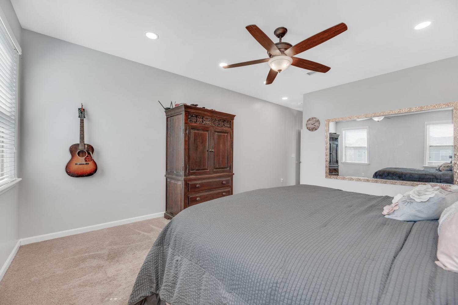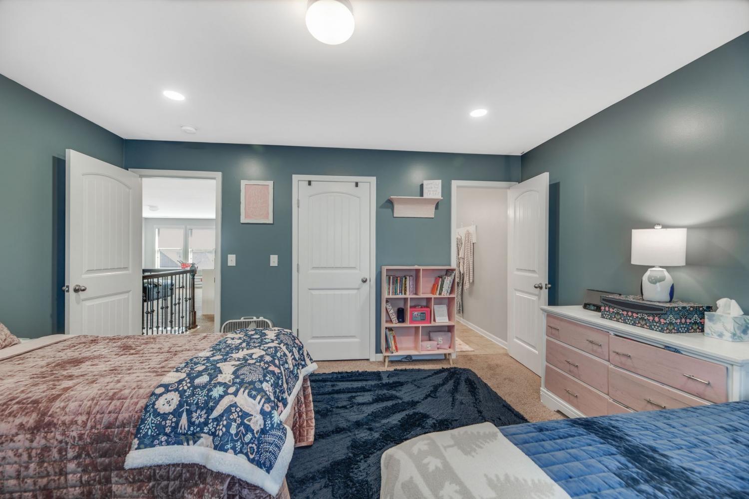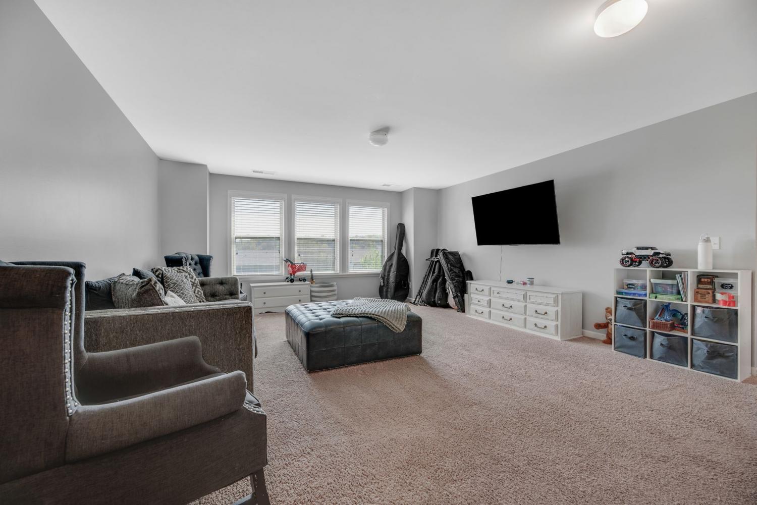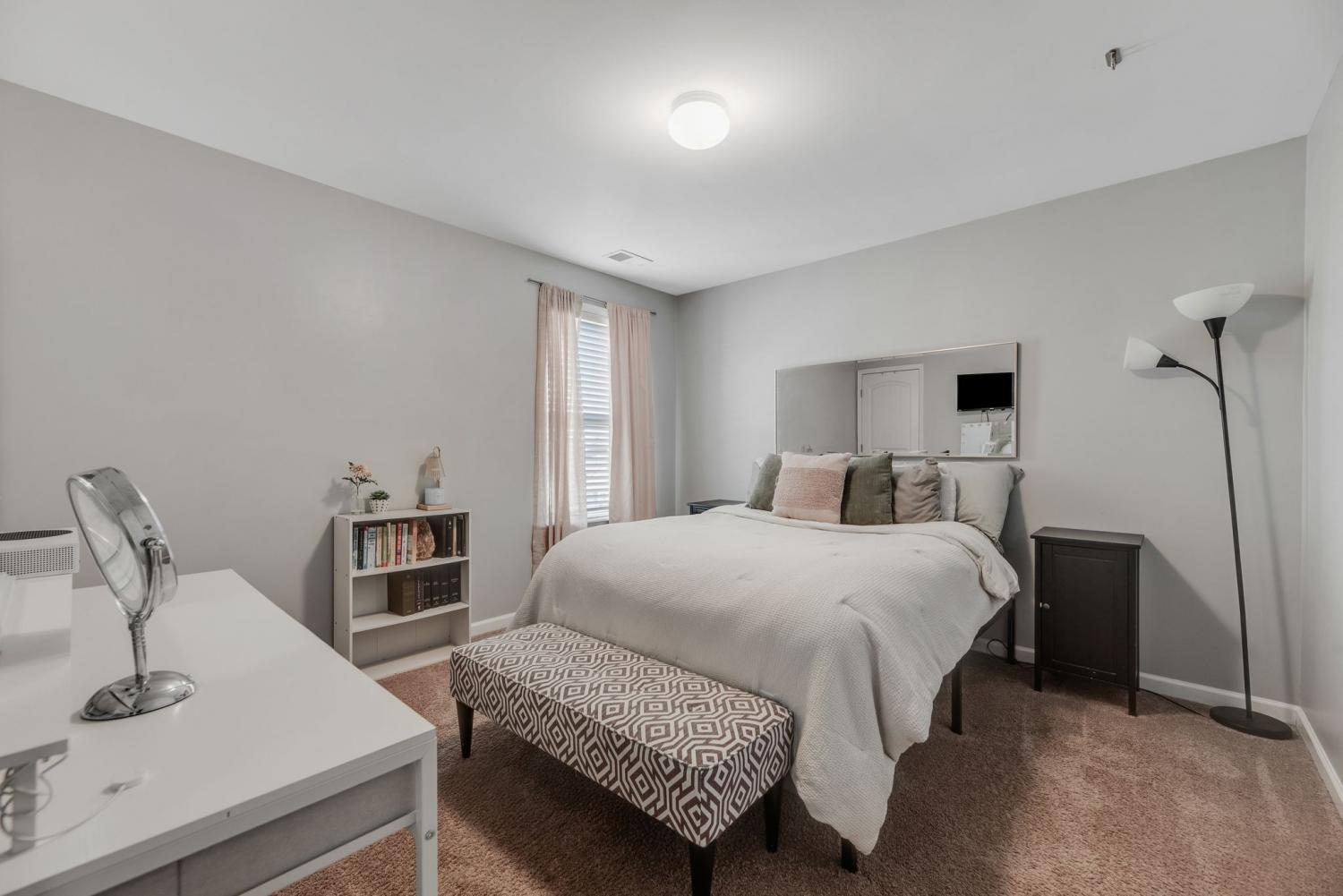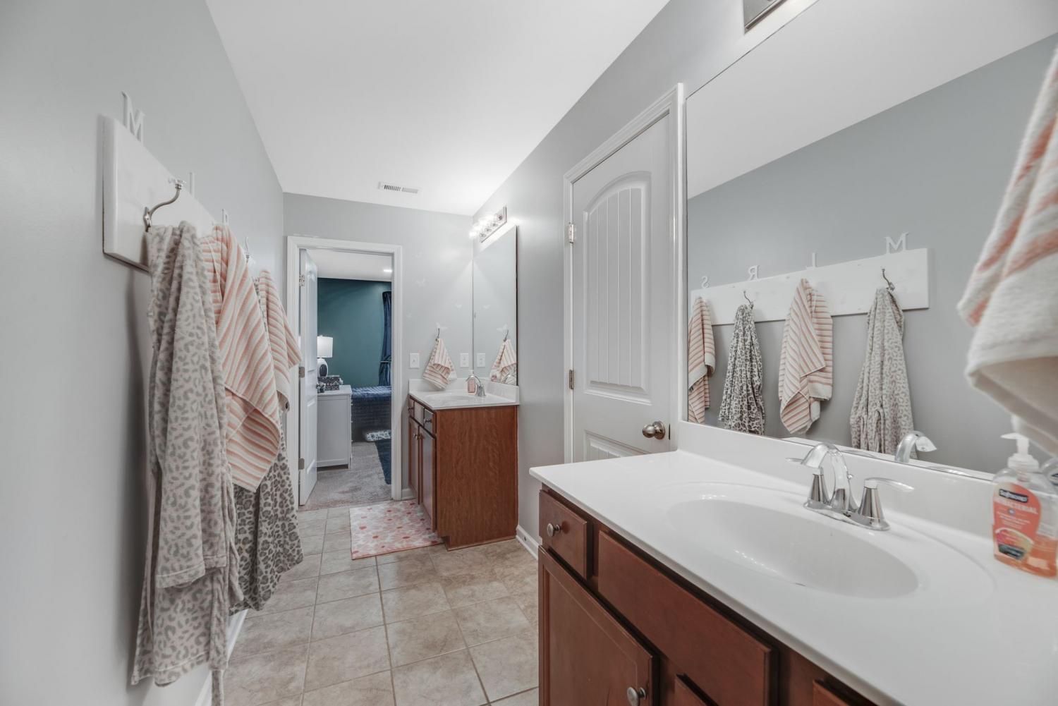 This spacious 5 bedroom, 3.5 bath house is perfect for your large family! Open floor plan with primary bedroom downstairs, 4 bedrooms upstairs with a large bonus room and 2 full bathrooms. TWO LAUNDRY ROOMS! Large walk in pantry with updated shelving. Great front porch and patio area to enjoy grilling this summer! Sidewalks throughout the neighborhood makes family walks and bike rides a breeze. Community pool, green spaces, and pond. Community events and food trucks give the family tons to do within walking distance. TRIPLE STEWARTS SCHOOLS!