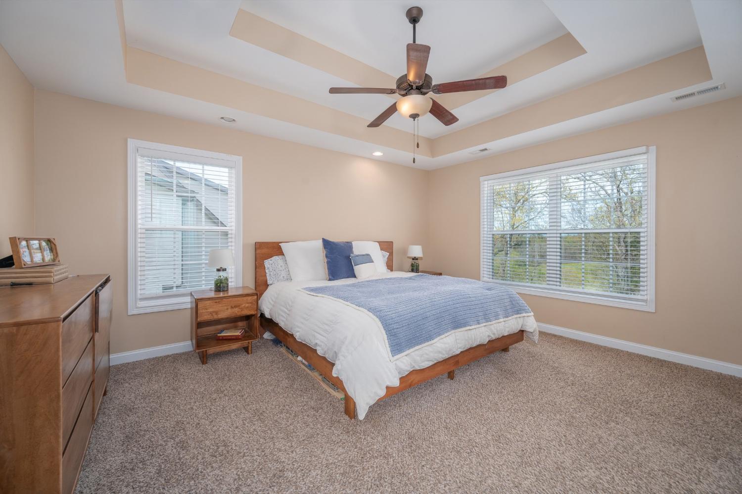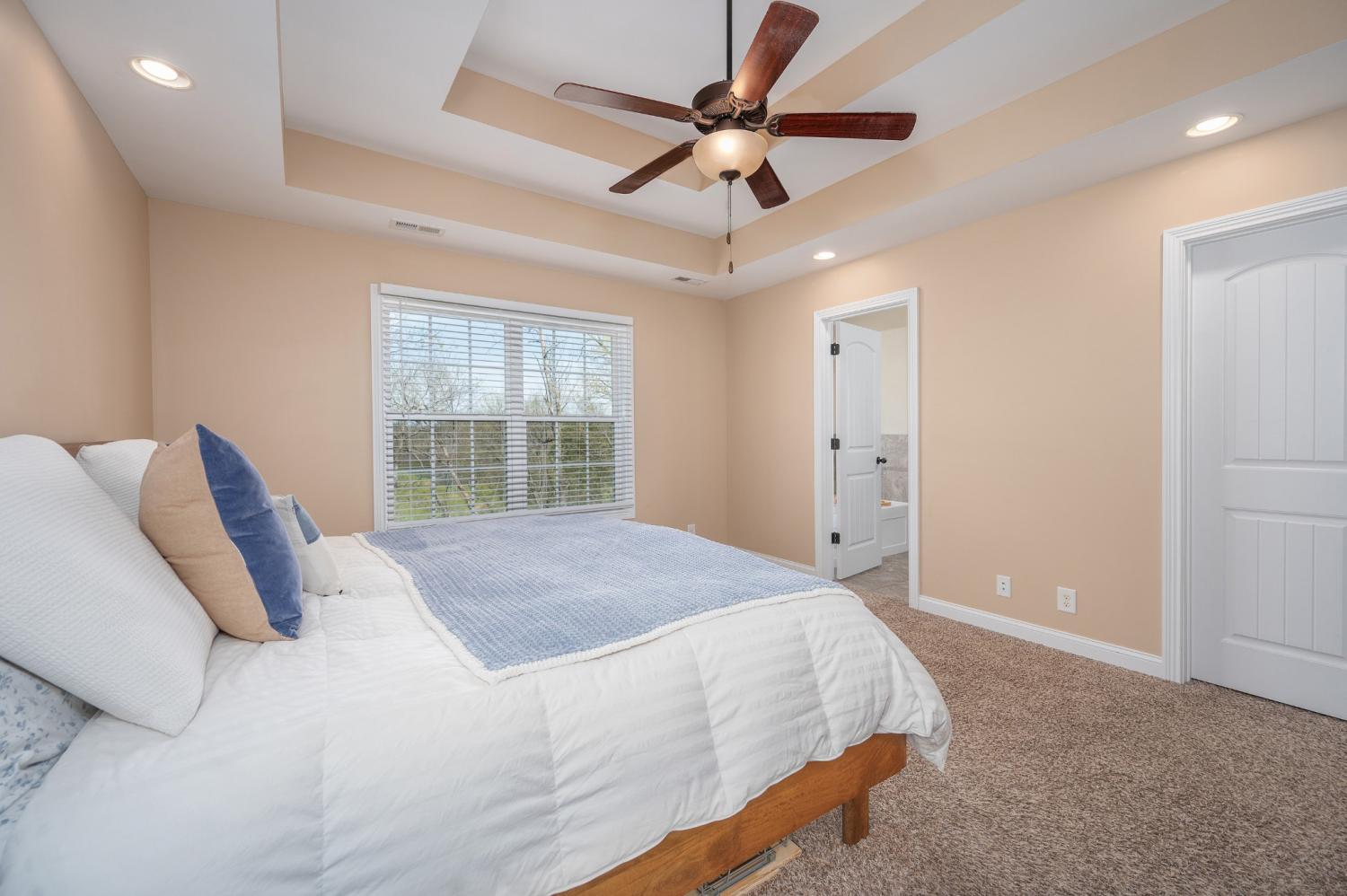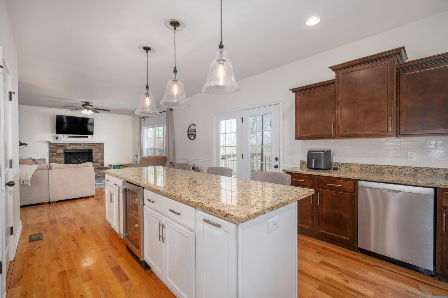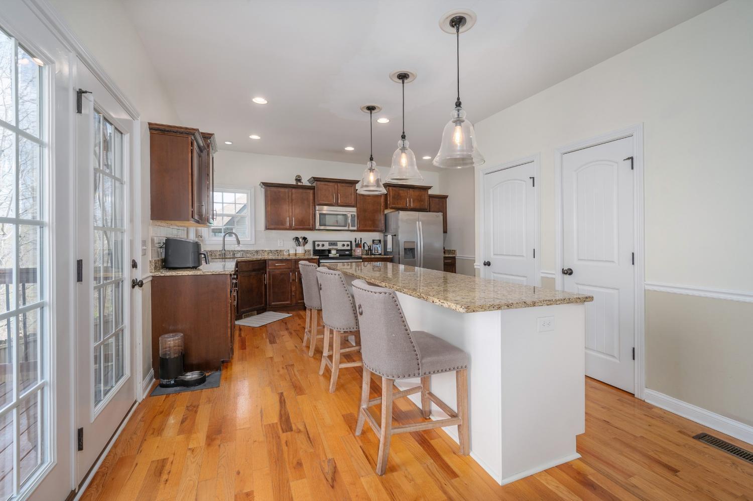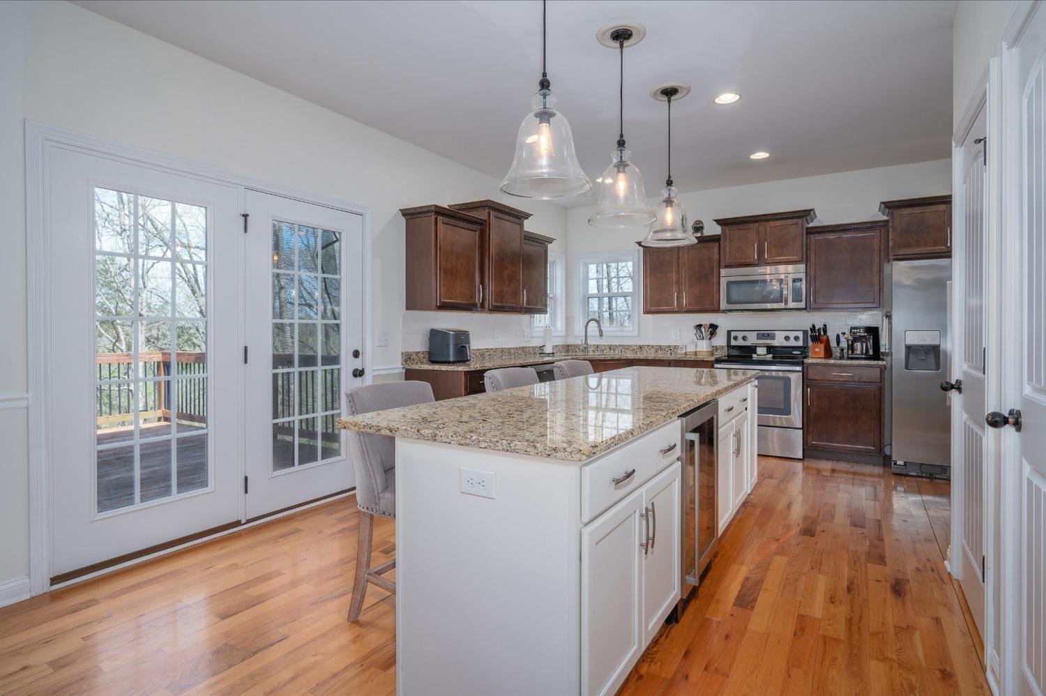 This stunning 2-story home features 4 bedrooms and 2.5 bathrooms. Nestled on a large fenced lot with mature trees and no backyard neighbors, it offers picturesque views of the beautiful river during winter months. The spacious primary suite includes a luxurious ensuite with a separate shower and tub, as well as double vanities. Relax in the great room by the cozy fireplace, or enjoy cooking in the large updated kitchen, complete with stainless steel appliances and an island featuring a fantastic beverage cooler—truly a chef's dream. Step out onto the deck to embrace outdoor living or unwind on the custom patio. The charming covered front porch enhances the home's curb appeal. Additionally, the separate dining room and laundry room with custom cabinetry provide extra convenience and functionality. Located just a 30-minute drive from Nashville, this home is not to be missed!