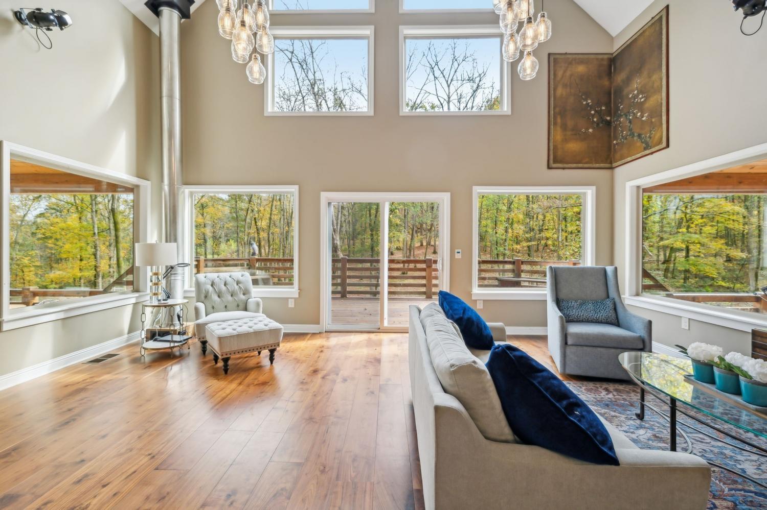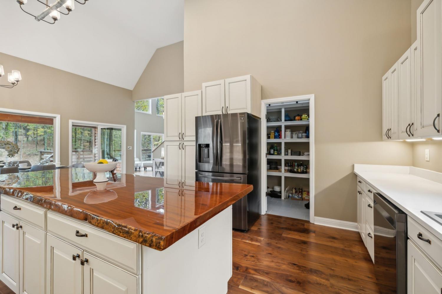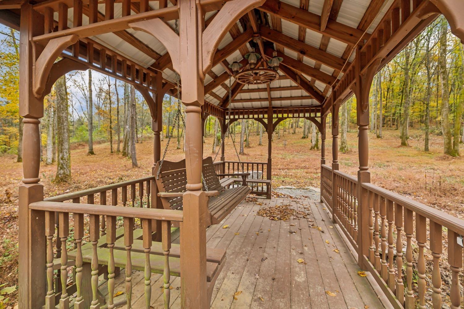 "The Heart of TN Living" Nestled within a serene, gated community on 5 breathtaking wooded acres, this stunning cedar home tells a story of craftsmanship, heritage, & connection to nature. Step into a world where the soul of Tennessee is captured in every detail. Just a short walk from the lake, this home blends luxurious living with the tranquility of nature. Enter the Great Room, where TN black walnut stair rails rise to greet you, custom-milled to showcase the beauty of locally sourced wood. Overlooking this space is a unique coffee nook featuring antique wrought iron, lovingly restored from the property. The natural TN stone walkways, firepit areas&stacked stone around frame&cedar construction merge seamlessly into the lush landscape, creating inviting outdoor spaces for gathering, relaxation, and play. At the heart of this home’s outdoor allure are the expansive 800’ cedar decks. This remarkable space provides sweeping views inviting you to enjoy al fresco dining, entertaining, or simply basking in its peacefulness. It’s an ideal setting for enjoying sunlit mornings or starry TN nights, a true extension of the home’s warmth & character. Included are thoughtfully crafted amenities: outdoor disc golf meandering through the woods, a shooting range for enthusiasts, and a charming gazebo-covered bridge crossing a gentle creek. The property is a sanctuary of nature’s gifts, with a thriving fruit orchard and a 50-foot stretch of hand-crafted vegetable & flower planters, offering seasonal abundance & vibrant colors. harvesting fresh produce right from your own land-true gifts from the earth that enrich the home’s ambiance and provide an organic farm-to-table lifestyle. For added peace of mind, a cedar-lined safe room stands ready within. From the charming outdoor spaces to the luxurious interior features, every inch of this home radiates a sense of place & purpose. More than a residence, this is a retreat- an invitation to experience TN living in its pure form