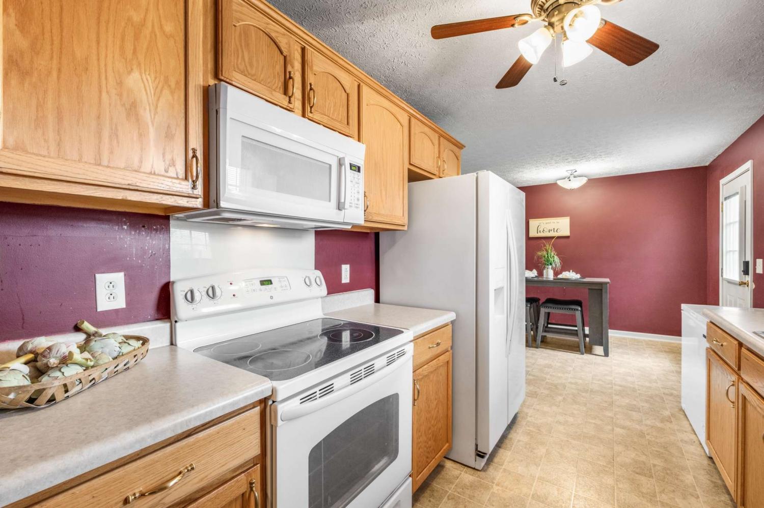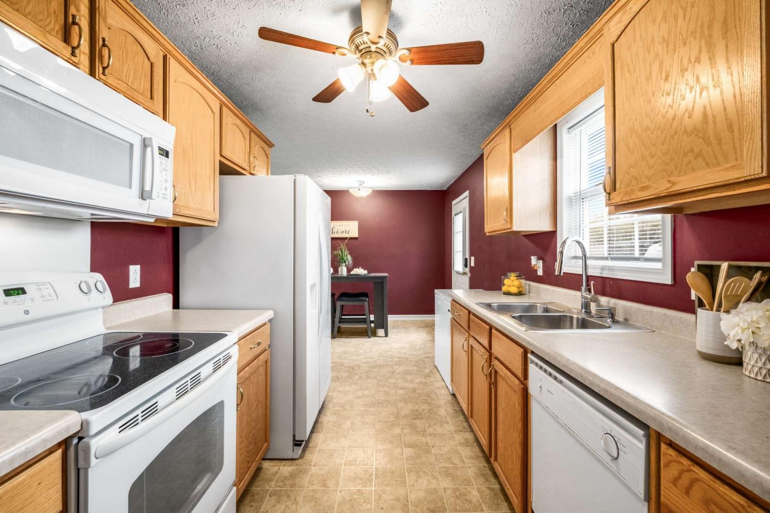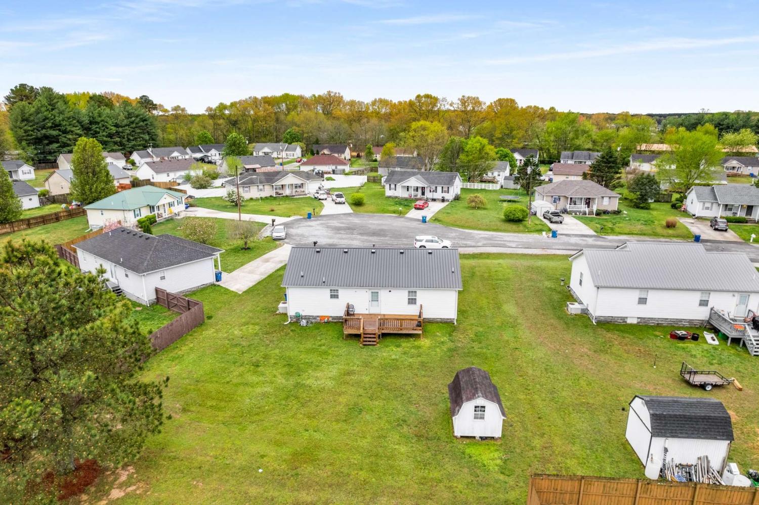 Adorable 3-bedroom, 2-bath home nestled on a cul-de-sac lot in the heart of Manchester- just minutes from everything you need! All kitchen appliances remain. The primary suite features a walk-in closet and a double vanity, while two additional bedrooms share a second full bath. Enjoy relaxing on the covered front porch or hosting summer BBQs on the large back deck, overlooking the big backyard. Additional highlights include a generous laundry room with shelving, a durable metal roof, and outdoor storage for all your tools and yard equipment. This home is being sold as-is and offers an incredible opportunity in a convenient location!