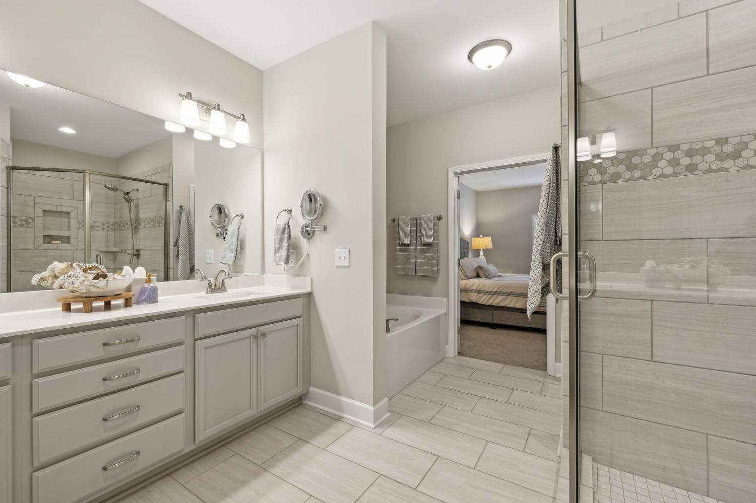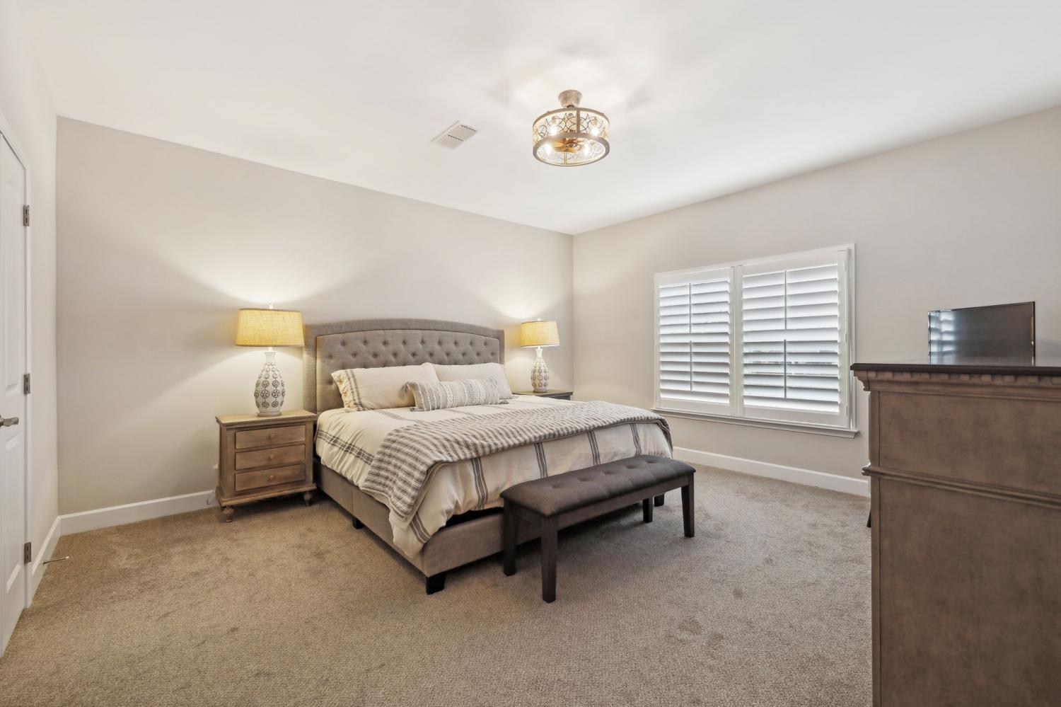 This stunning home is better than new, offering elegance, comfort, and low-maintenance living—all nestled in the desirable StoneBridge community. Step into a warm and inviting open living area featuring a cozy fireplace, and timeless plantation shutters. The modern kitchen is beautifully designed with granite countertops, stainless steel appliances, soft-close cabinets, under-cabinet lighting, a tiled backsplash, and a spacious walk-in pantry. The owner’s suite is a true retreat, boasting an oversized shower, soaking tub, linen closet, and a custom-organized closet. Utility room includes overhead cabinets and a utility sink for extra convenience. Upstairs features a finished expansive flex space offers endless possibilities—perfect for a home office, media room, or whatever fits your lifestyle—complete with a full bathroom for added functionality. Upgraded light fixtures throughout the home add a touch of elegance and modern style to every room. Storage is plentiful with extra large closets and a walk-in attic for added convenience. Both the garage and screened patio feature epoxy-coated floors, ensuring durability with a sleek, polished finish. Plus, enjoy extra guest parking and the privacy of a low-traffic, dead-end street. HOA Includes: Lawn maintenance, Landscaping, Irrigation, Trash pickup and Water/sewer.Community Amenities: Clubhouse, Pool, Gym and walking trails with a pond. Conveniently located near shopping, dining, top-rated schools, and I-24. Don't miss this move-in ready home! It perfectly blends style and convenience and is just waiting for you to call it your own!