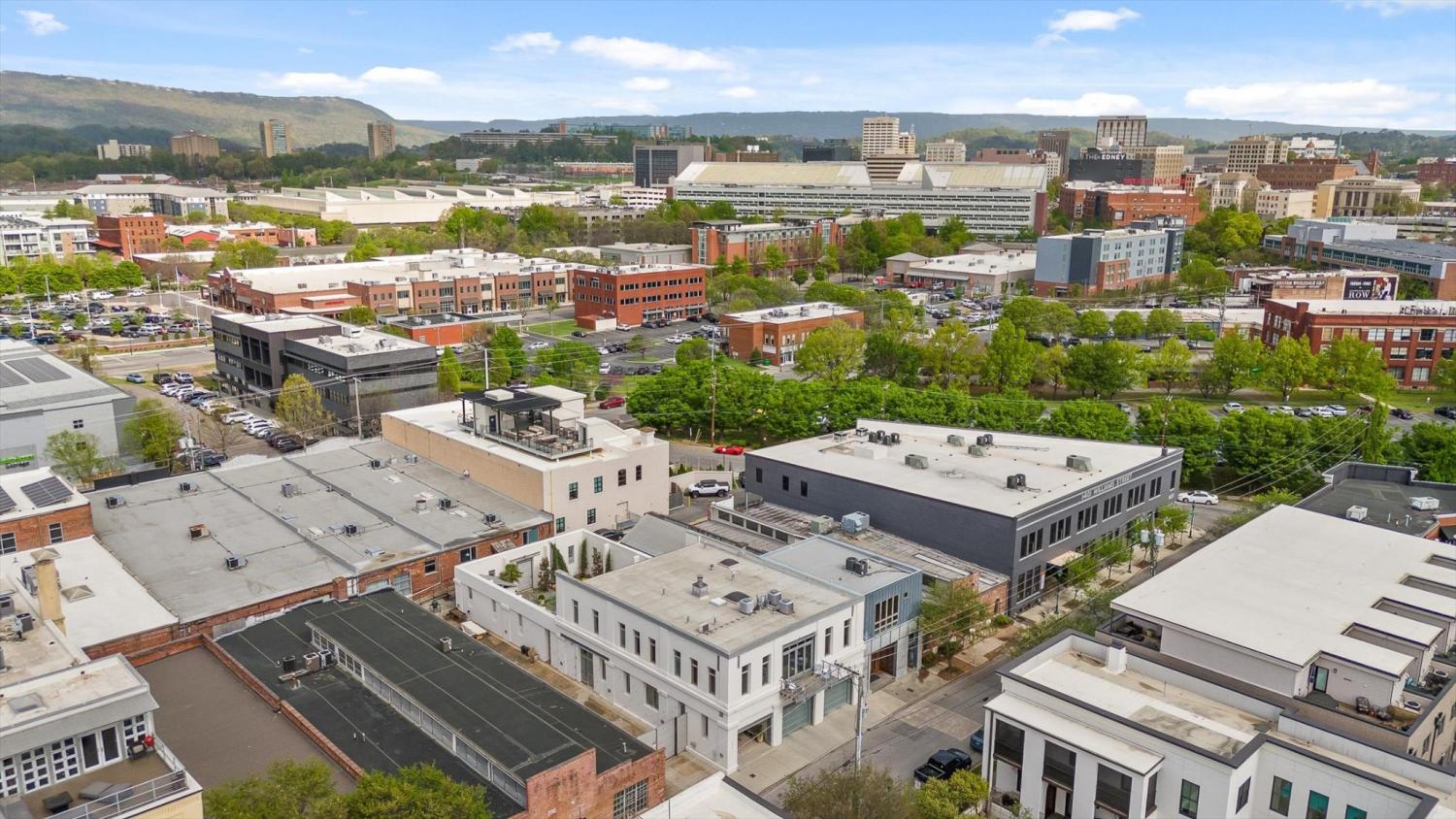 Do Not Miss this Architectural Masterpiece in the Heart of Southside. One of the first mixed-use spaces to be built during the revitalization of Southside - 1405 Williams is a true cornerstone of the neighborhood. Designed by Hefferlin + Kronenberg Architects, this building was built for artists to serve as their commercial gallery, working studio and residence. In 2005, the property won an AIA Architecture Excellence Award as an outstanding example of mixed-use space. The combination of residential, commercial and creative space offers multiple options for the next owner to establish their own footprint in Chattanooga's beloved Southside district. Facing Williams Street, the three-story facade has an industrial feel with a limestone and zinc exterior and a dramatic series of 10-foot doors opening into the vaulted gallery. The second level is a great room with a wall of windows and full bath. The residence is on the top floor and has an open living space with floor-to-ceiling windows highlighting the mountains. An intimate, European-inspired courtyard connects the front building with the rear studio. This courtyard features beautiful stonework as well as a mosaic mural covering the entire south wall. These mosaics, and others interspersed throughout the property, are originals created by the owners. This central space is perfect for quiet reflection or big parties (but the adjoining catering kitchen encourages entertaining) The rear building, a large rectangular studio bathed in light, was inspired by the artist Constantin Brancusi's Parisian studio. This magical, creative space is constructed with locally-quarried stones, salvaged pine floors, 10-foot heart pine doors, and most strikingly, rows of angular, north-facing windows. An abundance of thought, talent & love has been poured into this property. This is an excellent opportunity to create your own venture and dreams in the Southside district. Parking for 2 cars is located behind the studio.