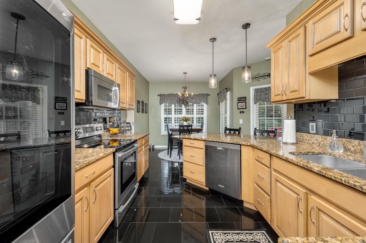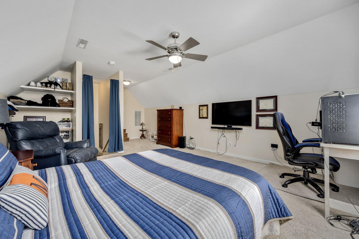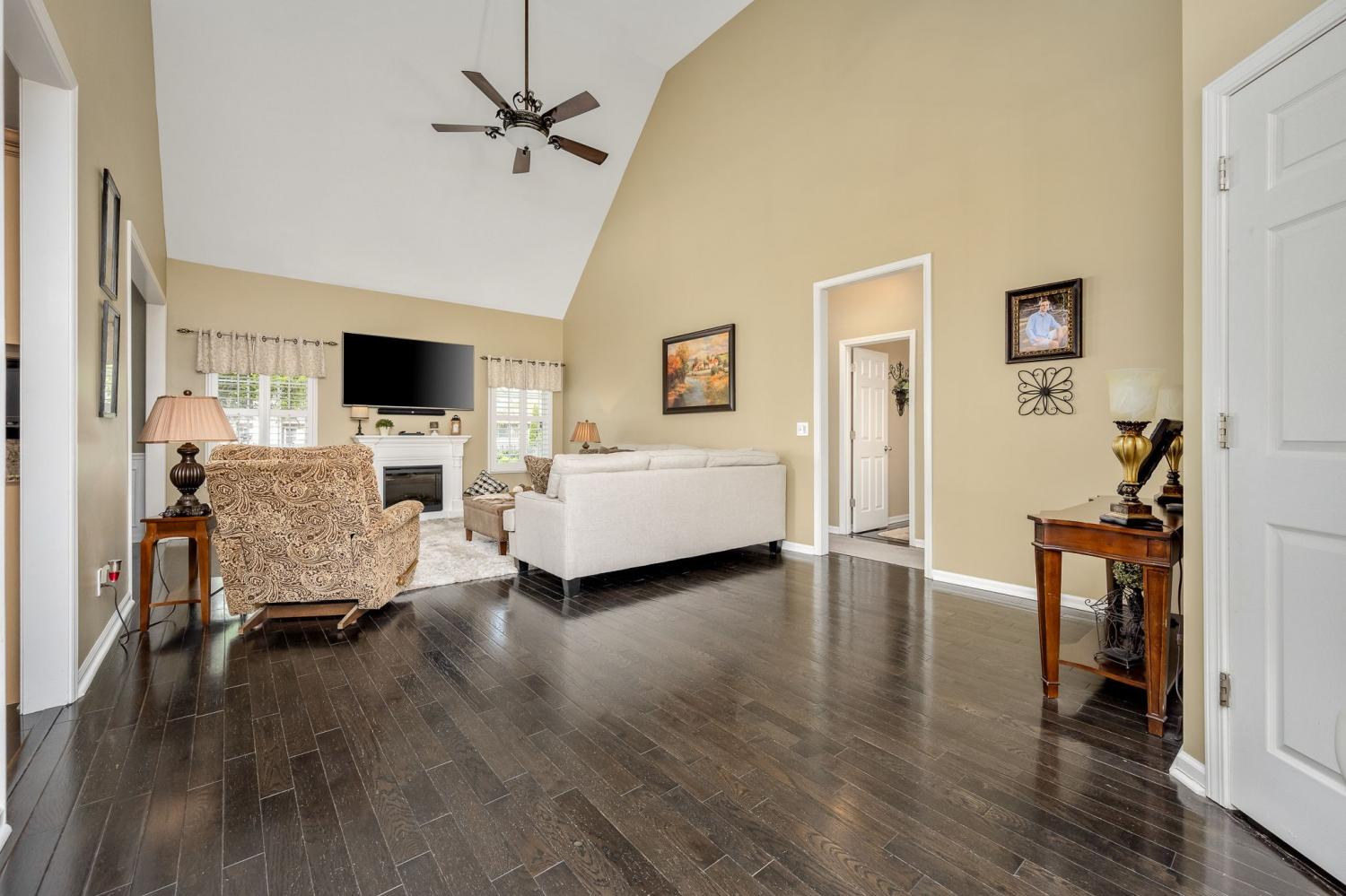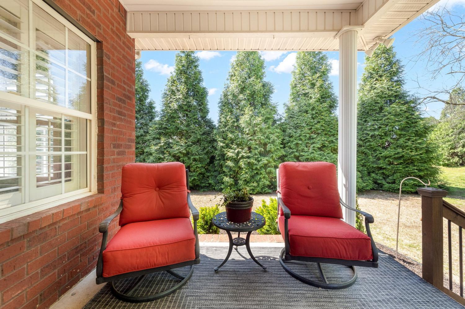 Beautiful MOVE IN READY home on a large almost 1/2-acre lot with well-maintained landscaping freshly mulched. House includes 3 bedroom and 2 baths with bonus room over garage. You will love the plantation shutters throughout the house. Open floor plan with awesome granite flooring in kitchen and baths. Covered back porch for your morning coffee. Lots of storage in attic area. Water softener system with reverse osmosis in kitchen. Newer roof, downstairs HVAC system, water heater, refrigerator, tiled shower. Electric fireplace in den stays.