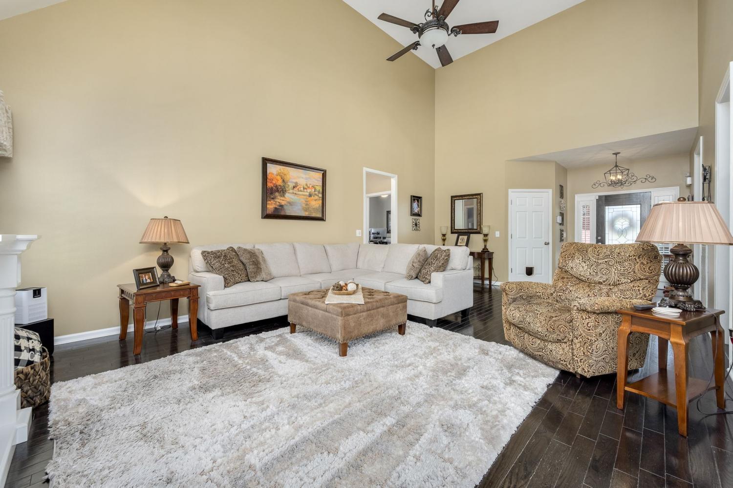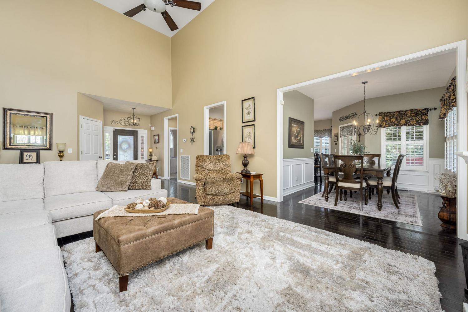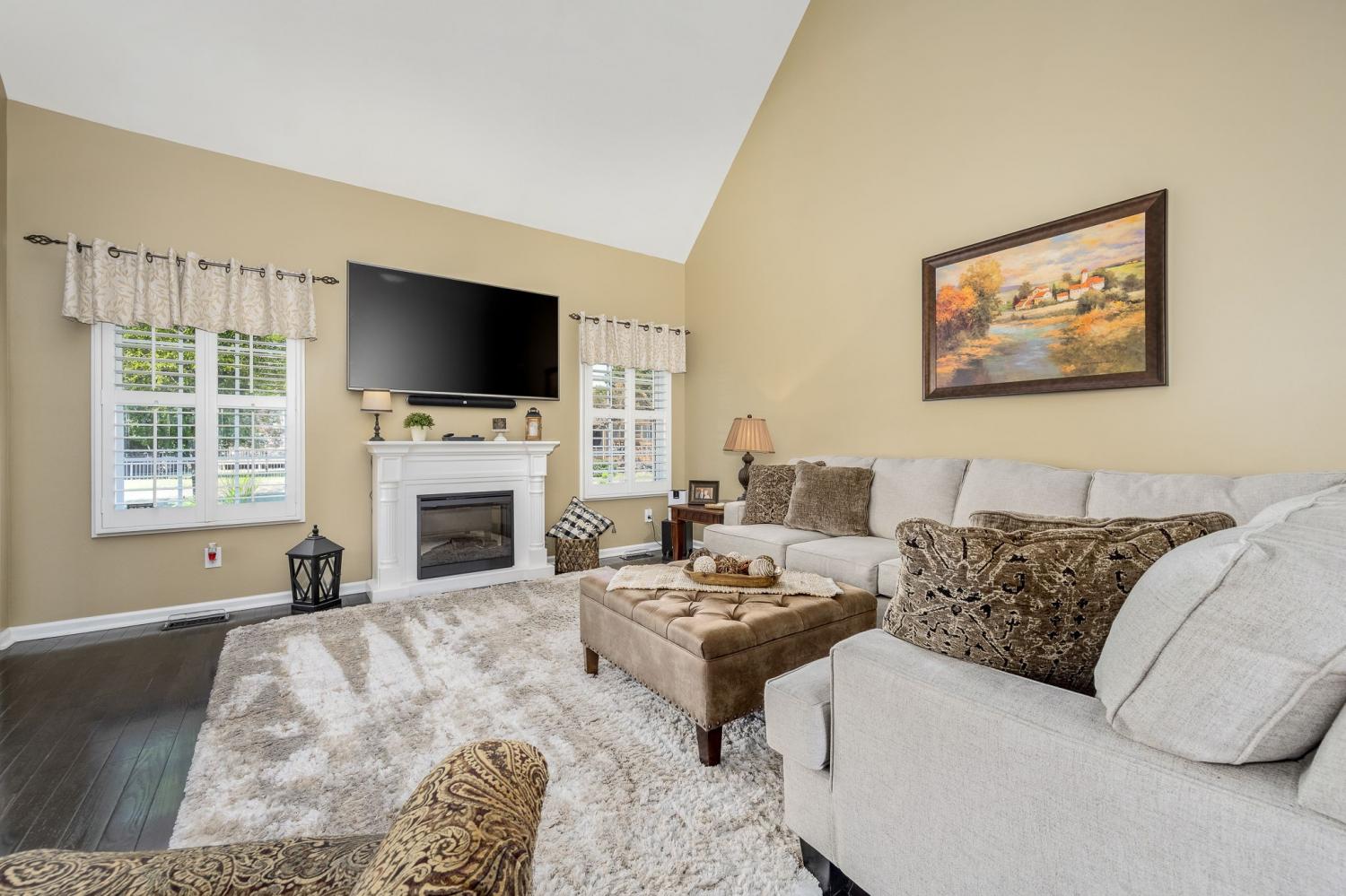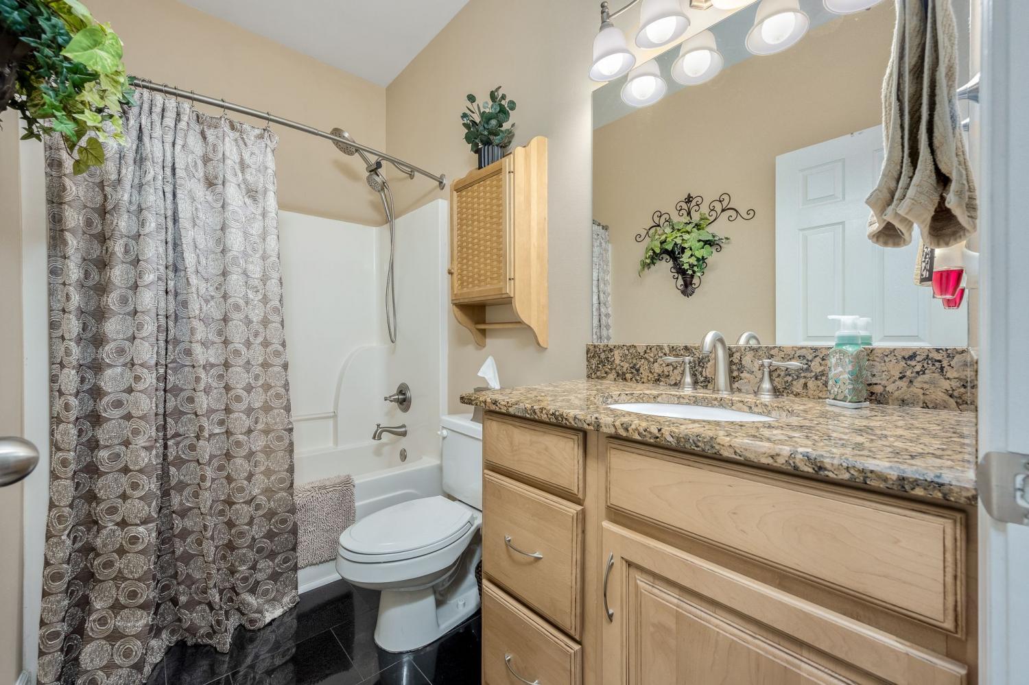 Beautiful MOVE IN READY home on a large almost 1/2-acre lot with well-maintained landscaping freshly mulched. House includes 3 bedroom and 2 baths with bonus room over garage. You will love the plantation shutters throughout the house. Open floor plan with awesome granite flooring in kitchen and baths. Covered back porch for your morning coffee. Lots of storage in attic area. Water softener system with reverse osmosis in kitchen. Newer roof, downstairs HVAC system, water heater, refrigerator, tiled shower. Electric fireplace in den stays.
