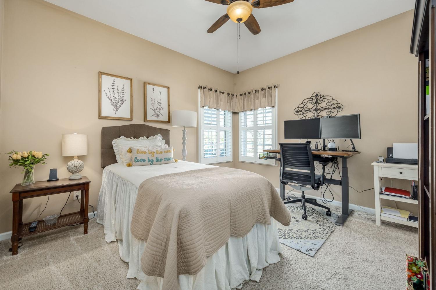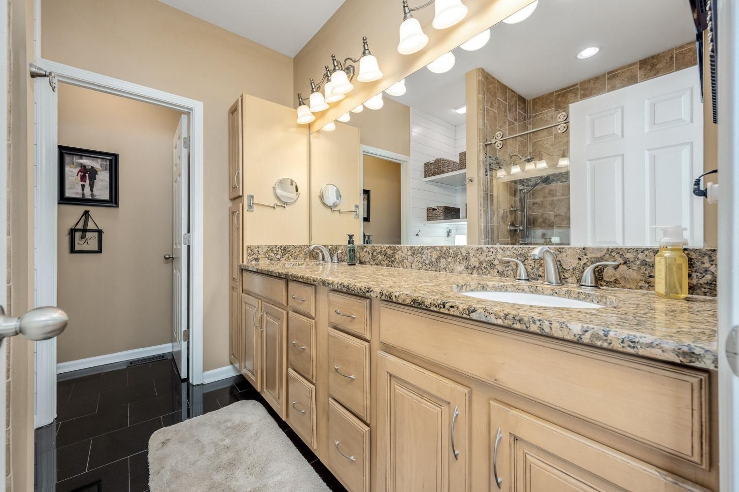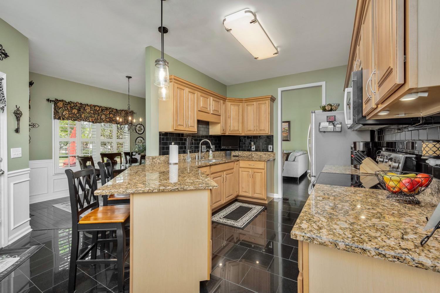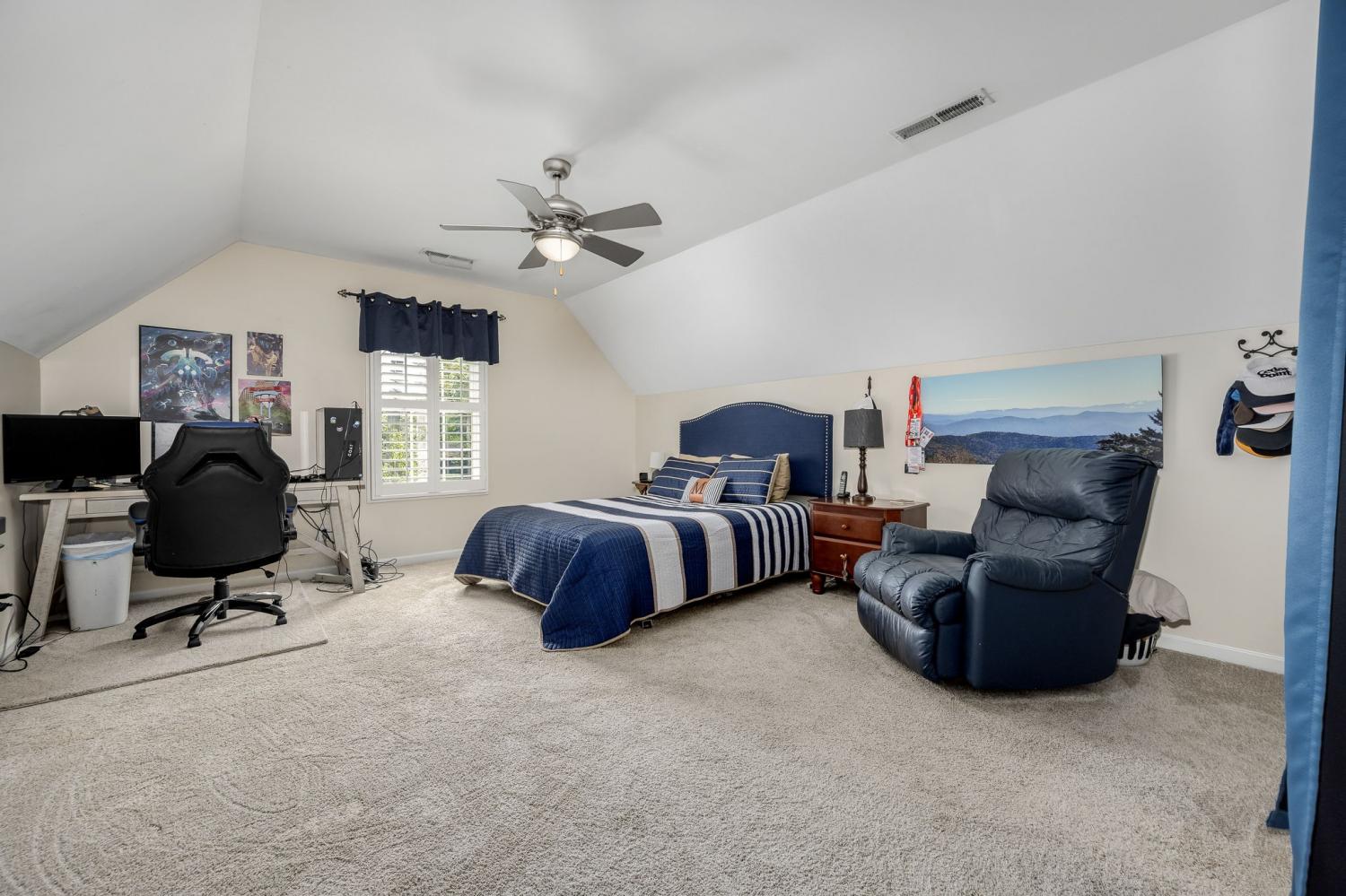Beautiful MOVE IN READY home on a large almost 1/2-acre lot with well-maintained landscaping freshly mulched. House includes 3 bedroom and 2 baths with bonus room over garage. You will love the plantation shutters throughout the house. Open floor plan with awesome granite flooring in kitchen and baths. Covered back porch for your morning coffee. Lots of storage in attic area. Water softener system with reverse osmosis in kitchen. Newer roof, downstairs HVAC system, water heater, refrigerator, tiled shower. Electric fireplace in den stays.