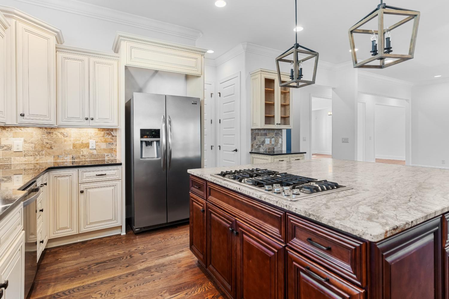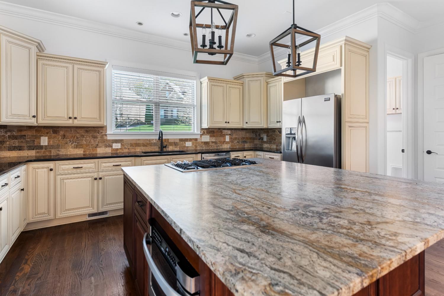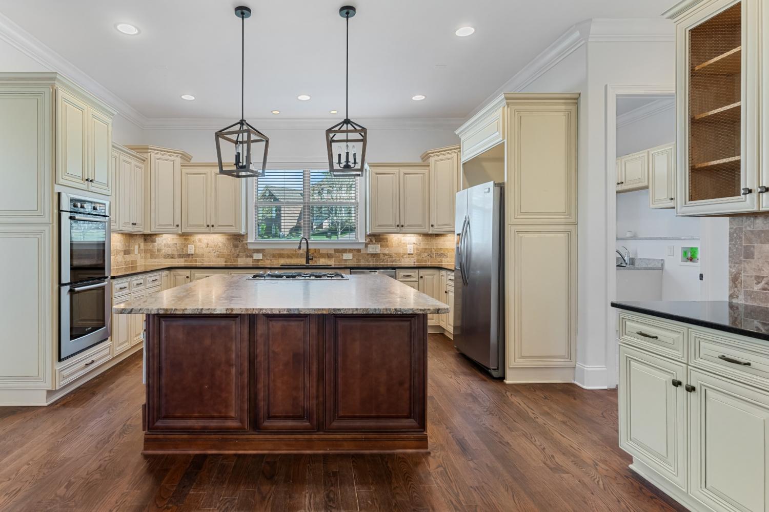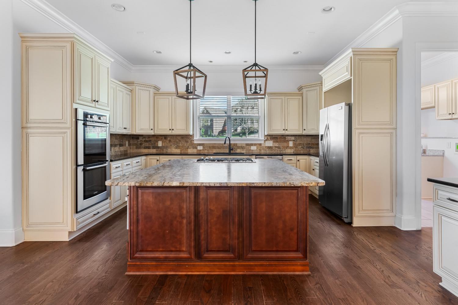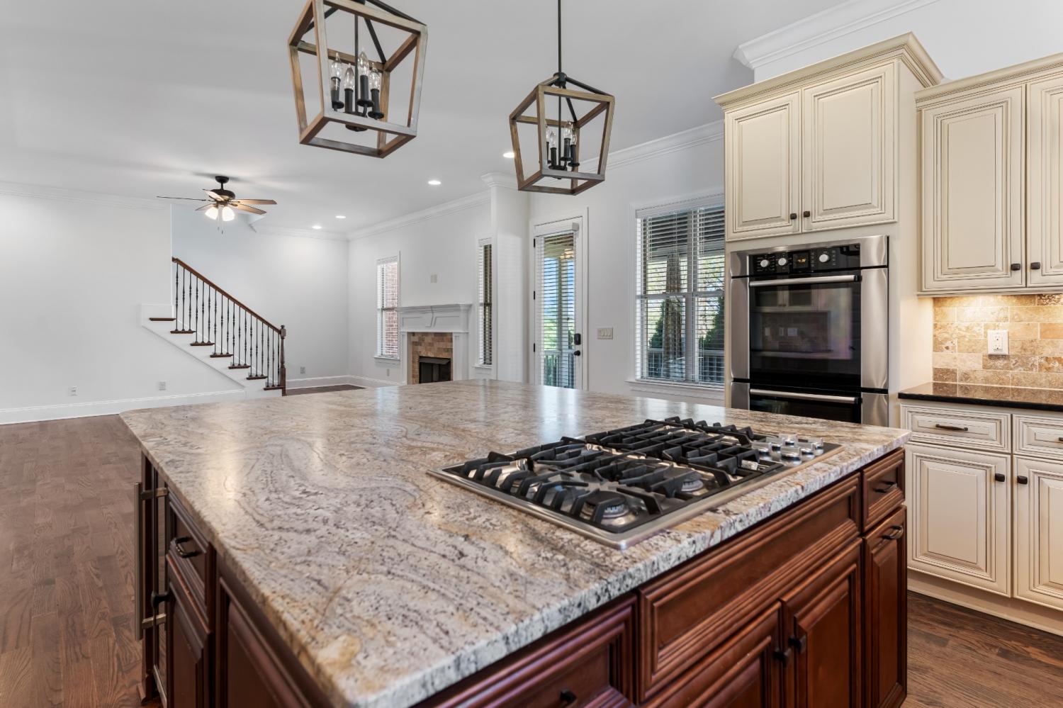 Located in Franklin’s Ladd Park, this 5-bedroom, 5-bathroom home offers a perfect blend of space, functionality & comfort with over 4,800 square feet designed to fit your life. Sitting on an oversized .41-acre corner lot, this home gives everyone room to spread out & then come back together in the heart of the home. The open floor plan & tall ceilings make the kitchen & living room feel bright, spacious & connected. Large windows throughout the home fill the living spaces with natural light, creating a bright & airy feel from the moment you walk in. The kitchen was made for gathering with a gas range, stainless appliances & a stunning natural-finish granite island that’s as functional as it is beautiful. The living room centers around a cozy fireplace, creating a warm & inviting space to relax or entertain. Downstairs, the primary suite offers a quiet retreat with double vanities, a soaking tub, walk-in tiled shower & separate his-and-hers closets. A second bedroom & full bath on the main level is perfect for guests, a nursery or in-law space. Upstairs, you’ll find three more bedrooms, three full bathrooms & two massive bonus rooms that flex to fit your life. One offers the perfect setup for a home office, homeschool room or quiet workspace with a custom barn door for privacy. The other, located over the garage, could easily serve as a media room, playroom or even a 6th bedroom. Out back, the fully-fenced yard was built for enjoying Tennessee’s beautiful seasons with a screened-in deck wired for outdoor TV, a patio with a wood-burning fireplace & peaceful views of the rolling hills beyond. All of this in one of Franklin’s most convenient locations, just minutes to Berry Farms, Downtown Franklin & I-65, plus easy access to community amenities like a pool, clubhouse, playgrounds & walking trails. This is the kind of home that just lives well — intentional, comfortable & ready for whatever season of life you’re in.