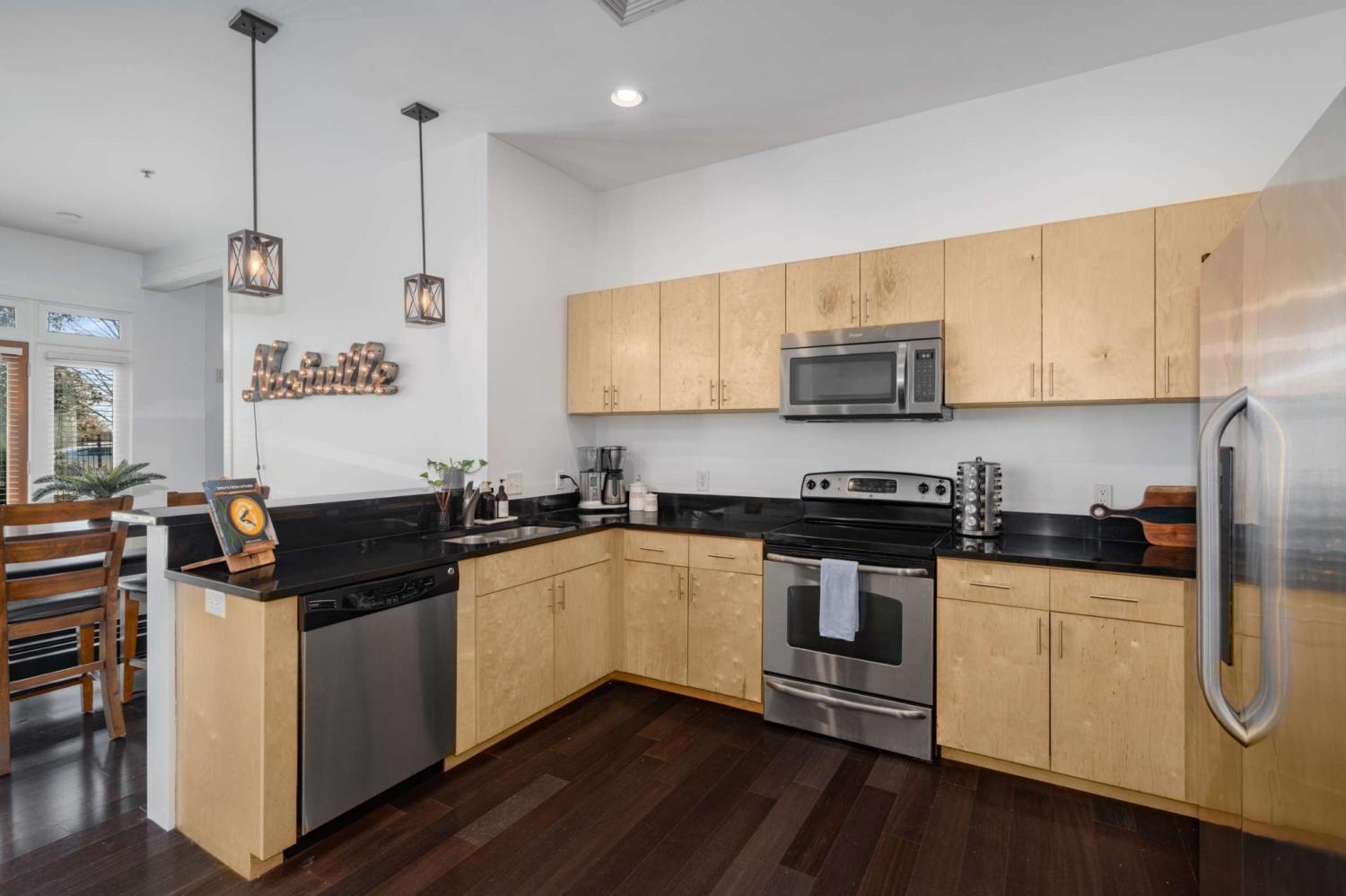 Experience the best of Nashville living at Lofts on 8th. This spacious 2-bedroom, 2 bath condo offers ample storage and an unbeatable location—just a tennis ball’s throw from Urban Juicer, Hattie B’s, Zanies, and Publix, to name a few. Enjoy the convenience of a gated community with two reserved parking spaces BUT this one is different because you never have to enter the lobby, and neither do your guests. You get easy parking with a private entrance! Enjoy the convenience of this charming flat-style condo with 10’ ceilings— no stairs or elevators needed—just effortless living in a prime location. Perfect for those seeking a low-maintenance lifestyle with all the perks of city living. With easy access to Belmont, Vanderbilt, and Downtown Nashville via 8th Avenue, or a quick drive south to Brentwood, this location is truly unbeatable and 12 South and The Gulch are only minutes away. Freshly painted throughout, with beautiful hardwood floors and gorgeous solid wood sliding doors for privacy/separation, #108 is the one you want!
