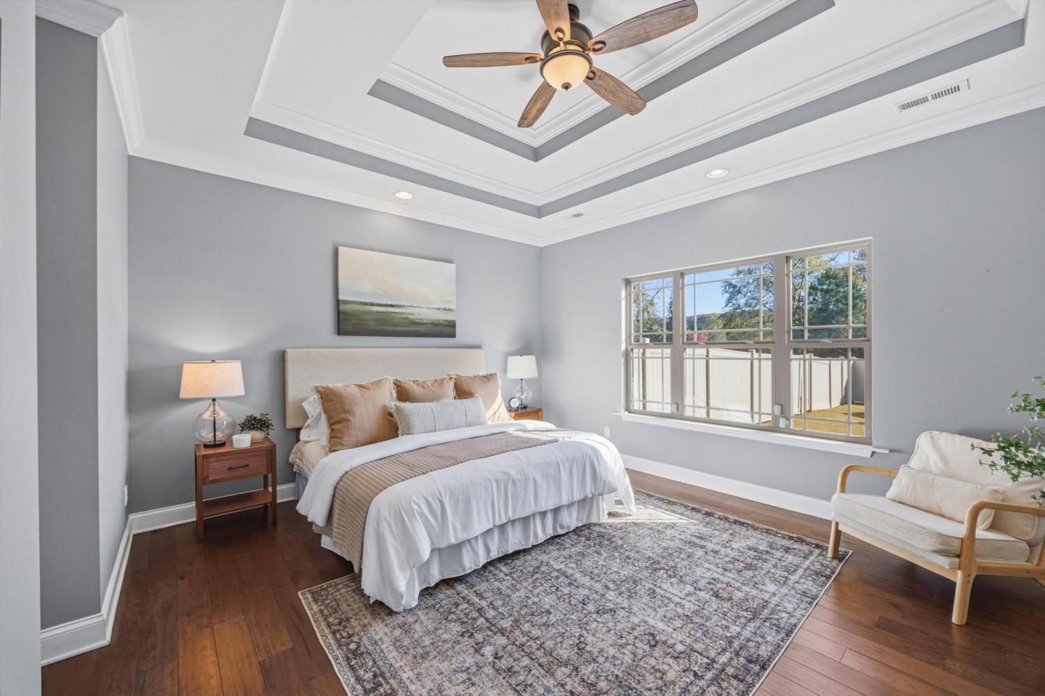 Rare Find! 1-Level Home on a Full Acre! Nestled in one of Rock Spring's most desirable neighborhoods, this beautifully maintained 1,848 sq ft home offers peaceful country living without sacrificing modern comfort. Step inside to discover a spacious split-bedroom layout with an open-concept living, dining, and kitchen area designed for everyday living and effortless entertaining. The primary suite is pure luxury—double trey ceiling, triple crown molding, dual walk-in closets, and a spa-like ensuite with soaking tub, double vanities, and separate shower. Relax year-round in your light-filled sunroom, or unwind in the private, fenced backyard oasis—complete with a 12x24 outbuilding for your dream workshop or extra storage. Love your tools or RV? The garage includes a 220V outlet—ready for your setup. And there's more: double attic access for tons of storage, a zero-turn mower negotiable, and room to roam on a full acre. Don't miss your opportunity to own a peaceful slice of country living with all the modern comforts—schedule your private showing today!