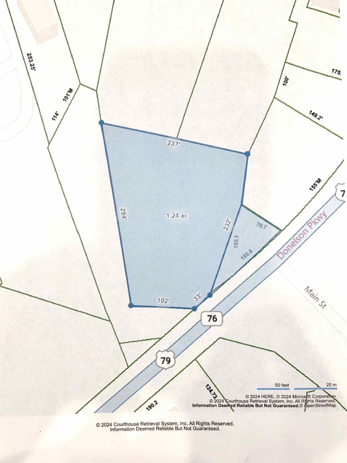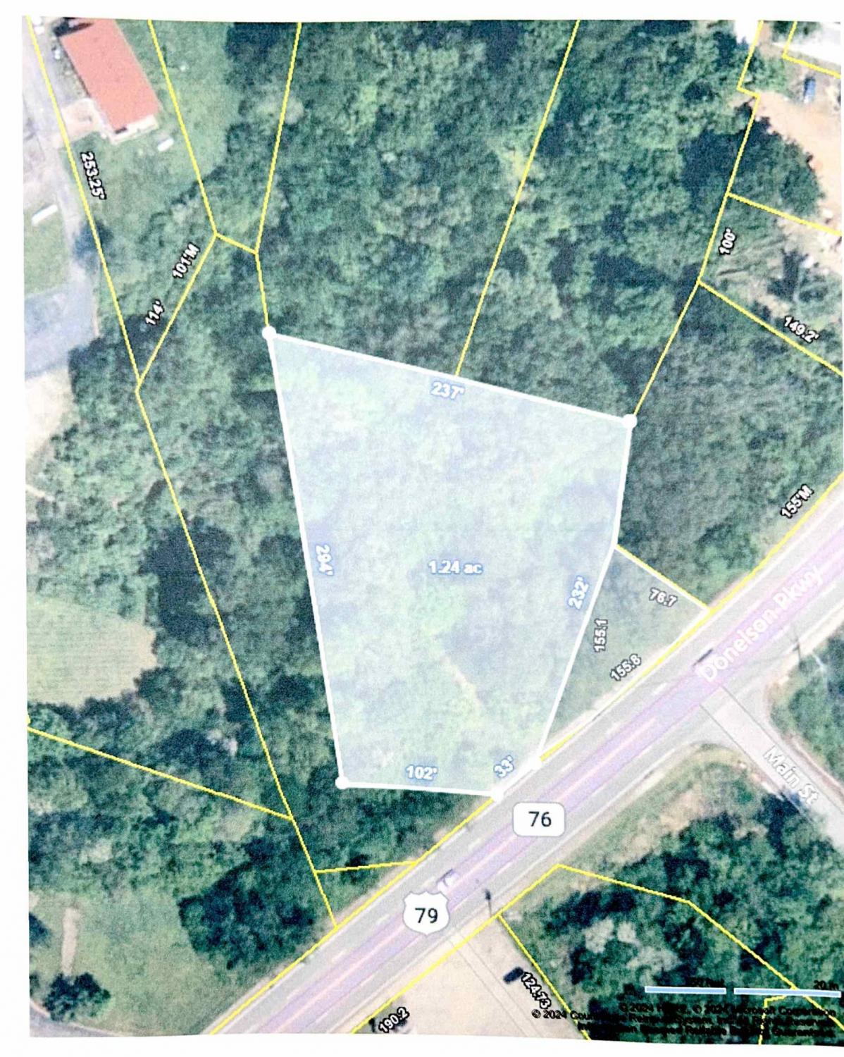 Take a close look at this 1.3 acre property fronting Donelson Parkway/U.S. Hwy 79. Two connecting parcels, appx 180 Ft frontage with sidewalk and driveway curb entrance in place! This gently rolling, wooded lot offers some nice mature timber along with a prime city location and unlimited opportunities. High traffic count, currently residential zone. **Adjoining acreage tract available to the side that fronts Church Street. City limits location, walking distance to business, restaurants, churches or Barkley Lake and launching. Excellent town location and development opportunity!