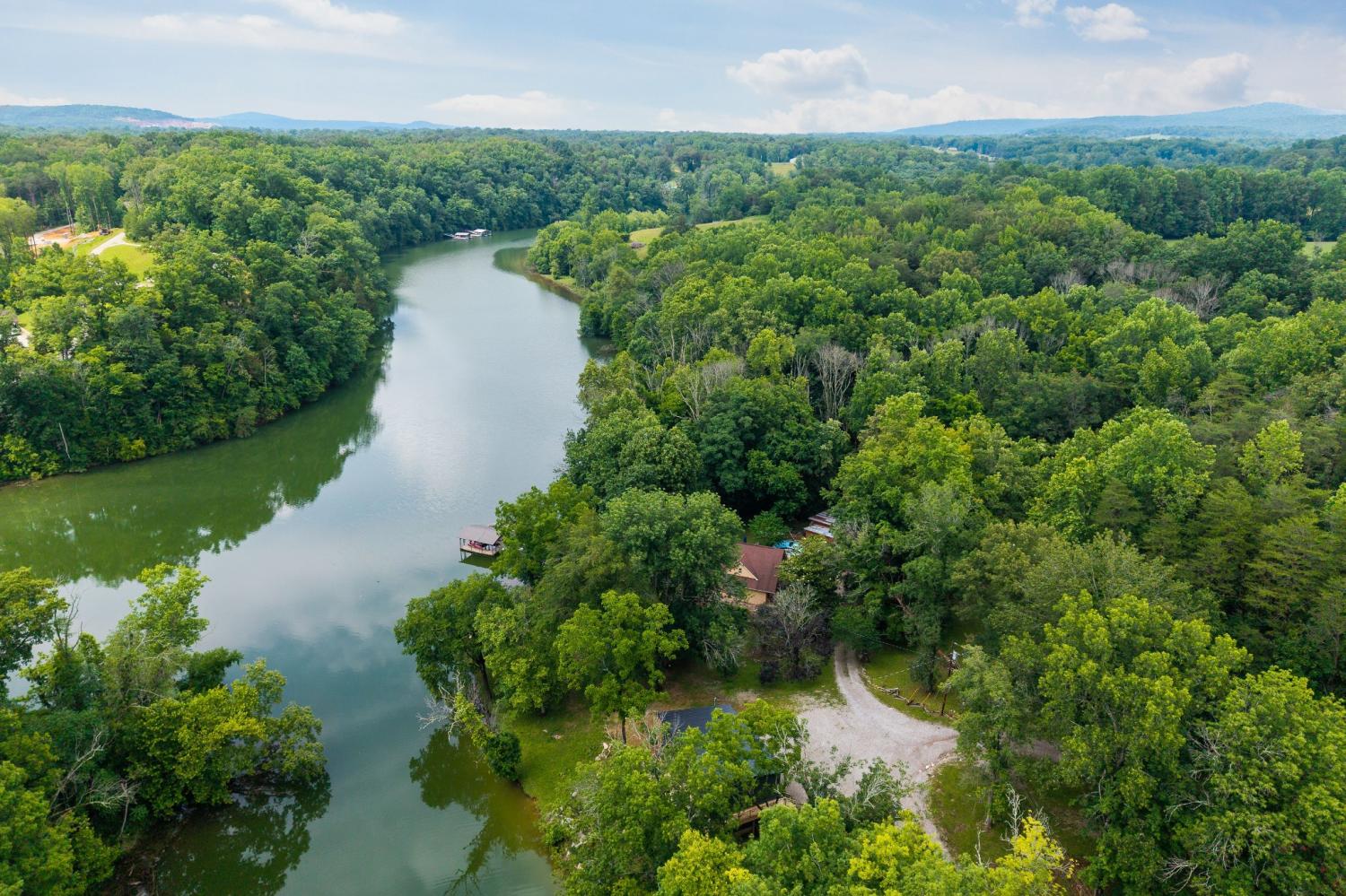 Discover the magnificent riverfront escape on a quiet dead-end street! This unique property includes 6 lots with tons of river frontage, your own private dock and a charming cottage-style cabin just waiting for your personal touch. With one bedroom and bathroom on the main level, two bedrooms and a bath upstairs, plus a partial basement, there's room to relax and grow. Currently operating as a mini farm, this property is a rare investment opportunity—ideal for building additional units for Airbnb or family retreats. Walkable, peaceful, and full of potential—don’t miss this riverside gem!