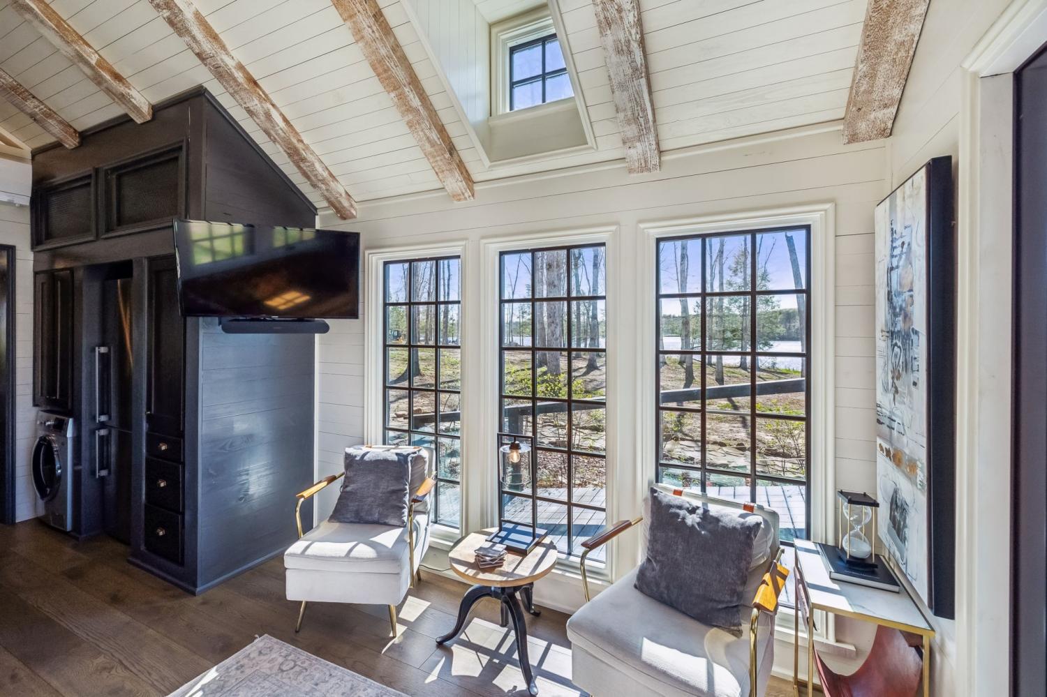 DISTINCTIVE LAKEFRONT RETREAT: LOW COUNTRY ELEGANCE. An architectural masterpiece where celebrated designer Jeffrey Dungan's vision creates a luxury experience that transcends conventional lake properties. This waterfront jewel (408 sq. ft. on 0.41 acres) showcases investment-grade quality throughout: Ply Gem aluminum-clad windows framing panoramic lake vistas, premium Summit Appliances, designer fixtures, quartz countertops, and an efficient brand new Mitsubishi Hyper-heat system. The prime location offers exceptional access to Nashville (90 minutes) and Chattanooga (60 minutes), positioning this as both a distinctive personal retreat and high-yield investment opportunity in the premium short-term rental market. Presented complete with designer-curated furnishings that complement Dungan's architectural vision, this turnkey property eliminates setup delays for immediate enjoyment or rental income. The waterfront setting with expansive deck creates an incomparable backdrop for daily living, while the property's architectural pedigree positions it within the increasingly sought-after "right-sized luxury" movement—where design excellence and craftsmanship create value that transcends conventional square footage metrics. For the discerning buyer who recognizes that exceptional design and irreplaceable location command premium value, this signature work by one of America's most respected residential architects represents a rare opportunity to own a truly distinctive lakefront retreat that stands apart from conventional waterfront offerings.