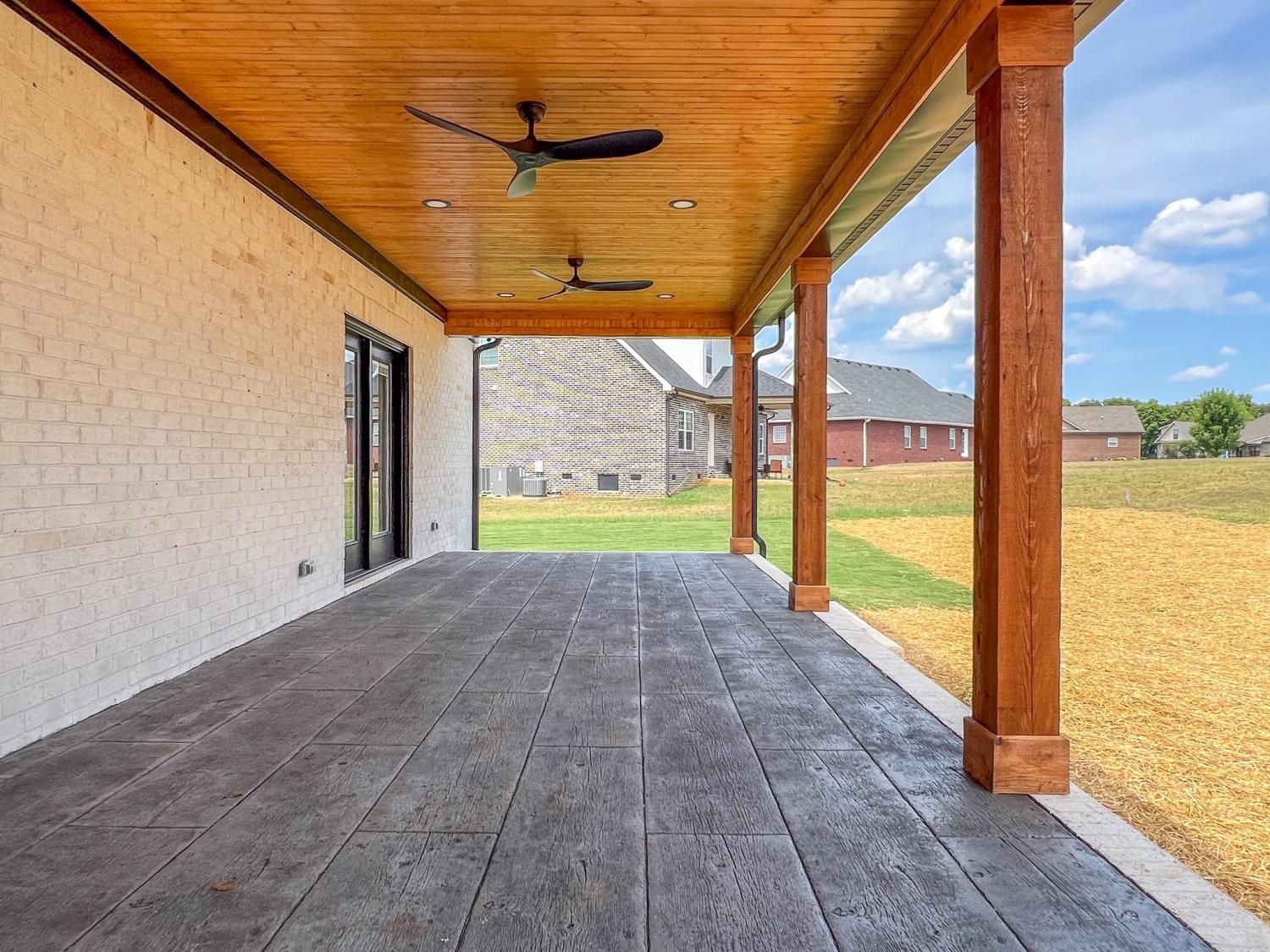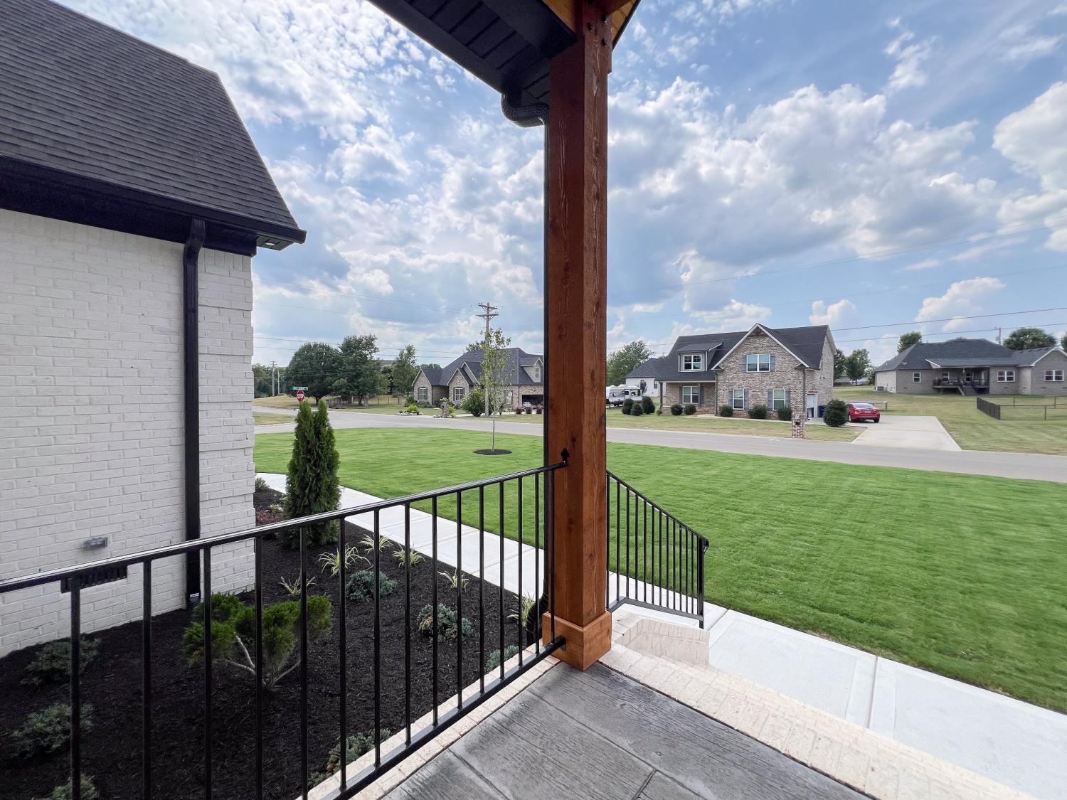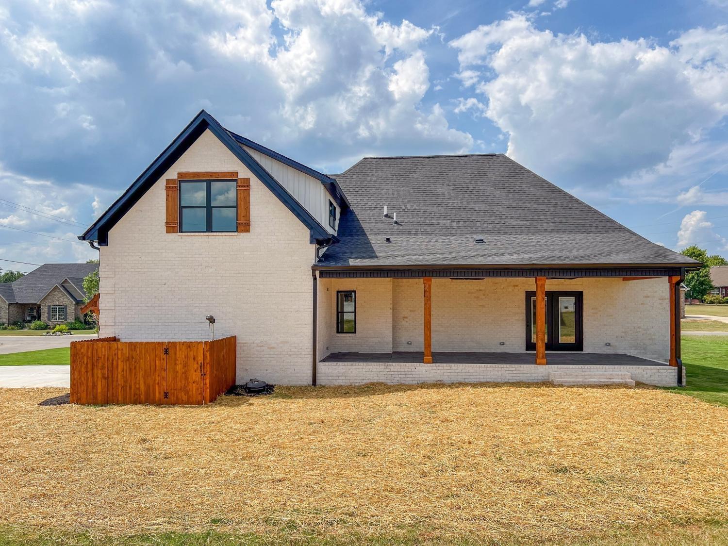 Gorgeous, custom 4 bedroom, 3 bathroom house with instant yard (new sod and beautiful landscaping). Custom details throughout include: wood-built shelving in ALL closets, custom built pantry, kitchen includes gas stove with pot filler, upgraded quartz countertops, glass cabinets that reach to ceiling, and a farmhouse porcelain sink. This beautiful corner lot has maximum curb appeal with tongue and groove wood and stamped concrete on front and back porches, custom built cedar shutters with black hardware. Cedar awning over 2 car epoxy floored garage. The extra features don't stop there. The inside also includes engineered hardwood throughout, 7-inch crown molding, custom trim and built in bookcases. Wood beams in owners suite with on suite bathroom that includes freestanding tub, double vanities and accent tile wall. This builder spared no details with tankless water heater, custom rails and private fence surrounding AC unit. YOU DONT WANT TO MISS OUT ON THIS BEAUTIFUL HOME!