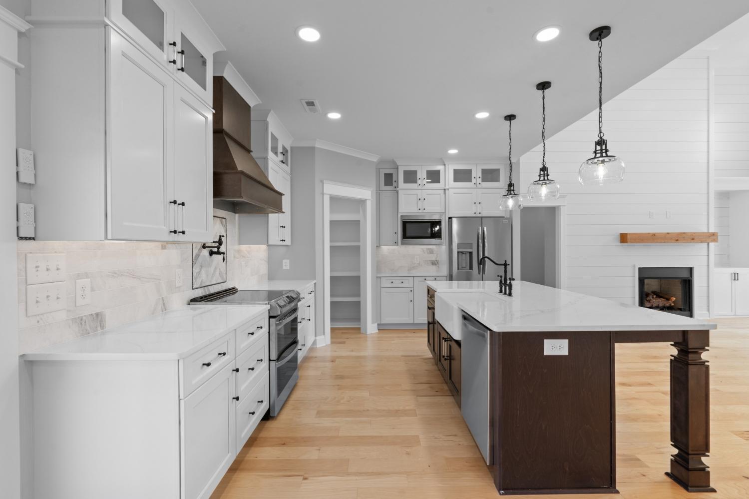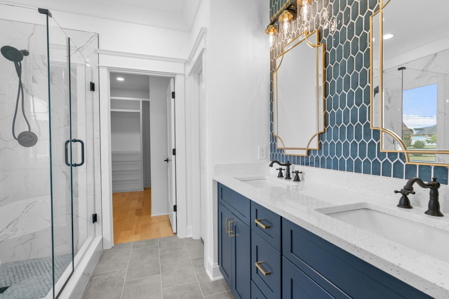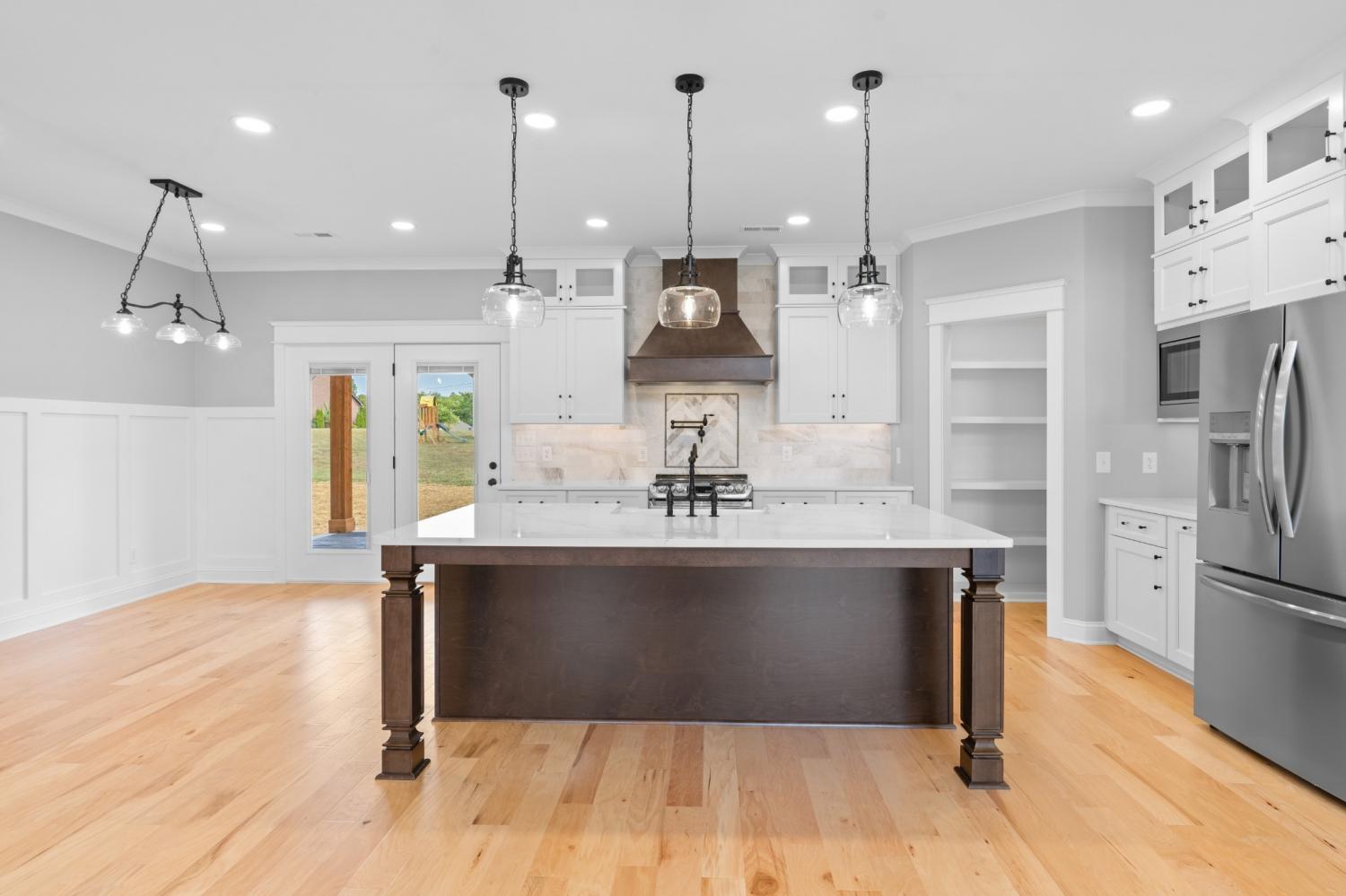 Gorgeous, custom 4 bedroom, 3 bathroom house with instant yard (new sod and beautiful landscaping). Custom details throughout include: wood-built shelving in ALL closets, custom built pantry, kitchen includes gas stove with pot filler, upgraded quartz countertops, glass cabinets that reach to ceiling, and a farmhouse porcelain sink. This beautiful corner lot has maximum curb appeal with tongue and groove wood and stamped concrete on front and back porches, custom built cedar shutters with black hardware. Cedar awning over 2 car epoxy floored garage. The extra features don't stop there. The inside also includes engineered hardwood throughout, 7-inch crown molding, custom trim and built in bookcases. Wood beams in owners suite with on suite bathroom that includes freestanding tub, double vanities and accent tile wall. This builder spared no details with tankless water heater, custom rails and private fence surrounding AC unit. YOU DONT WANT TO MISS OUT ON THIS BEAUTIFUL HOME!