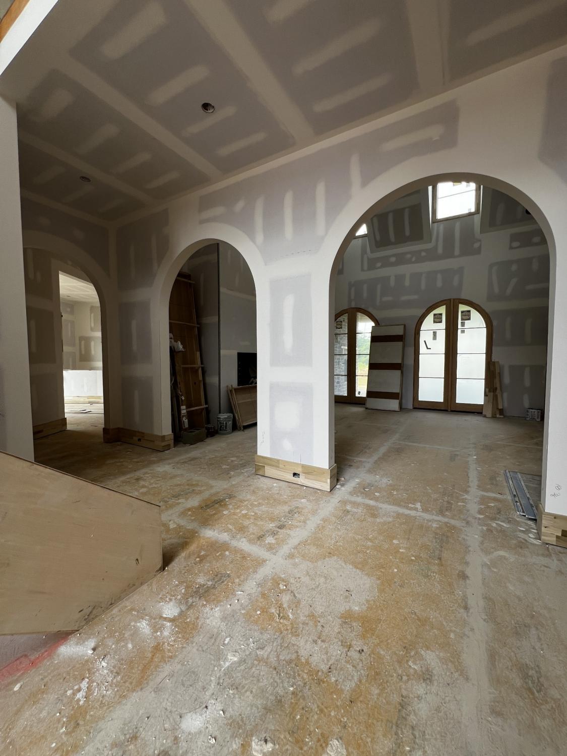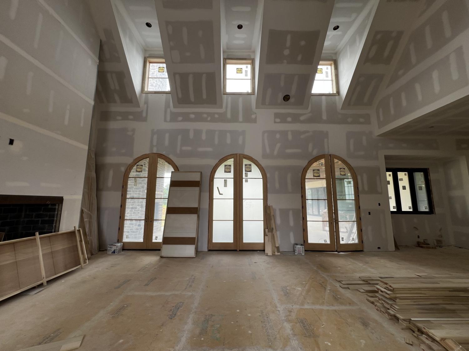 This custom luxury home by award-winning Arnold Homes is a masterpiece of elegance and functionality. A covered porch with an iron swing door welcomes you into an expanded foyer, which flows seamlessly into the open living and dining areas. Three sets of double doors provide breathtaking views of the rear covered porch, pool, and putting green. Designed for the ultimate culinary experience, the chef’s kitchen is complemented by a spacious Martha Stewart-inspired scullery. The opulent primary suite features a walk-around bar, a private office, and a dedicated massage room with a sauna. A breakfast terrace connects to a combined laundry and office space, offering added convenience. Perfect for entertaining, the covered porch is outfitted with a hibachi grill, pizza oven, and built-in grill with a vented hood. The main-level media and billiards room, which has access to a full bath, can also serve as a pool bath. Additionally, a connected poker room offers a private covered porch. Skylights flood the rear hallway with natural light, enhancing the ambiance of the space. The spa-like primary bath boasts a walk-through shower, separate his-and-hers vanities, private water closets, custom walk-in closets, and access to a stackable laundry. Upstairs, four additional bedrooms each feature en-suite baths, along with a separate walk-in laundry area for convenience. A dedicated podcast room near the bonus room includes built-in bunk beds and access to a large storage space. Car enthusiasts will appreciate the five-car garage with high ceilings, allowing for car lifts. Nestled on a private cul-de-sac street, this estate is surrounded by lush trees and features a luxurious pool, spa, and putting green—offering a resort-like experience at home.