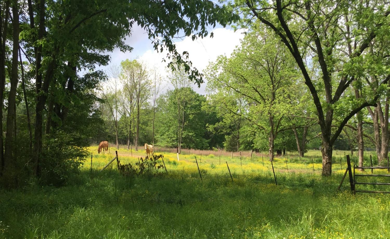 Bring your horses Recent $5,000 Reduction. One acre is fenced pasture on deeded 2.5 acres with Cedar-sided tiny home with a small hay barn attached to 8x10 shed for tack/garden tools. Roosters crow & livestock graze on nearby farms. Inside is a vaulted ceiling with exposed beams, an electric fireplace & attic pull-down-stairs to storage loft. Twin size daybed fits snugly in bedroom off screened sunporch. Glass enclosed shower in bathroom. Frig with French doors & bottom freezer, electric range, mounted microwave & stack washer/dryer. A small side deck has a 2nd entrance to the living room. Public water. Optic fiber internet available. This is a park model home. Currently occupied. Exclusions: furniture, furnishings, two wire outdoor 9x10 dog kennels, unattached fencing material & hoses.
