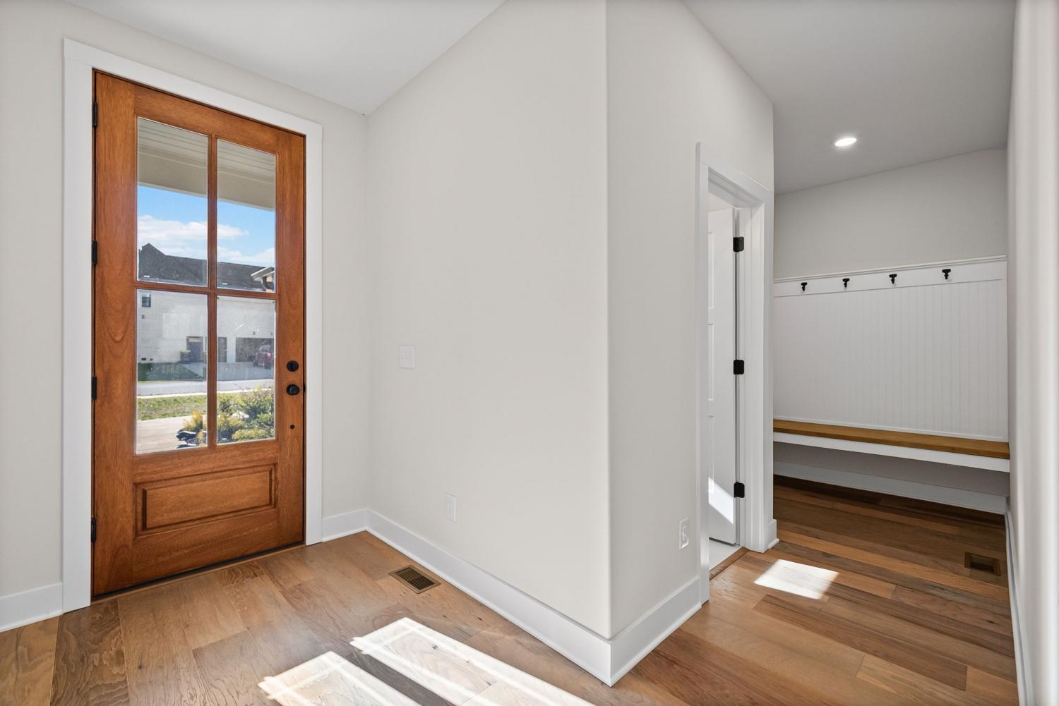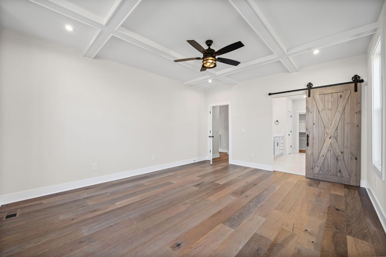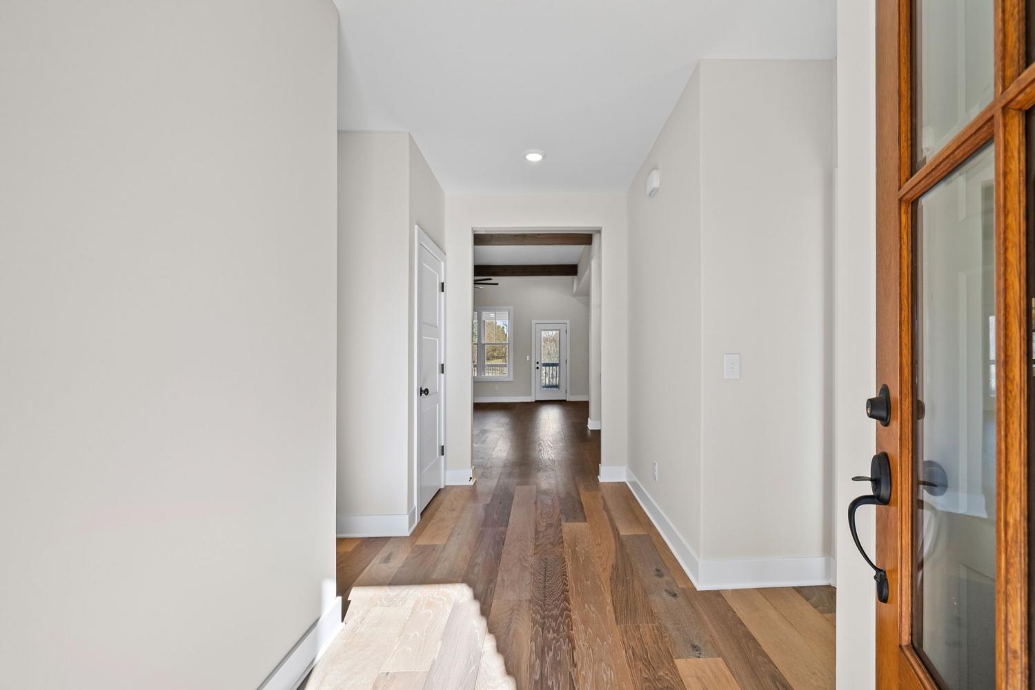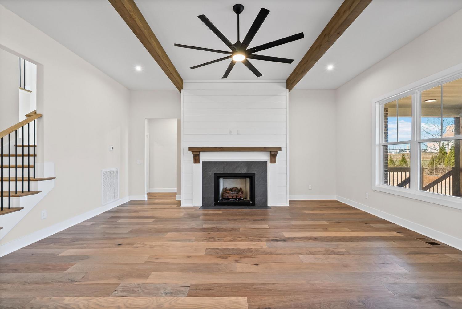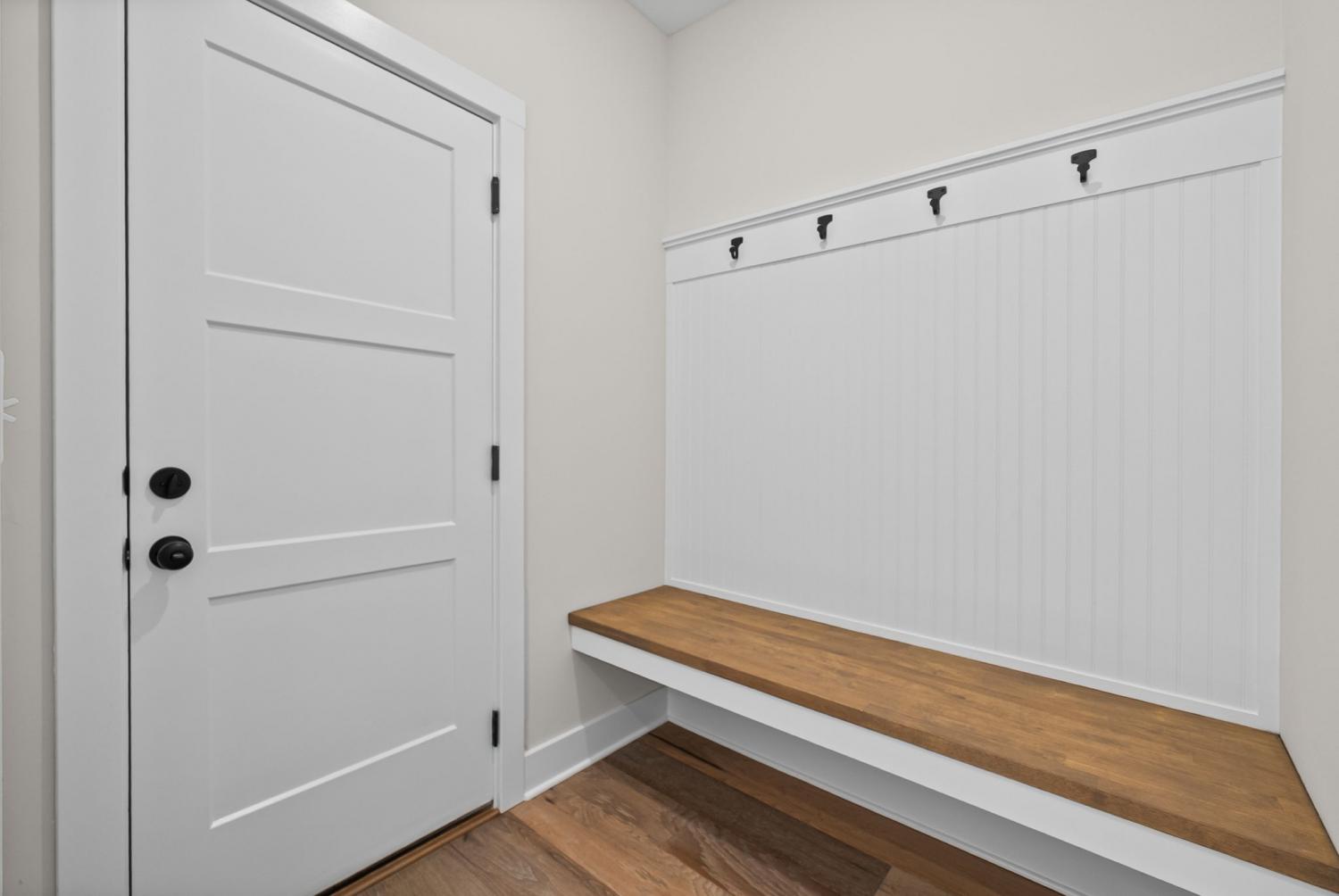 Welcome to this beautiful new home with everything you would want or need! impeccable construction; great location. Must see. Beautiful custom fireplace in great room with exposed beams; overlooking nice private back yard with spacious covered deck. Lots of natural lighting. Open concept, entry foyer, dining room, large kitchen with custom cooktop hood, plenty of cabinets and storage space; soft-close drawers; walk-in pantry with shelving. Quartz countertops. Hardwood floors throughout with carpet in bedrooms; Large bedrooms, play room, large primary bedroom with exposed beams and gorgeous/spacious bathroom suite with custom barn door, freestanding tub, walk-in closet with custom shelving...a dream! Oversized garage; mudroom entryway.