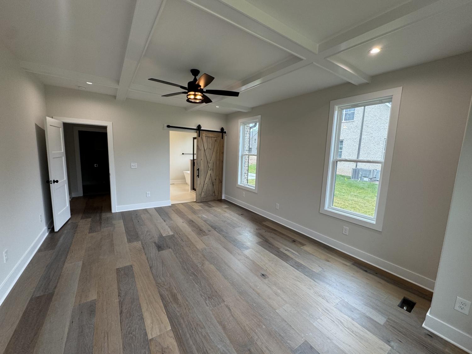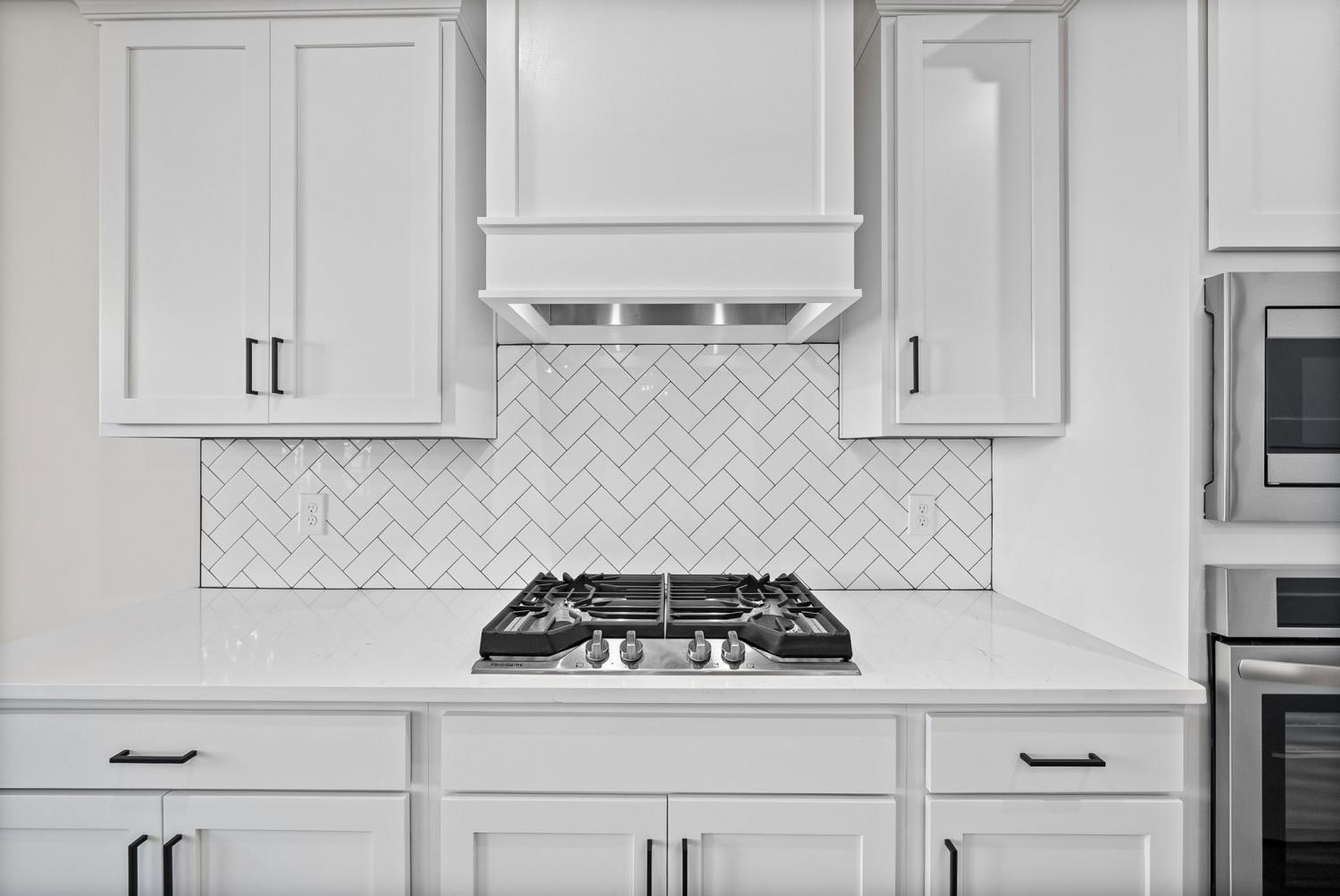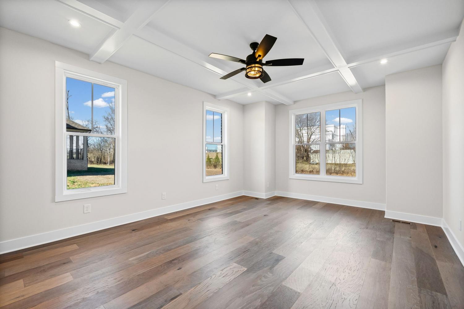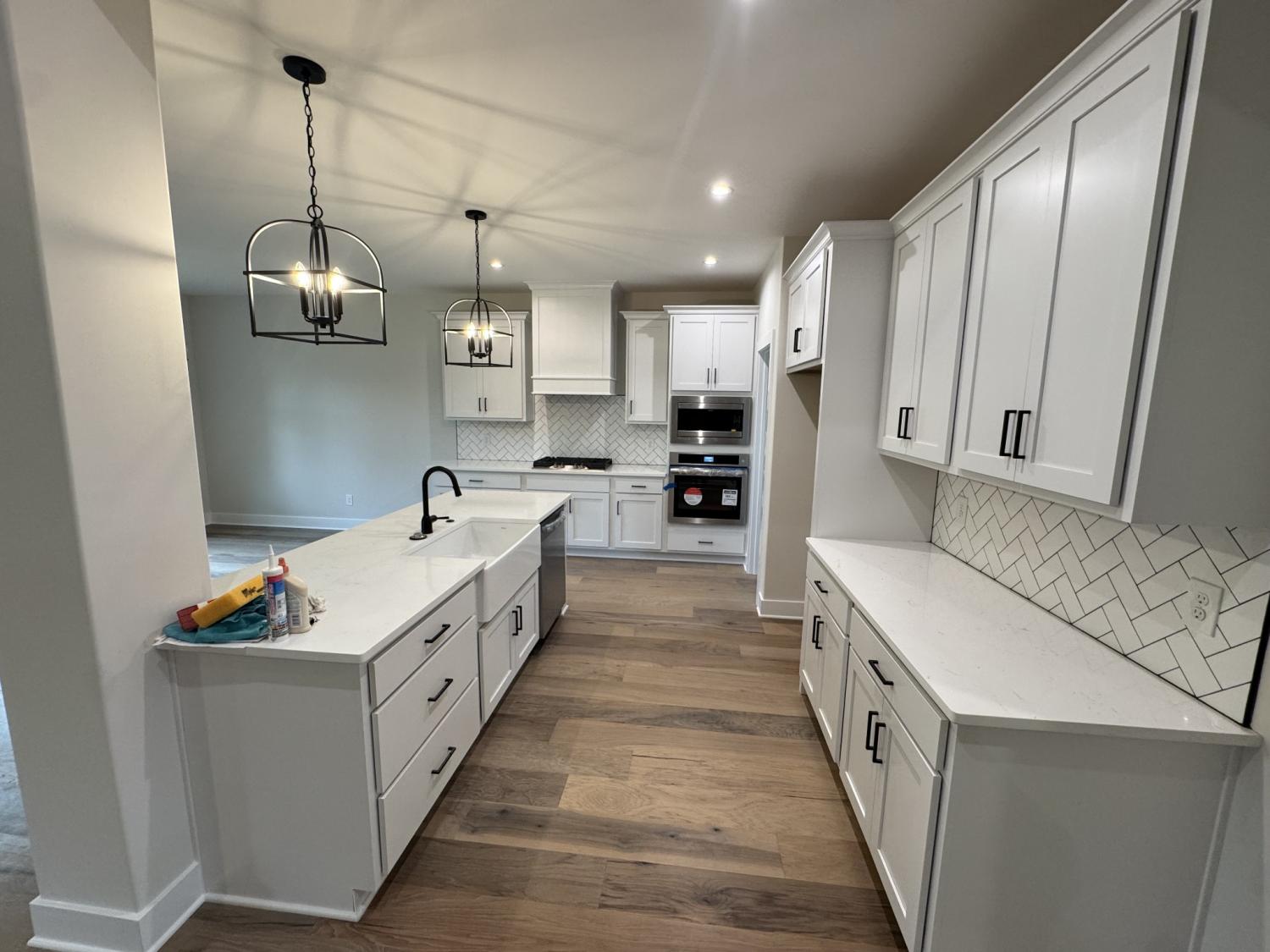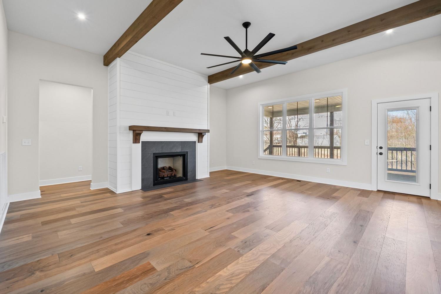 Welcome to this beautiful new home with everything you would want or need! impeccable construction; great location. Must see. Beautiful custom fireplace in great room with exposed beams; overlooking nice private back yard with spacious covered deck. Lots of natural lighting. Open concept, entry foyer, dining room, large kitchen with custom cooktop hood, plenty of cabinets and storage space; soft-close drawers; walk-in pantry with shelving. Quartz countertops. Hardwood floors throughout with carpet in bedrooms; Large bedrooms, play room, large primary bedroom with exposed beams and gorgeous/spacious bathroom suite with custom barn door, freestanding tub, walk-in closet with custom shelving...a dream! Oversized garage; mudroom entryway.