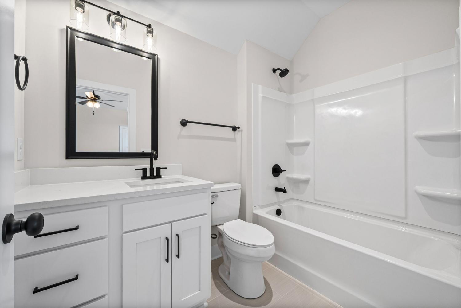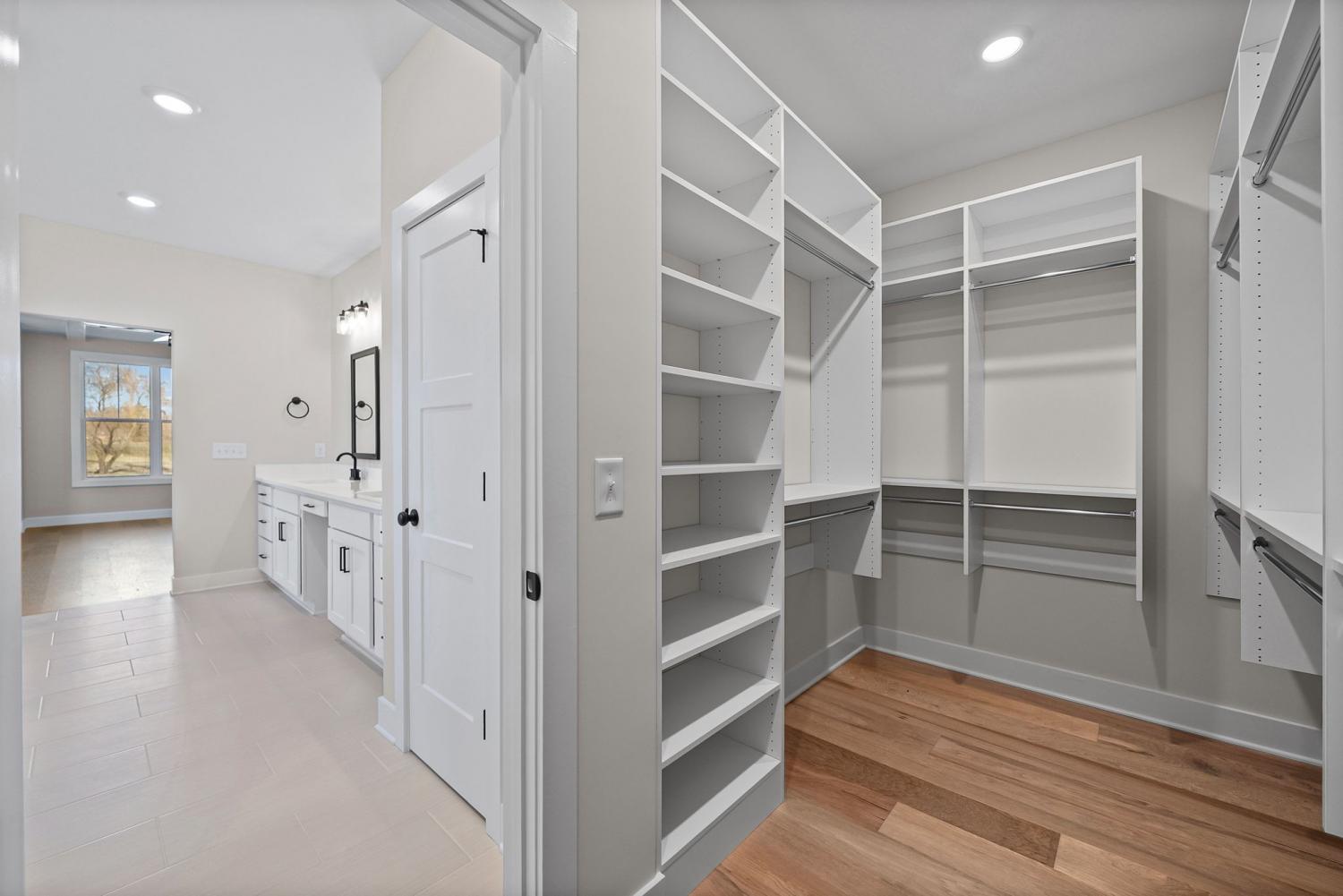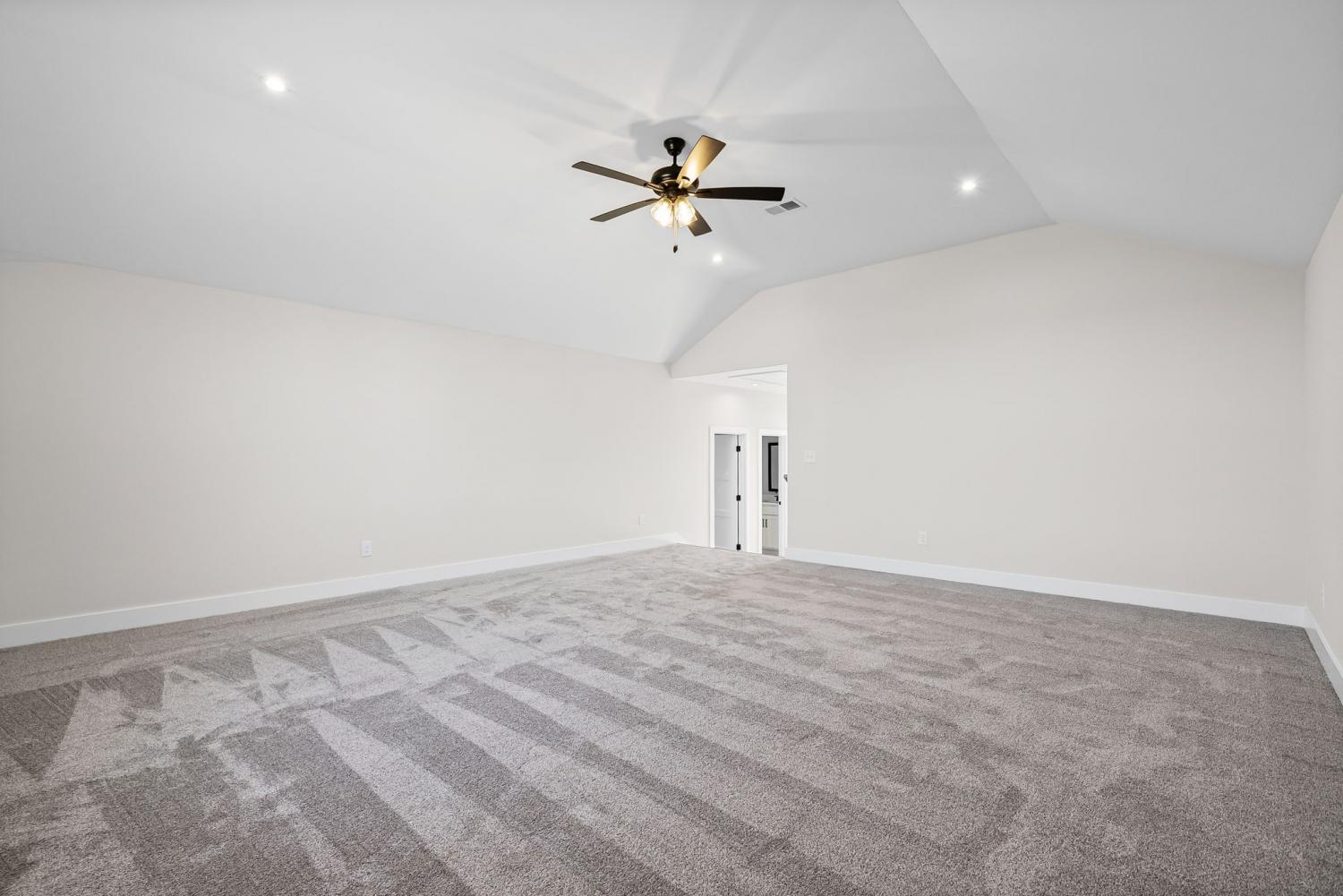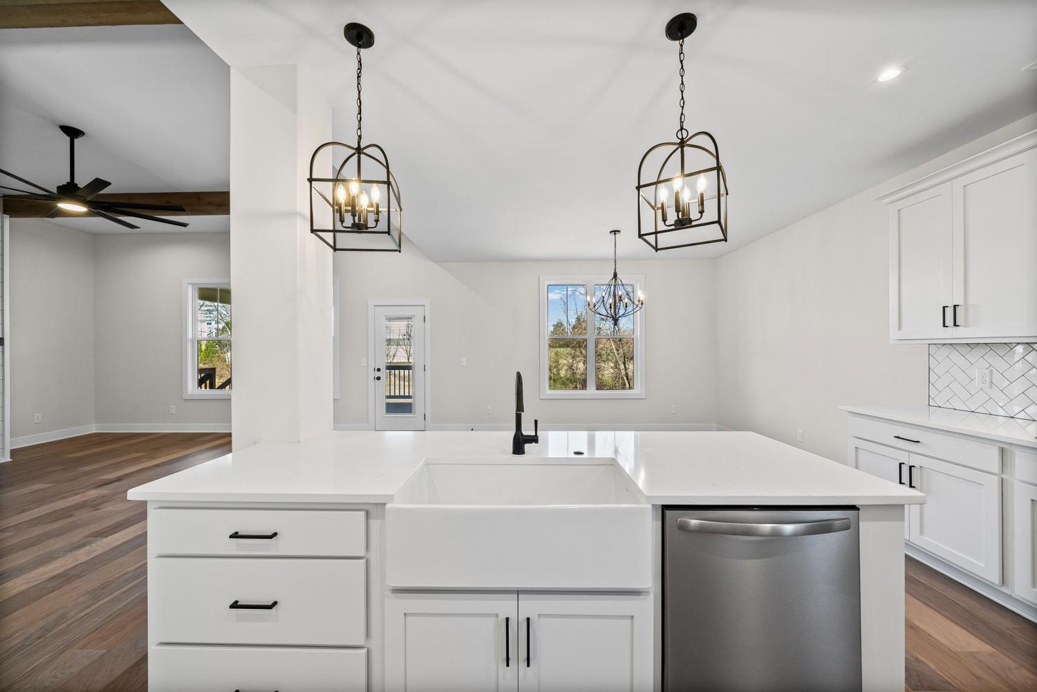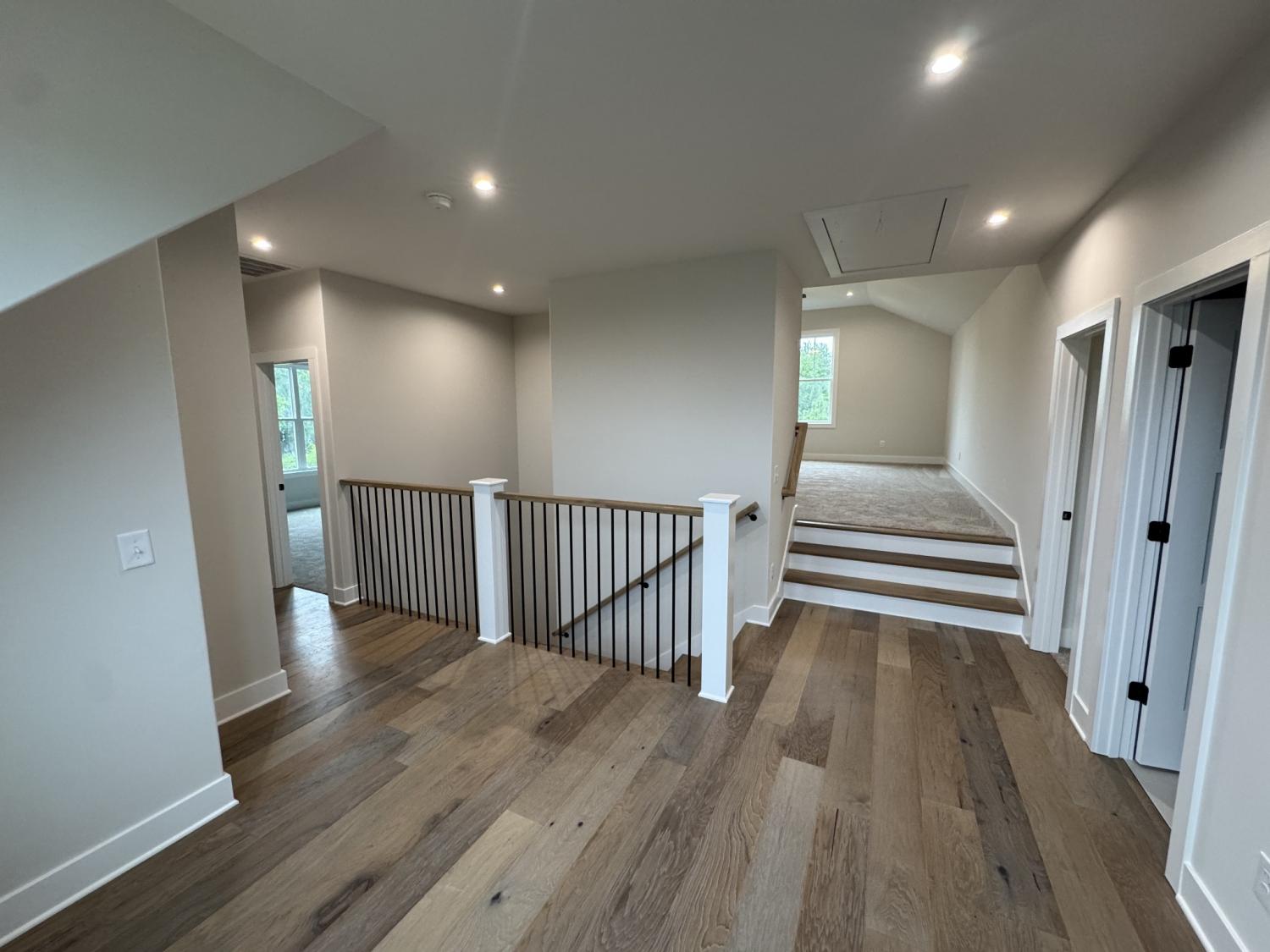 Welcome to this beautiful new home with everything you would want or need! impeccable construction; great location. Must see. Beautiful custom fireplace in great room with exposed beams; overlooking nice private back yard with spacious covered deck. Lots of natural lighting. Open concept, entry foyer, dining room, large kitchen with custom cooktop hood, plenty of cabinets and storage space; soft-close drawers; walk-in pantry with shelving. Quartz countertops. Hardwood floors throughout with carpet in bedrooms; Large bedrooms, play room, large primary bedroom with exposed beams and gorgeous/spacious bathroom suite with custom barn door, freestanding tub, walk-in closet with custom shelving...a dream! Oversized garage; mudroom entryway.