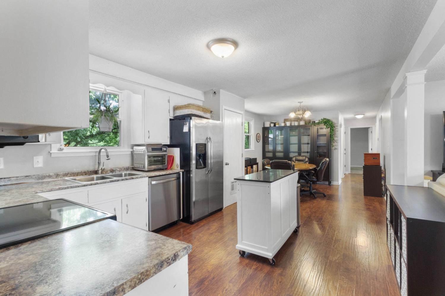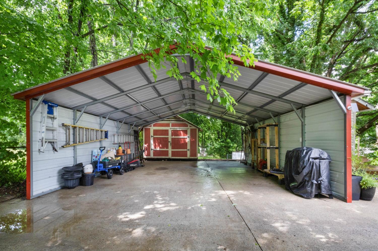 Charming, all-brick home sitting on 1/2 acre lot with mature trees & established neighborhood. Location, Location, Location!! Perfectly situated between Downtown, I-24 at Exit 8, Sango, or the mall. A short walk to Dunbar Cave State Park for hiking the trails. Updates galore with custom subway tile shower in primary bathroom. Carport & 2 sheds with electricity. Raised bed Garden w/ climbing David Austin roses, Blackberries & more. Huge yard for Privacy & Shade. Open kitchen, living and dining room. Newer laminate wood floors. Extra Den perfect for Teenager | In-law Suite. Quiet location, No HOA & space between you and the neighbors!