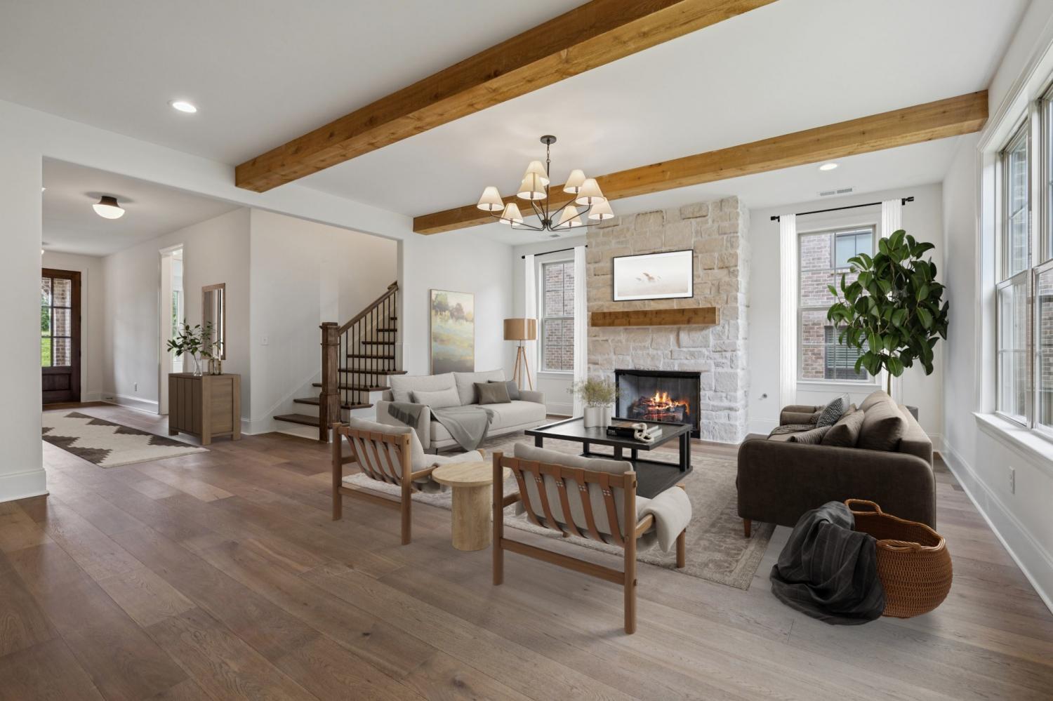 Welcome to the new Cypress Plan by Creekside Homes in the brand new Bellsford Landing community. This home is complete and ready for move-in! The open concept living room with a stone gas fireplace seamlessly connects to the dining space and kitchen with marble countertops, custom cabinetry, double ovens, a gas cooktop, and large walk-in pantry. All bathrooms include quartz countertops, upgraded delta plumbing fixtures and tile throughout floors and shower walls. This floor plan is functional for every day living with a mudroom drop zone at the garage entry, a laundry room off the master suite with cabinetry and a sink, and tons of storage space including huge closets throughout and a very large walk-in attic. The outdoor living space includes a covered porch with stained wood ceilings, brick gas fireplace and farm views. The beautiful new Bellsford Landing subdivision will include a playground, pavilion with grilling area, and a 1-mile walking and bike trail winding through shady tree-line areas and a 1-acre pond. This house is loaded down with upgraded features and designer finishes. Please reach out to builders agent for questions and a full list of what is included!