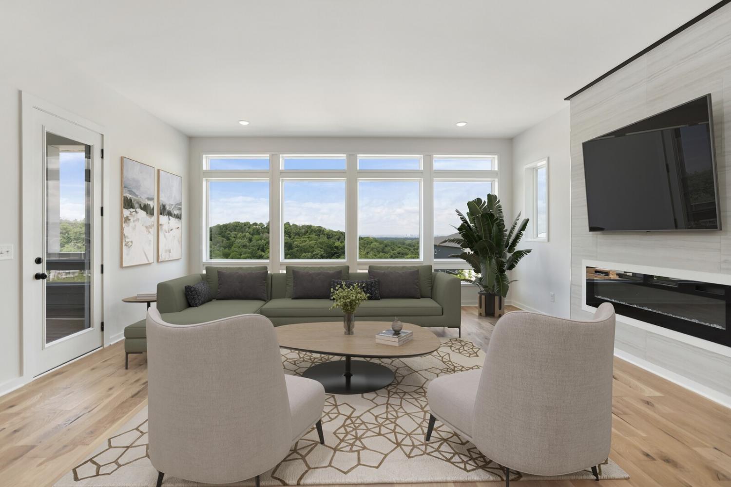 Up to 1% lender credit on the loan amount if the buyer uses the Seller's Preferred Lender. DOWNTOWN views from hillside modern homes nestled against Patterson Knob, one of the highest peaks in Davidson County. Skyline Floor Plan. Enjoy easy access to the best of city living and Williamson County, surrounded by rolling hills in a breathtaking setting. Feel the wide open spaces soaked in sunlight. Windows everywhere. Huge kitchen with gas cooktop, and wall oven/microwave are ready to entertain and take in the scenery. Custom modern fireplace tops off the living room. Views north to DOWNTOWN, west toward the Brentwood hills, and southeast overlooking Nolensville. This is the model, open daily 12-4pm