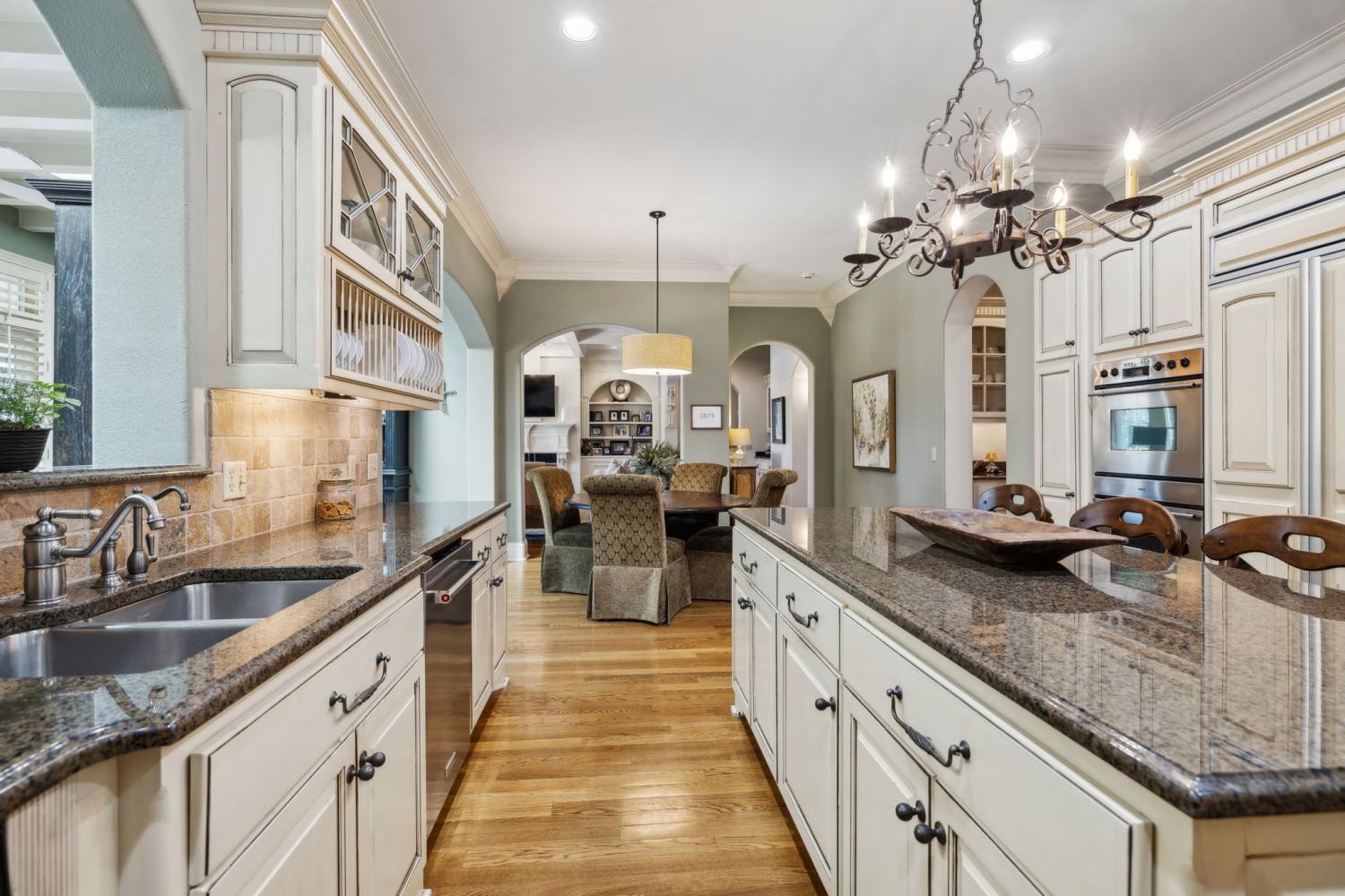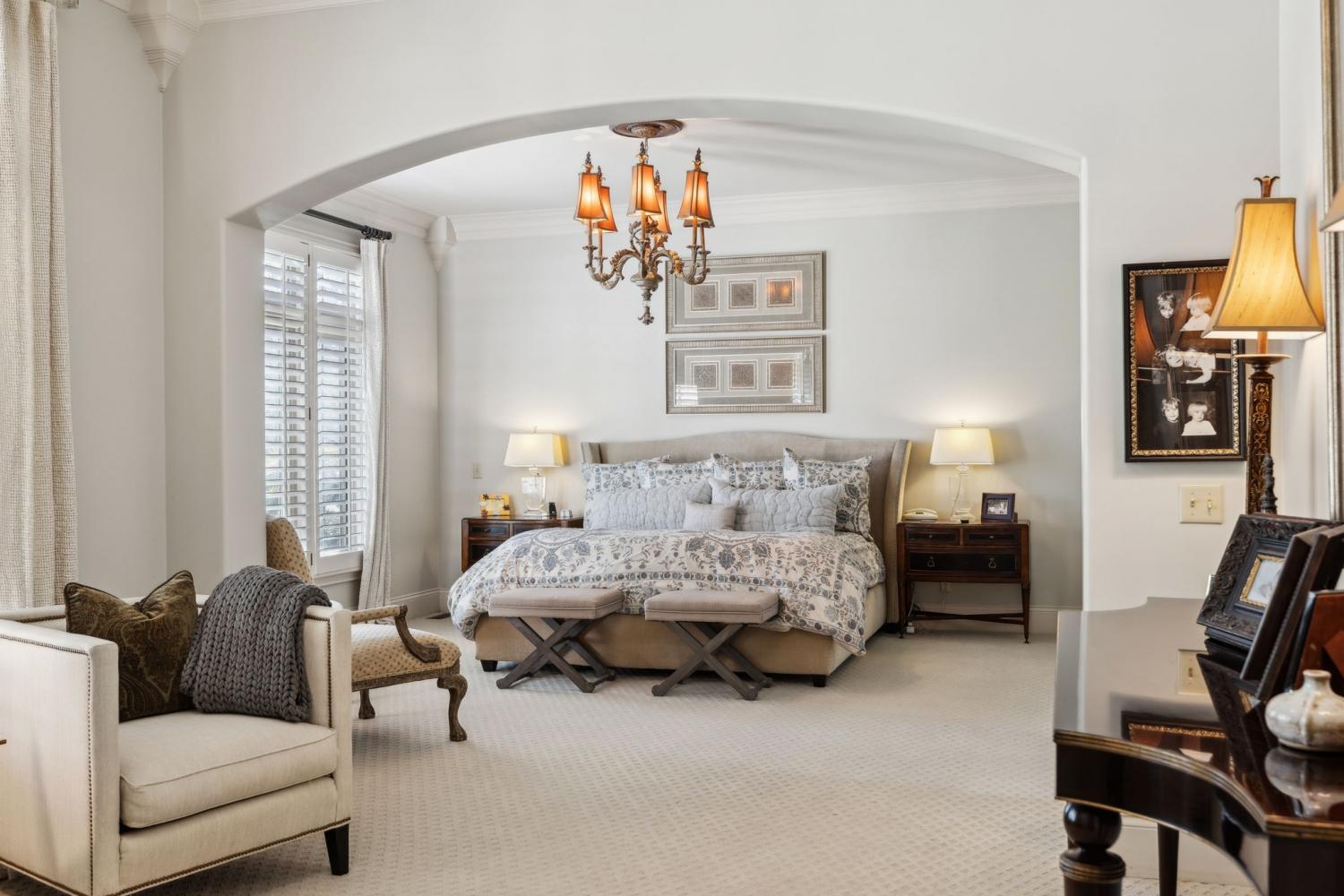 This home is The One you have been waiting for! Gracious 2 story entry foyer with marble floor* 10' ceilings* Main level owner's suite* Beautiful spa-like bathroom* Fantastic walk-in closet* Great room featuring French doors opening to 51'x 14' covered patio* Beautiful center island kitchen with KitchenAid refrigerator & dishwasher, Bosch double ovens, GE Monogram ice maker & Thermador 5-eye gas cooktop+ pantry* Oversized bonus above 3 Car Garages* All bedrooms have private bathrooms* Great Room with fireplace and built-ins* 2 staircases* Semicircle driveway for ample guest parking* Prime cul-de-sac location* Irrigation * Roof, windows & skylights replaced in 2019* New front door~ 2025* HVAC upstairs replaced 11/2023* You'll be Proud to call this home* Neighborhood Pool & tennis courts*