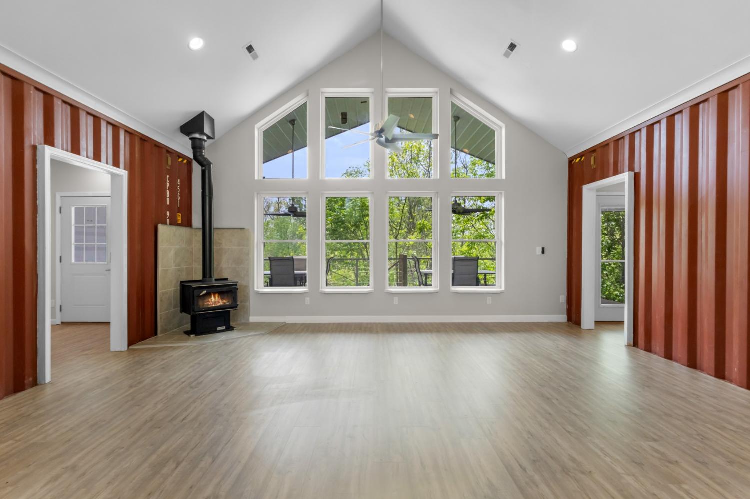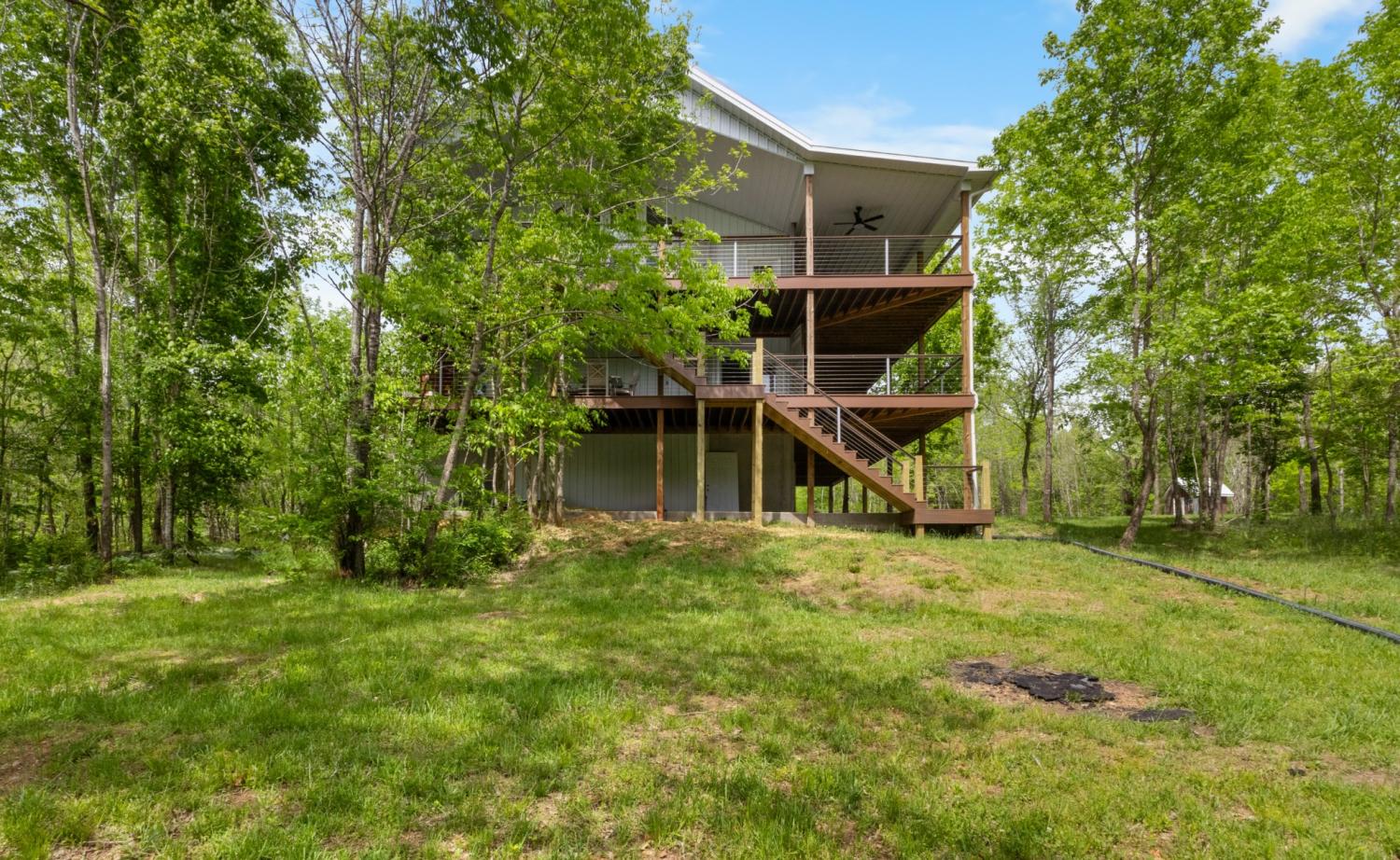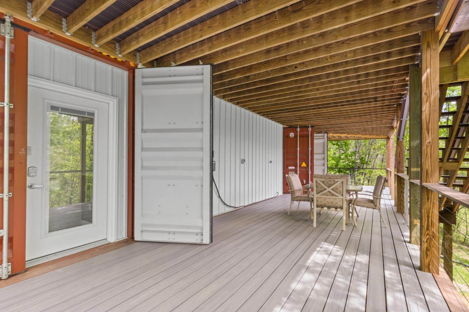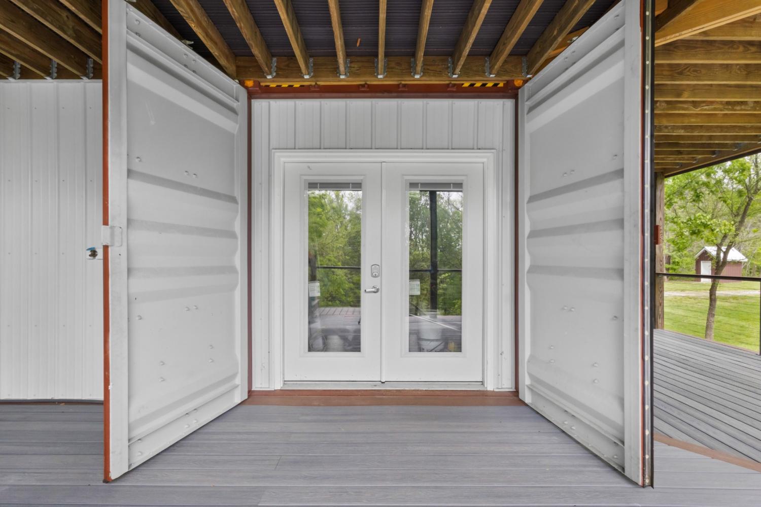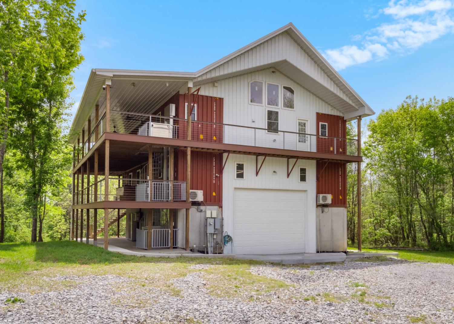**Innovative Home with Seasonal Lake Views & Endless Potential** Discover a truly unique retreat in a quiet water community on the Cumberland River—just a short drive to Fort Campbell, Nashville, and Land Between the Lakes. Nestled on nearly 6 private acres, this custom-built, three-story shipping container home offers seasonal lake views, modern amenities, and a rare opportunity for both full-time living and income-producing potential. The main residence features 2 spacious master bedrooms, each with luxurious jetted steam showers. The open-concept living area flows effortlessly, complemented by two additional rooms perfect for extra bedrooms, office space, or creative studios. Enjoy sunrise coffee or sunset serenity from the double wraparound porches, or perch atop the third-floor deck to soak in panoramic views of nature and water. On the middle level, you'll find **two fully equipped tiny homes**—each with 1 bedroom, a full kitchen, pocket doors, and jetted steam showers. One is nearly move-in ready; the other is awaiting final touches, with all materials included to complete it. Thoughtfully designed for accessibility, the home features a spiral staircase, elevator, and standard stairs for seamless navigation across all floors. The property includes **3 RV hookups**, **external-access bathrooms**, and ample space for additional tiny homes or campsites, making it perfect for events, retreats, or a lakeside rental venture. High-speed internet ensures you stay connected while enjoying your secluded haven. Lots #4, 5, 6, 7, 8, & 9 almost 6 acres convey with the property, offering flexibility for expansion or development. Whether you're seeking a peaceful home, a creative business opportunity, or a versatile investment, this one-of-a-kind container home delivers. Buyer and Buyer's Agent to verify all pertinent information. Come experience the magic of lakeview living—schedule your private tour today.