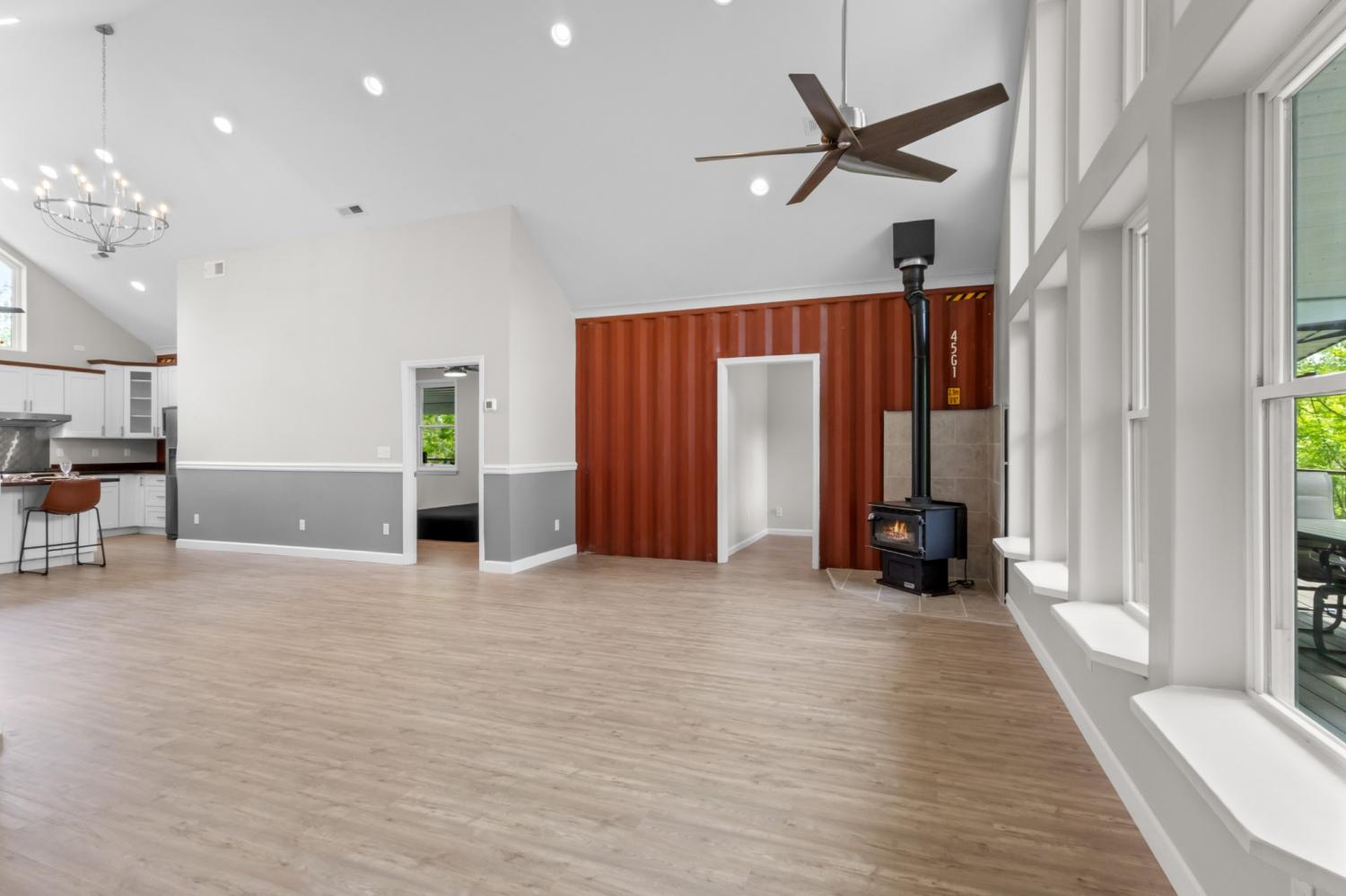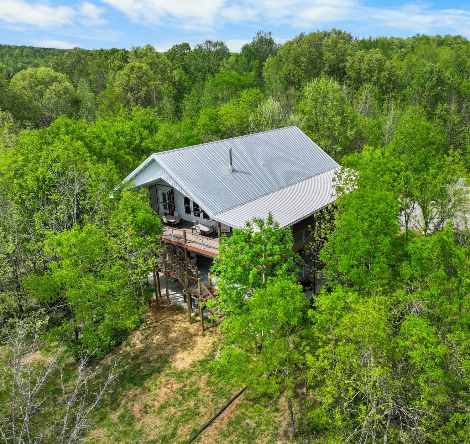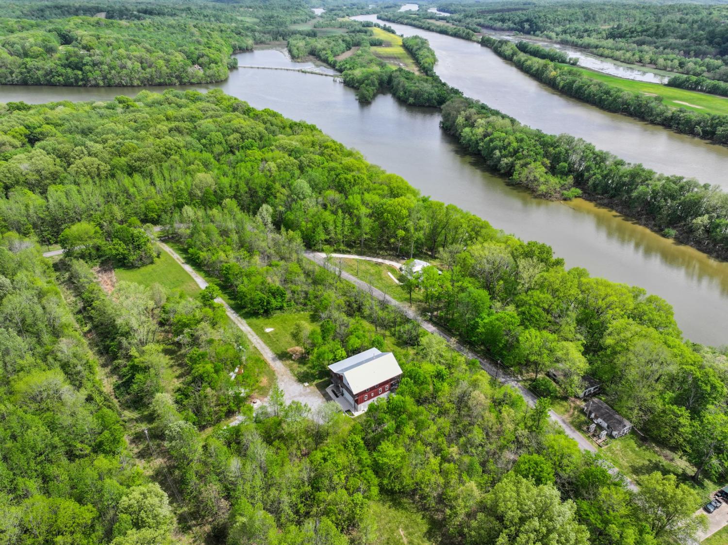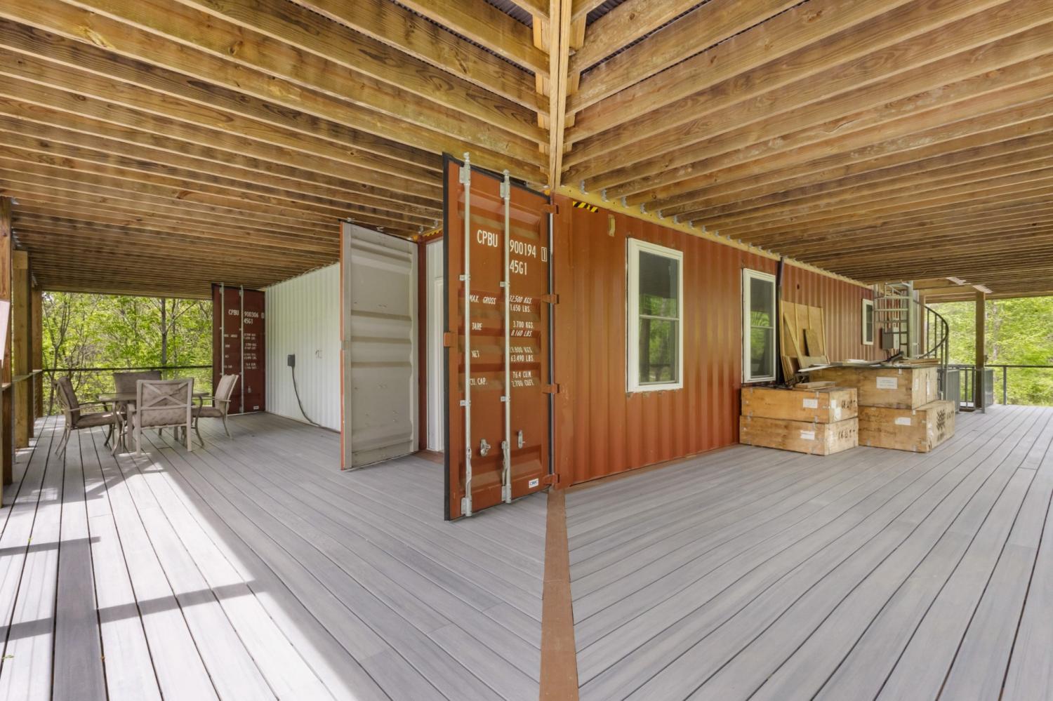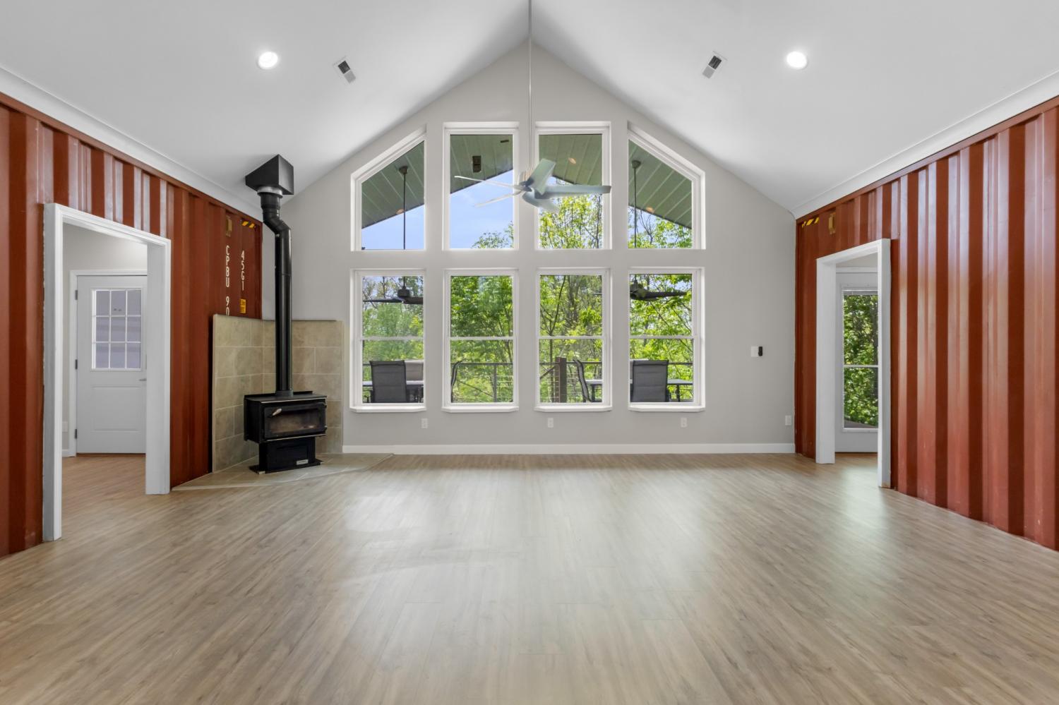 **Innovative Home with Seasonal Lake Views & Endless Potential** Discover a truly unique retreat in a quiet water community on the Cumberland River—just a short drive to Fort Campbell, Nashville, and Land Between the Lakes. Nestled on nearly 6 private acres, this custom-built, three-story shipping container home offers seasonal lake views, modern amenities, and a rare opportunity for both full-time living and income-producing potential. The main residence features 2 spacious master bedrooms, each with luxurious jetted steam showers. The open-concept living area flows effortlessly, complemented by two additional rooms perfect for extra bedrooms, office space, or creative studios. Enjoy sunrise coffee or sunset serenity from the double wraparound porches, or perch atop the third-floor deck to soak in panoramic views of nature and water. On the middle level, you'll find **two fully equipped tiny homes**—each with 1 bedroom, a full kitchen, pocket doors, and jetted steam showers. One is nearly move-in ready; the other is awaiting final touches, with all materials included to complete it. Thoughtfully designed for accessibility, the home features a spiral staircase, elevator, and standard stairs for seamless navigation across all floors. The property includes **3 RV hookups**, **external-access bathrooms**, and ample space for additional tiny homes or campsites, making it perfect for events, retreats, or a lakeside rental venture. High-speed internet ensures you stay connected while enjoying your secluded haven. Lots #4, 5, 6, 7, 8, & 9 almost 6 acres convey with the property, offering flexibility for expansion or development. Whether you're seeking a peaceful home, a creative business opportunity, or a versatile investment, this one-of-a-kind container home delivers. Buyer and Buyer's Agent to verify all pertinent information. Come experience the magic of lakeview living—schedule your private tour today.
