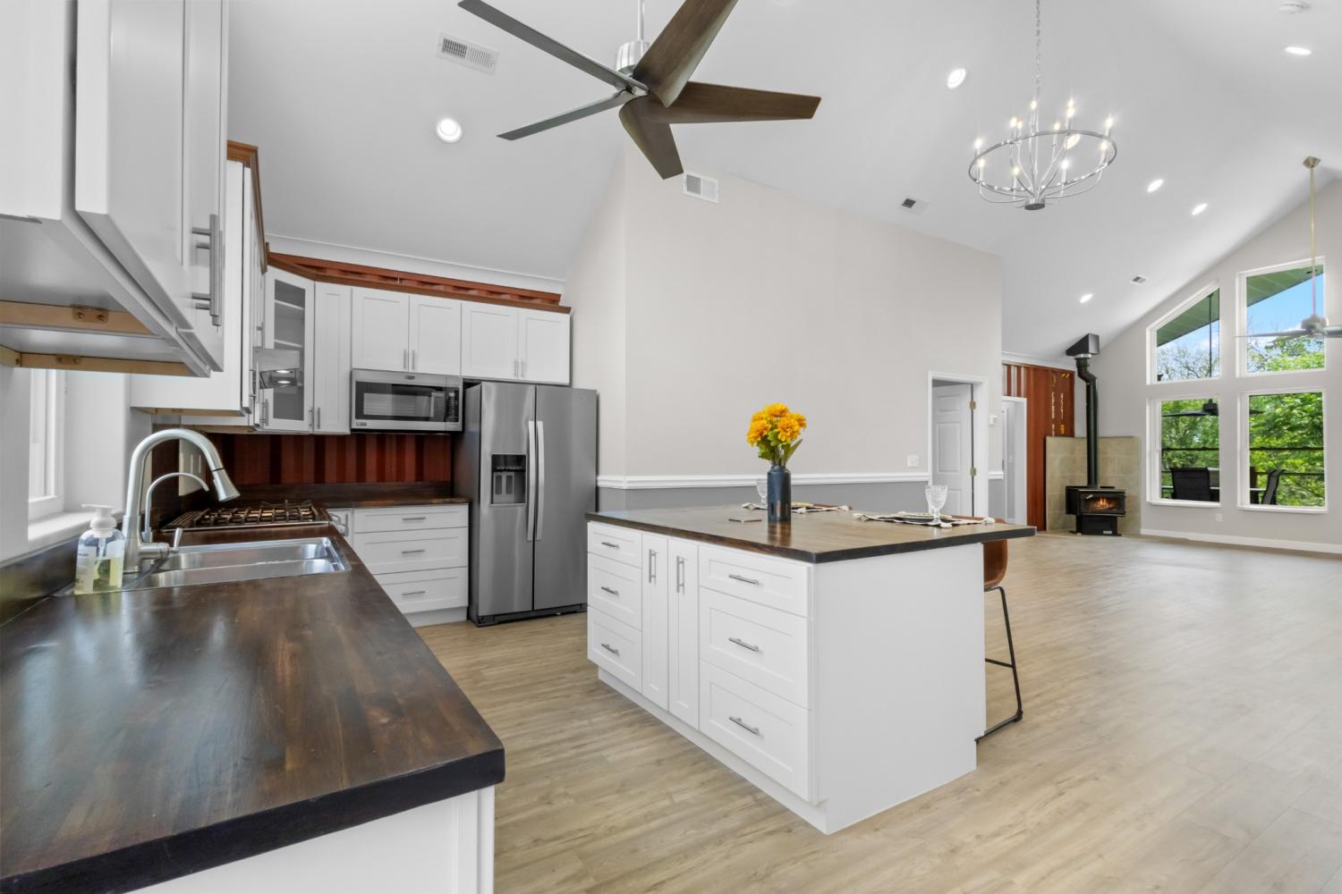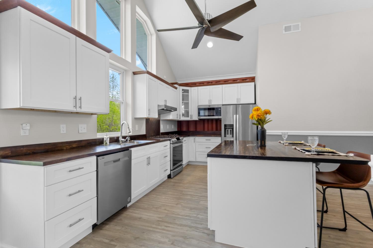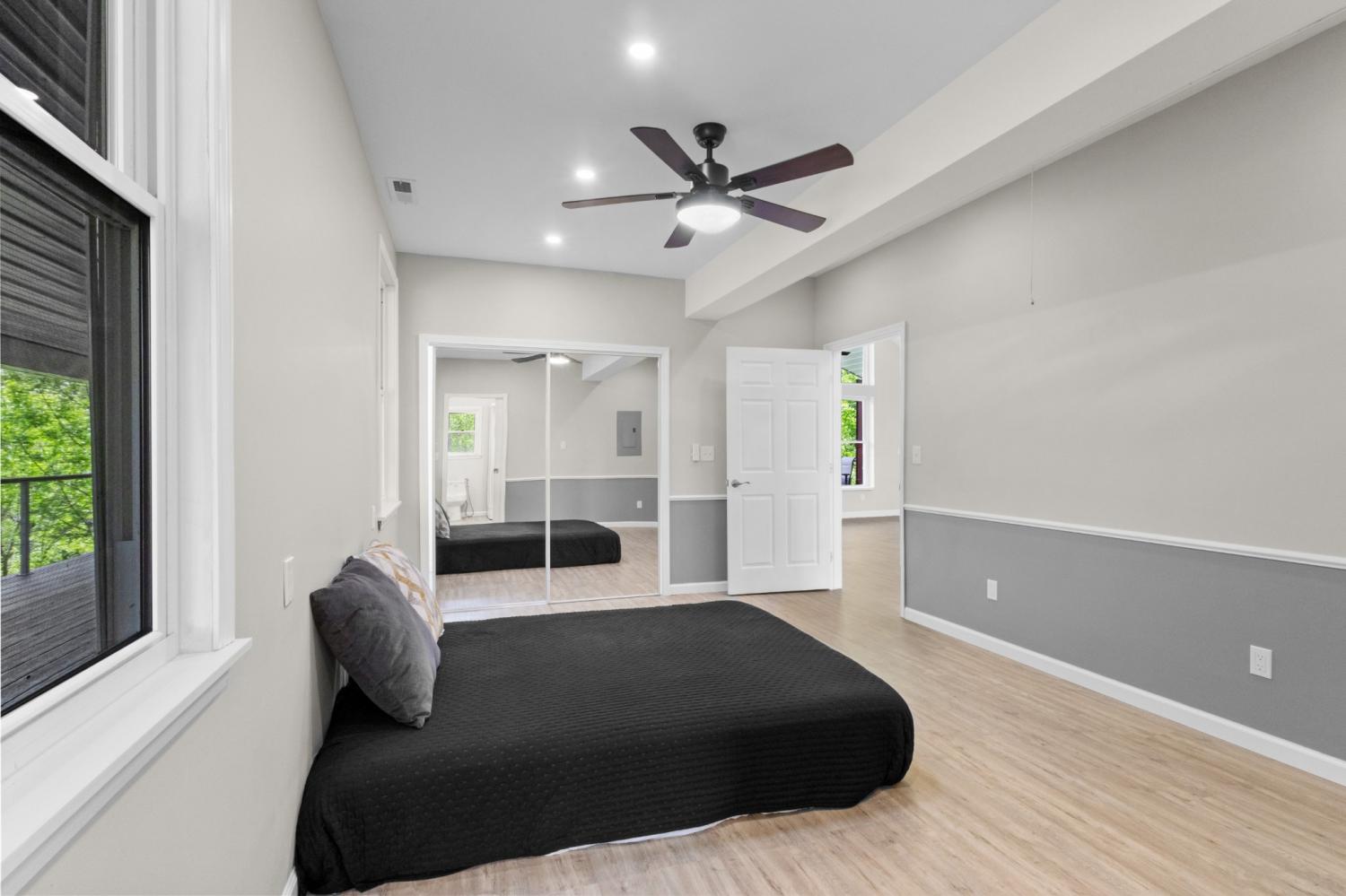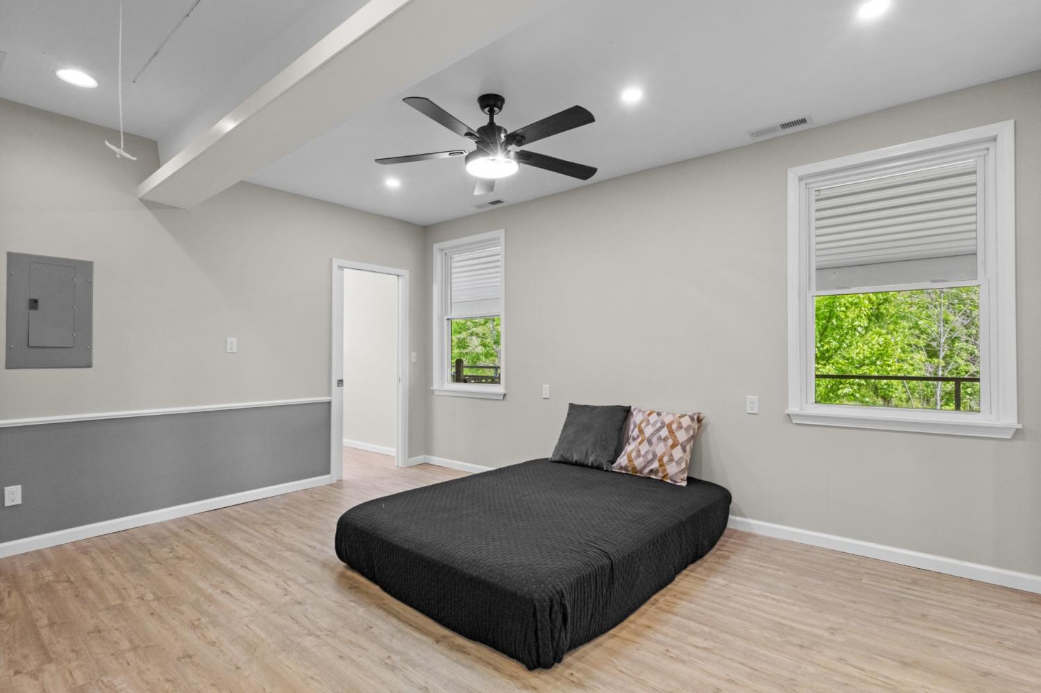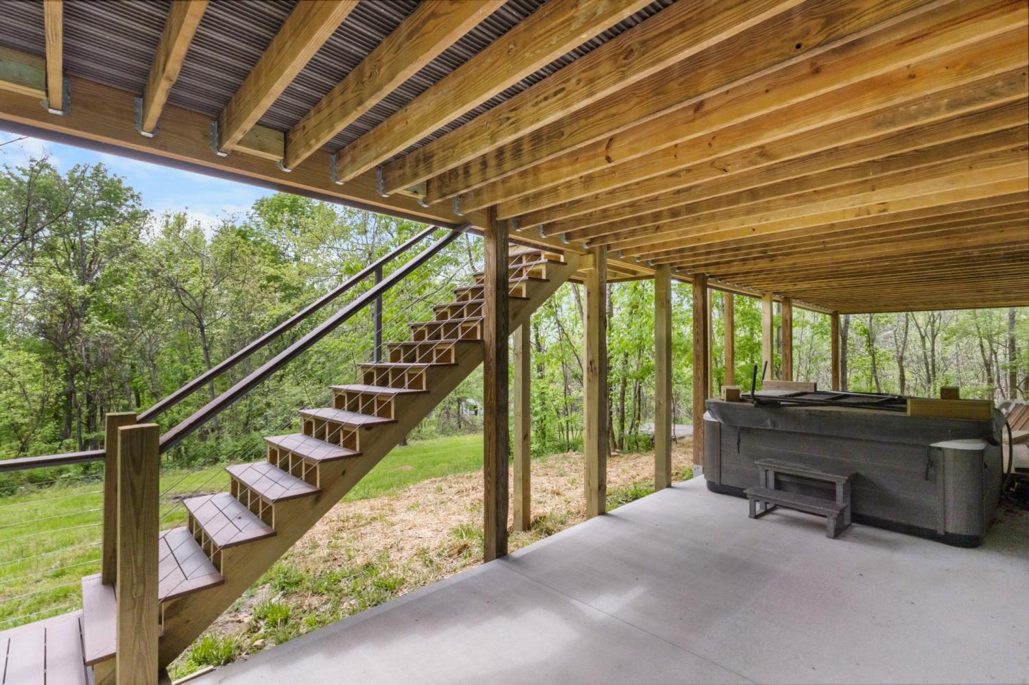 **Innovative Home with Seasonal Lake Views & Endless Potential** Discover a truly unique retreat in a quiet water community on the Cumberland River—just a short drive to Fort Campbell, Nashville, and Land Between the Lakes. Nestled on nearly 6 private acres, this custom-built, three-story shipping container home offers seasonal lake views, modern amenities, and a rare opportunity for both full-time living and income-producing potential. The main residence features 2 spacious master bedrooms, each with luxurious jetted steam showers. The open-concept living area flows effortlessly, complemented by two additional rooms perfect for extra bedrooms, office space, or creative studios. Enjoy sunrise coffee or sunset serenity from the double wraparound porches, or perch atop the third-floor deck to soak in panoramic views of nature and water. On the middle level, you'll find **two fully equipped tiny homes**—each with 1 bedroom, a full kitchen, pocket doors, and jetted steam showers. One is nearly move-in ready; the other is awaiting final touches, with all materials included to complete it. Thoughtfully designed for accessibility, the home features a spiral staircase, elevator, and standard stairs for seamless navigation across all floors. The property includes **3 RV hookups**, **external-access bathrooms**, and ample space for additional tiny homes or campsites, making it perfect for events, retreats, or a lakeside rental venture. High-speed internet ensures you stay connected while enjoying your secluded haven. Lots #4, 5, 6, 7, 8, & 9 almost 6 acres convey with the property, offering flexibility for expansion or development. Whether you're seeking a peaceful home, a creative business opportunity, or a versatile investment, this one-of-a-kind container home delivers. Buyer and Buyer's Agent to verify all pertinent information. Come experience the magic of lakeview living—schedule your private tour today.