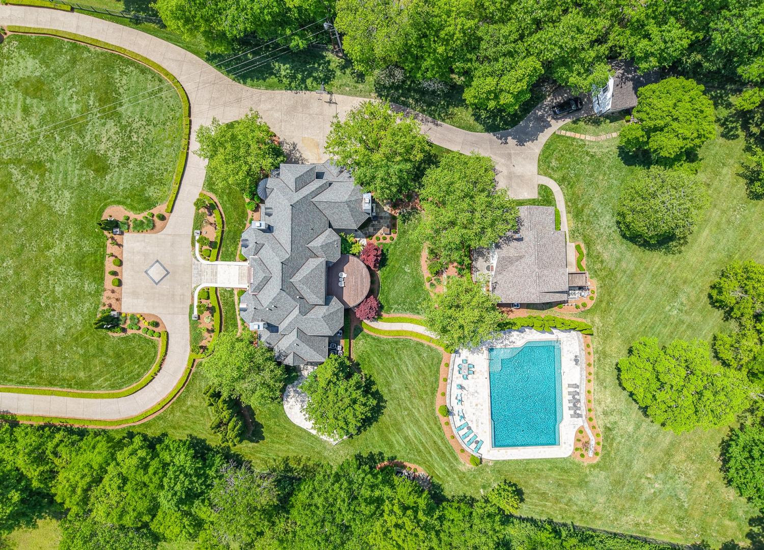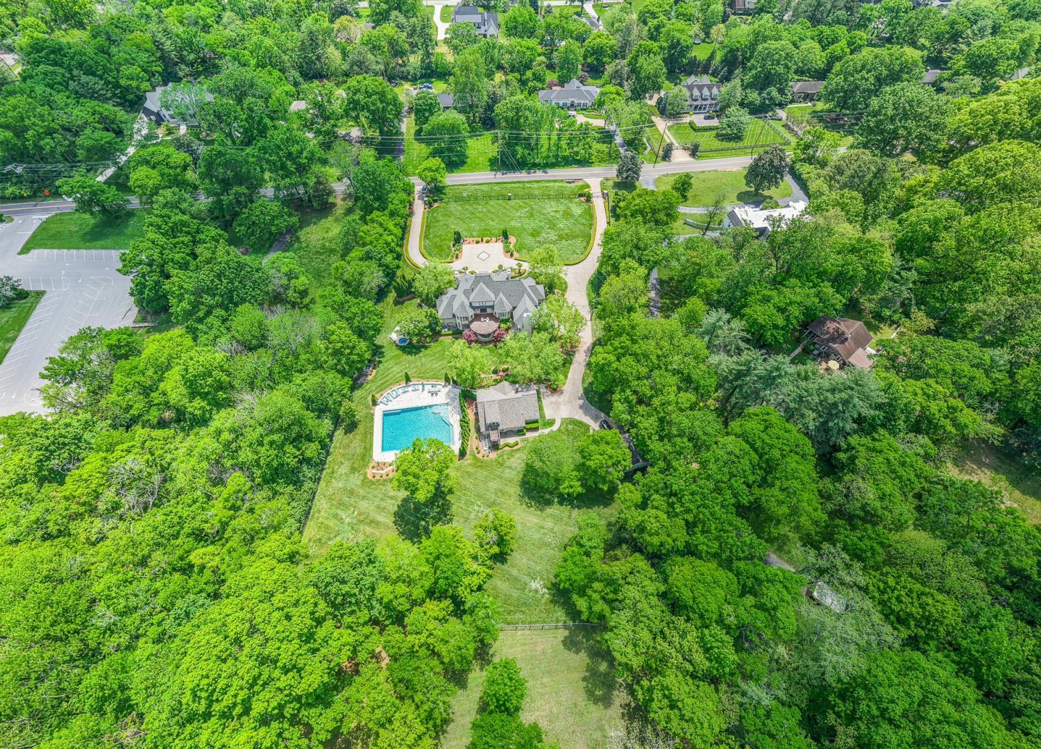 The perfect multi generational property. A rare find with 3.7 beautiful, private acres within close proximity to Green Hills, Brentwood and 12th South. Enjoy a short walk to the popular Radnor Lake State Park and the Granny White Market. This is an exceptional high quality home with a beautiful grand entrance, spacious rooms, amazing millwork, and construction. Enjoy an amazing oversized pool with separate hot tub. A 2246 back house serves as a guesthouse, or pool house with a 3 bedrooms, 2 full baths, full kitchen and two living areas. One more separate structure is a 473 SF studio with full bath for the owners custom golf simulator (Not included) The main house has an elevator to all four floors, two full house generators which services the entire main house and guest house. Four car attached garage. The property has two security gates opening to a grand circular driveway, lush landscaping with full front and back irrigation system. Some of the photos attached are of the guest house. (see captions on individual phots)