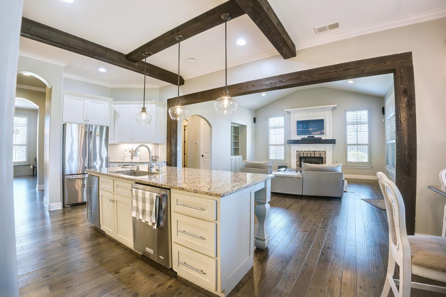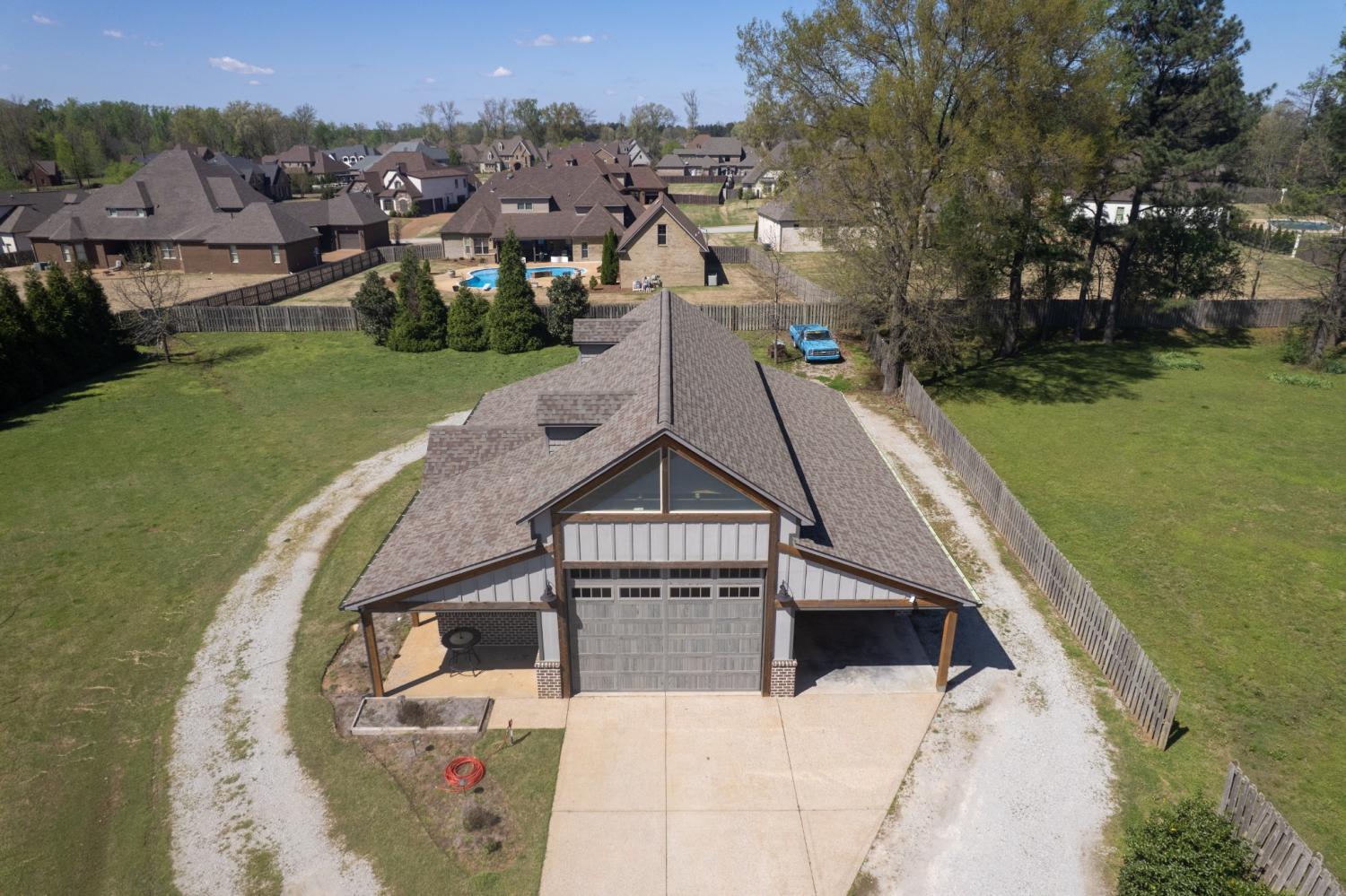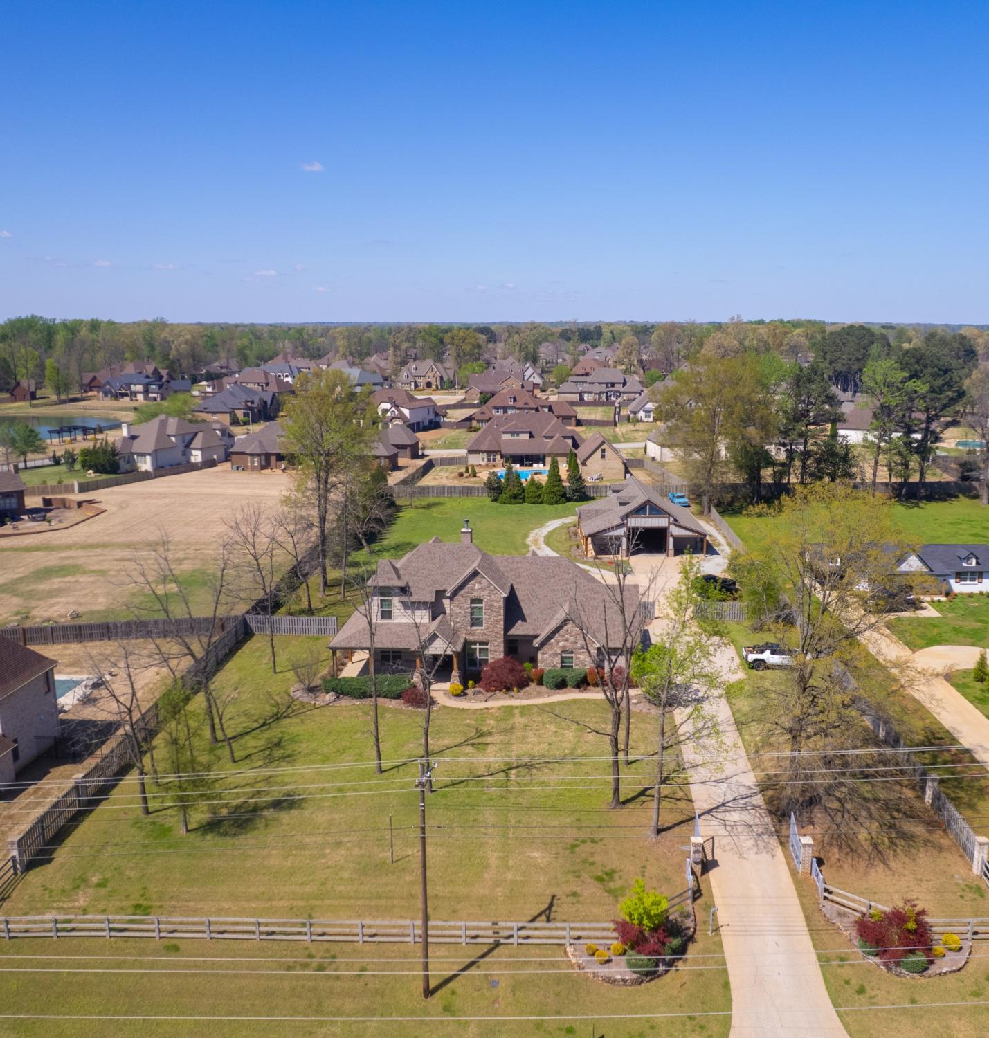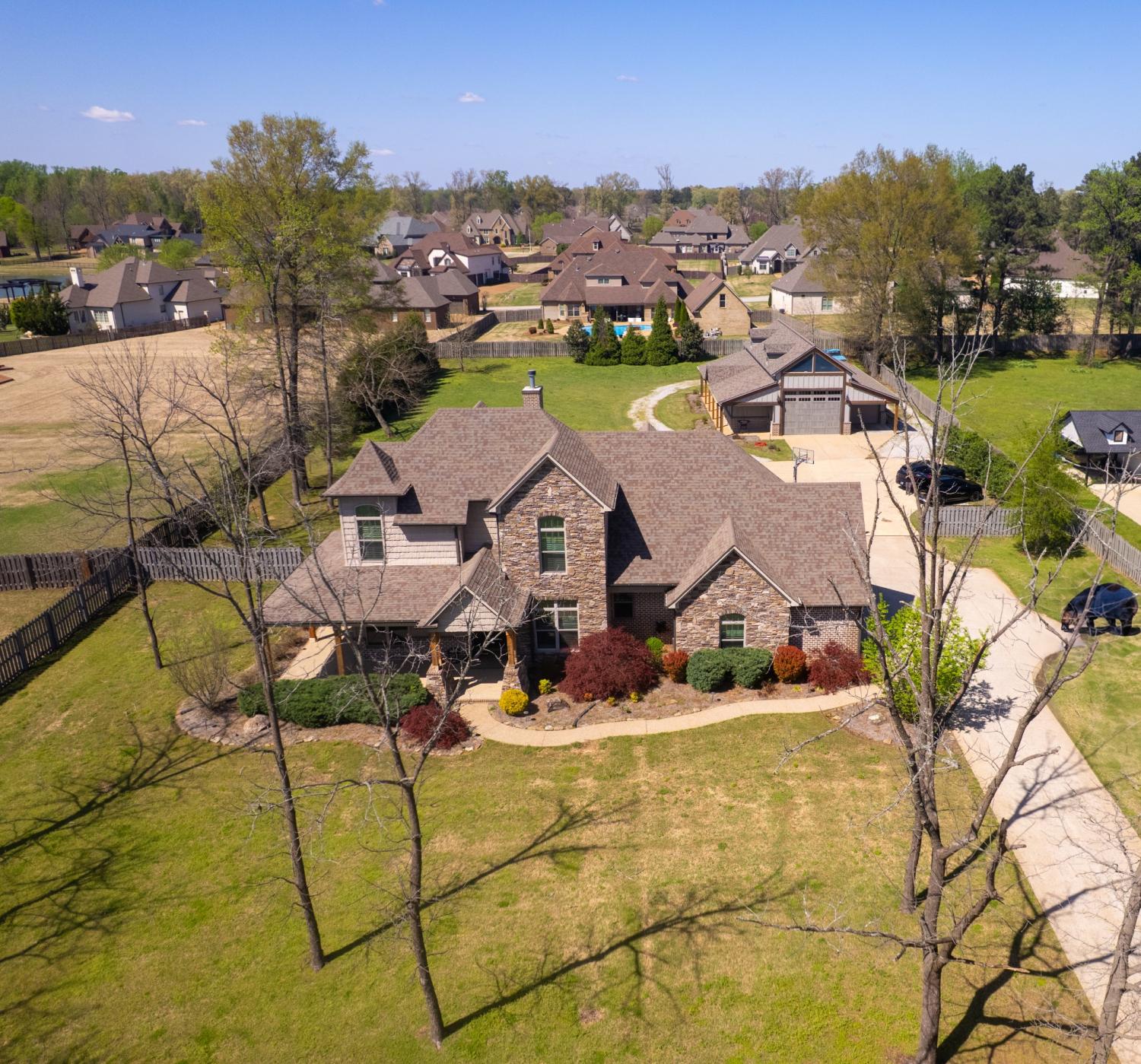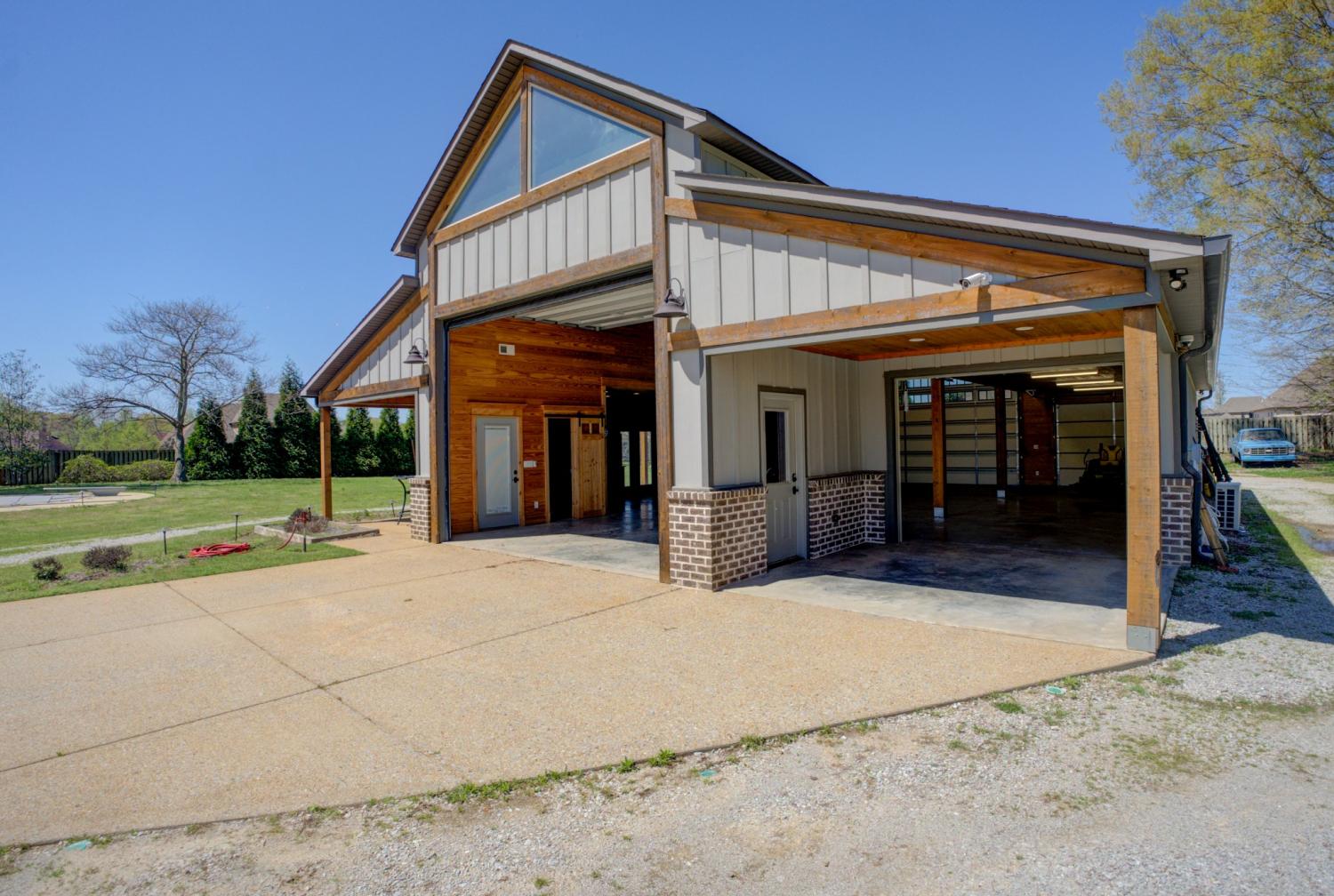 Nestled on 1.44 acres of lush grounds, this stunning luxury home offers an exceptional blend of elegance and comfort. Featuring a gated driveway and a charming wrap-around porch, the residence spans 3,900 heated square feet and includes 4 spacious bedrooms, 3.5 bathrooms, a dedicated office, and a recreation room. The master suite is a true sanctuary, complete with a vaulted wood ceiling, a spa-inspired master bath featuring a walk-through shower, a freestanding tub, and a custom closet. The chef's kitchen is a masterpiece, custom-designed with upgraded appliances and a nugget ice maker for the perfect touch. Throughout the home, spray foam insulation ensures energy efficiency and comfort. Enjoy outdoor living at its finest with a 20x17 screened porch that features an inviting outdoor fireplace, ideal for relaxing or entertaining. A heated and cooled in-ground saltwater pool in a serene Deer Lake style provides a private oasis. The property also boasts a 2,400 sqft heated and cooled shop, complete with a kitchen, bath, and four roll-up doors, perfect for hobbies, storage, or business. This home is the epitome of luxury living with every detail thoughtfully designed for comfort and style. Call today for your private tour.