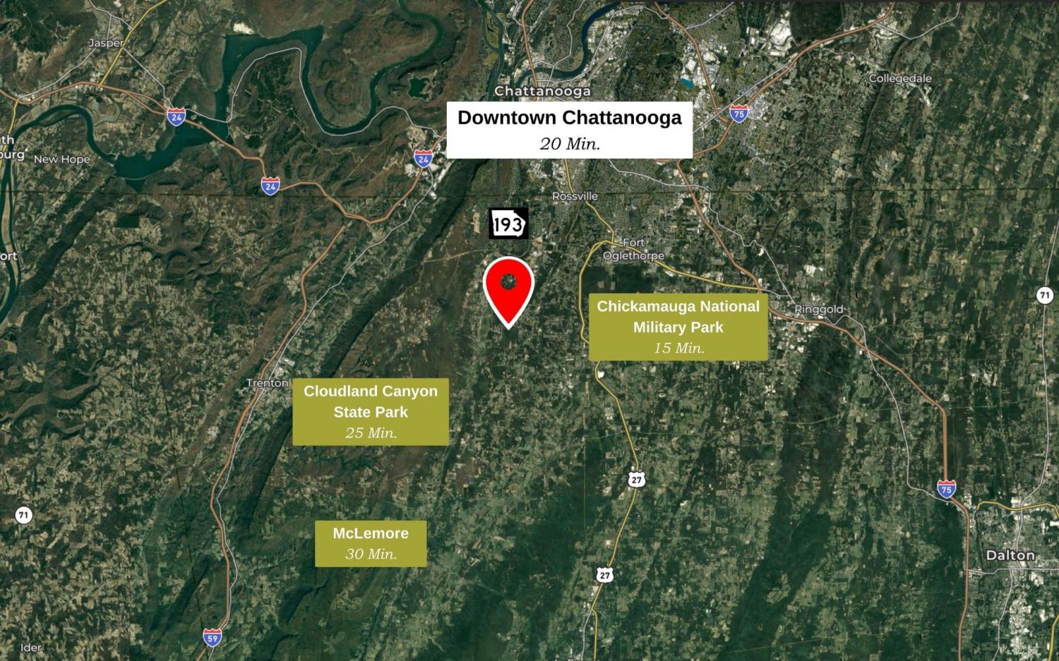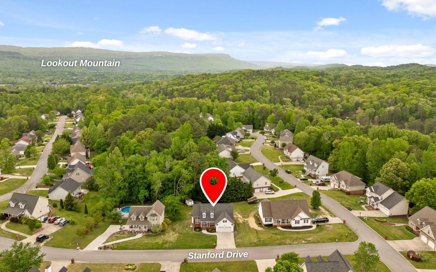 From Downtown Chattanooga: Take Broad Street south to St Elmo. Use the left 2 lanes to turn left onto TN-17. Follow to Georgia state line. Continue on GA-193S. Turn left onto Chickamauga Road. Sight right onto Old Chattanooga Valley Road. Turn left onto Stanford Drive, home will be on the left.