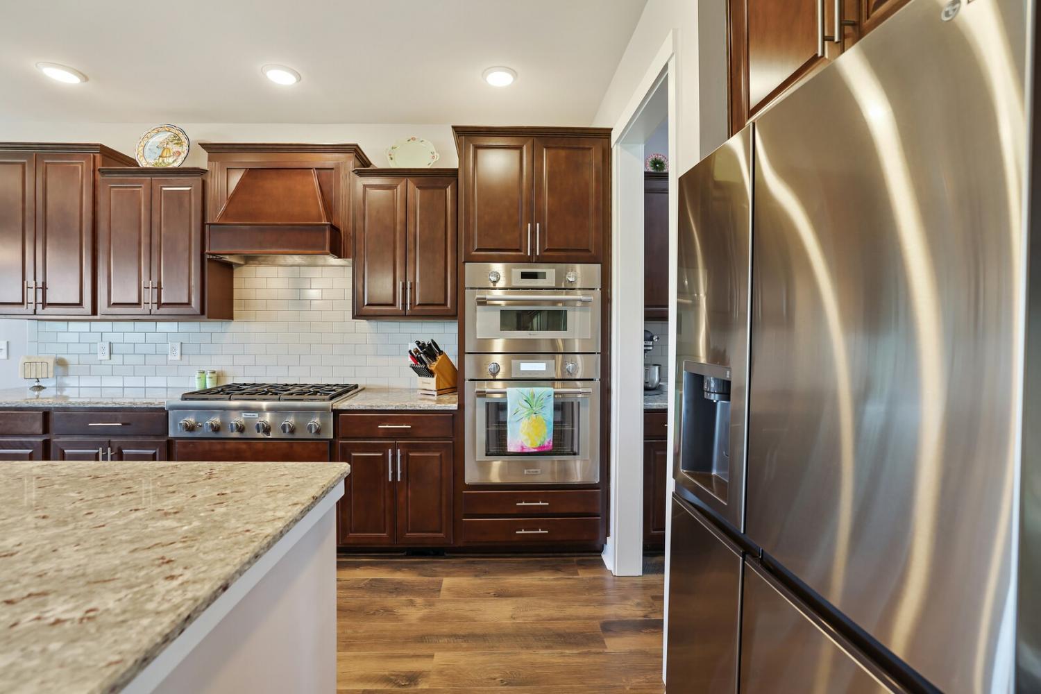 Welcome to one of the few homes in the desirable Brixworth community that offers both a walk-out basement and a private in-ground pool! This meticulously maintained brick home features a welcoming entry flanked by a comfortable home office and formal dining room. The heart of the home features an open-concept kitchen and living area complete with ample cabinetry, a large island, gas cooktop, stainless steel appliances, and an eat-in dining nook. The adjacent living room flows beautifully, and just a step above you’ll find a secondary office space with built-in desk and cabinetry—perfect for working from home or managing household needs. The primary suite on the main level is a true retreat, featuring trey ceilings, a large walk-in closet, and an en-suite bath with dual vanities, soaking tub, and separate shower. Upstairs, enjoy a versatile bonus/flex space ideal for recreation or relaxation, along with spacious guest bedrooms and abundant storage. Downstairs, the walk-out basement adds even more flexible living space, with room to entertain, relax, or create a media or fitness area. Additional highlights include a whole-house vacuum system, enhanced electrical throughout the garage, a full home security system, & irrigation system! Step outside to your personal oasis with a covered patio, upper-level deck, and a beautifully maintained backyard featuring a private in-ground pool. This is a rare gem offering space, comfort, and luxury in one of the area's most sought-after communities. Up to 1% lender credit on the loan amount if the buyer uses the Seller's Preferred Lender.