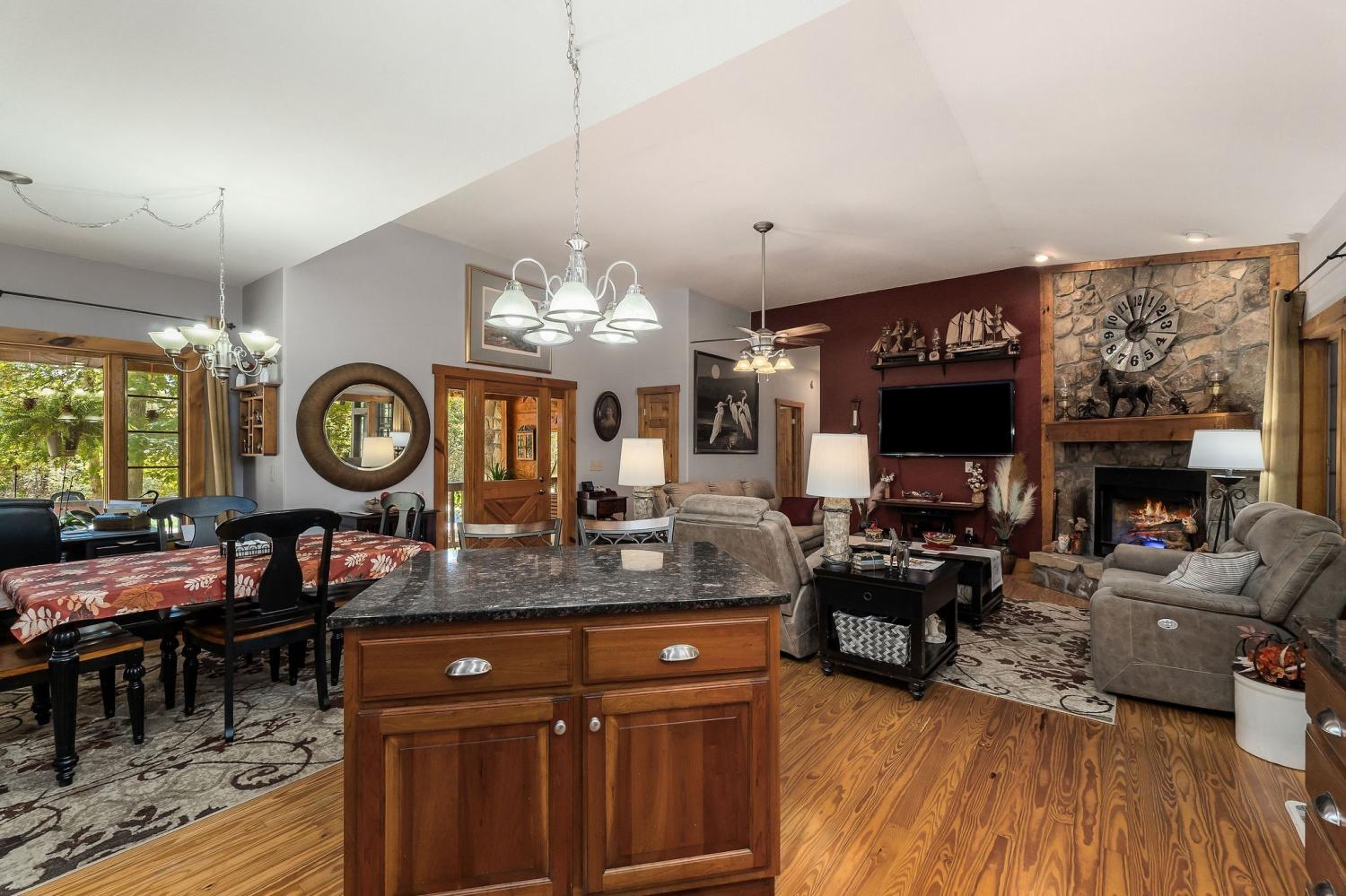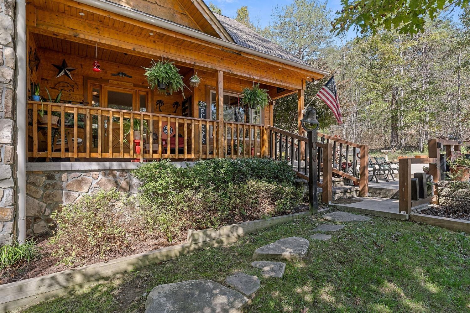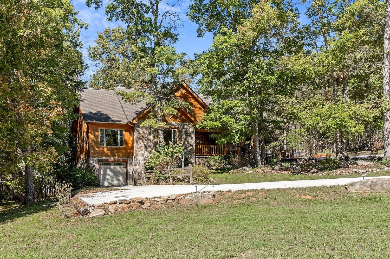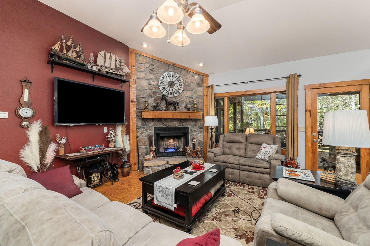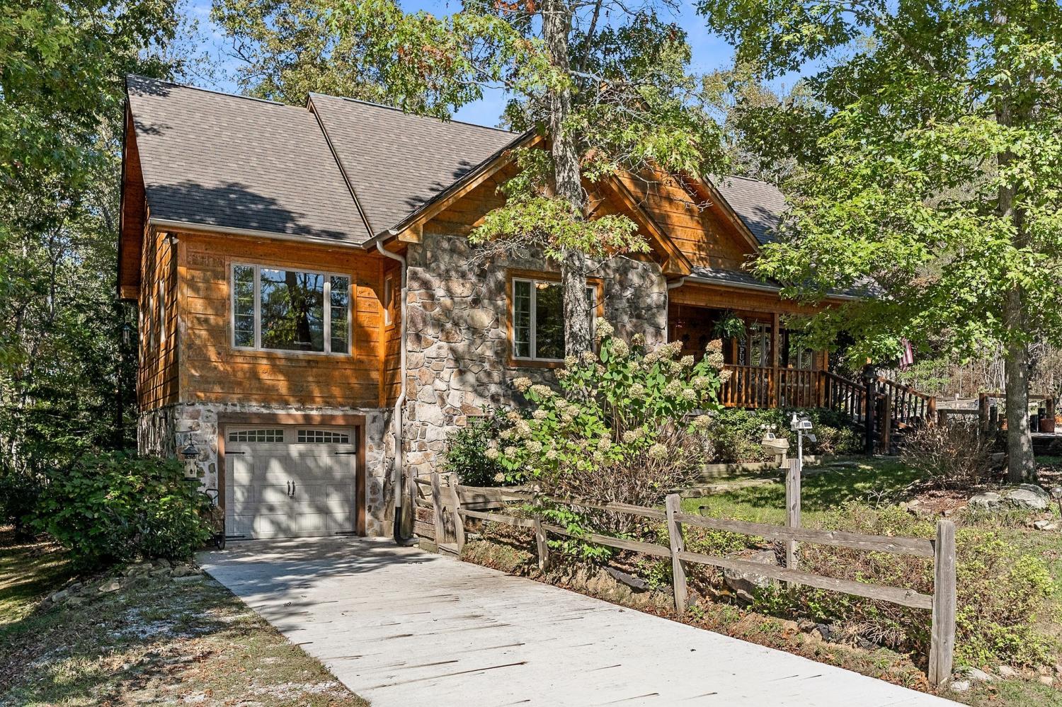 A rare find where nature, comfort, and character come together! Nestled in a gated community with resort-style amenities, this beautifully maintained 3-bedroom, 2-bathroom home offers over 250 feet of creek frontage with peaceful lake views—a true private oasis. Crafted with conventional construction, the home features wood siding and stone accents, blending rustic charm with lasting quality. Inside, you’ll find gorgeous hardwood floors, a cozy inset gas fireplace (easily convertible back to wood-burning), and a warm, inviting layout. The kitchen includes appliances that are just a year old, and the spacious master suite offers a large walk-in shower for added comfort. Step out to your 20x27 screened-in porch and take in the serene creek views, gather around the fire pit, or enjoy time in your garden area. The property also features ample concrete driveway space for parking, leaf guards on the gutters, and fiber optic internet for fast, reliable connection. The climate-controlled one-car subterranean garage includes a workshop and storage area, adding even more functionality to this well-thought-out home. As part of the gated community, you’ll also have access to two large pavilions, a pool, scenic lakes, a general store, and an optional equestrian center for horse lovers. Outdoor furniture is negotiable, making it even easier to move in and start enjoying your peaceful new lifestyle—all for just $479,900. Don’t miss your chance to own this beautiful retreat—schedule your showing today!