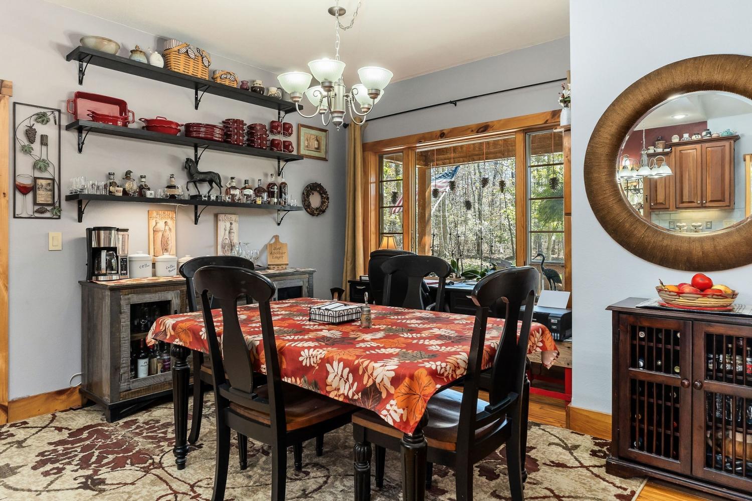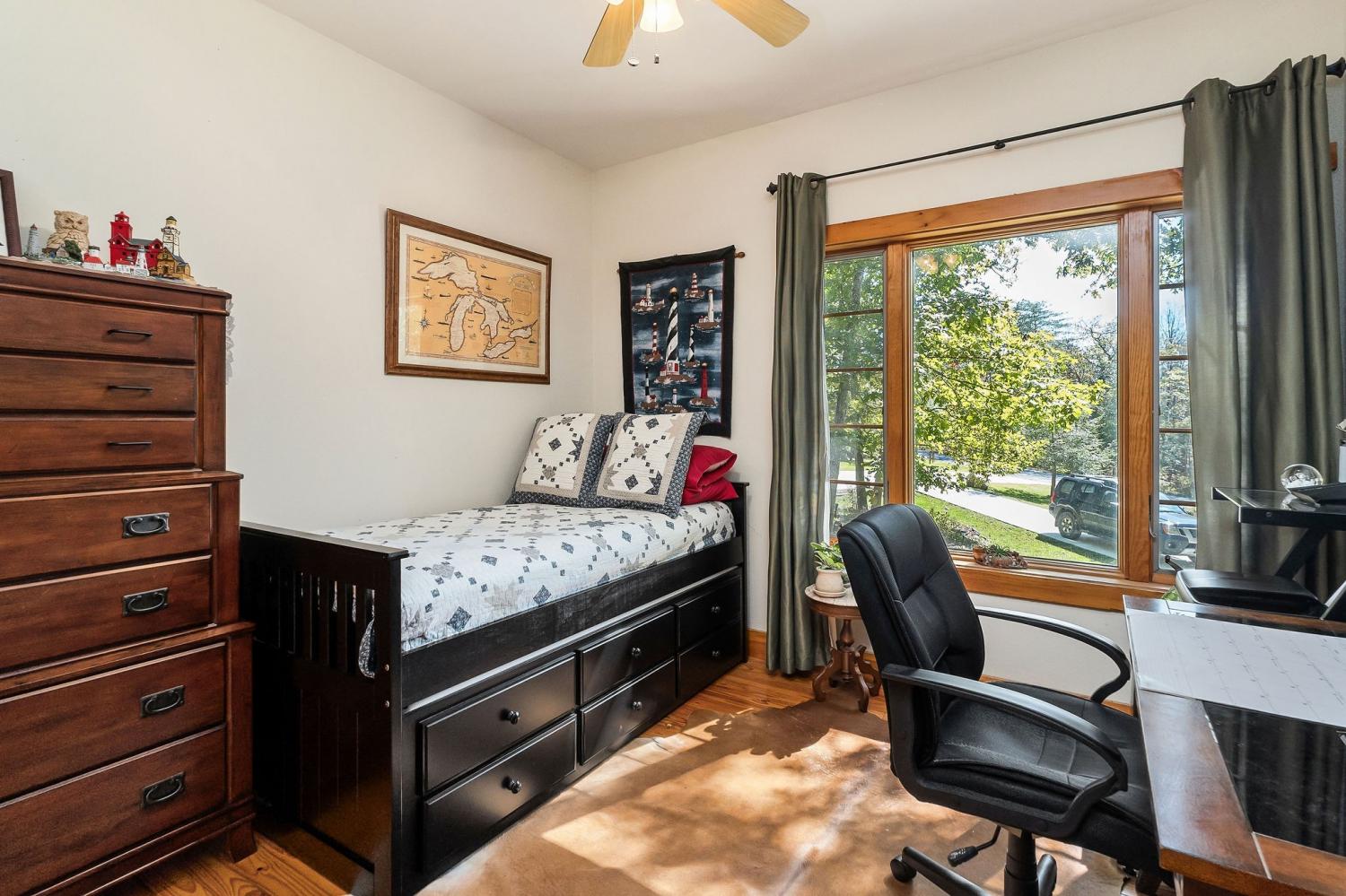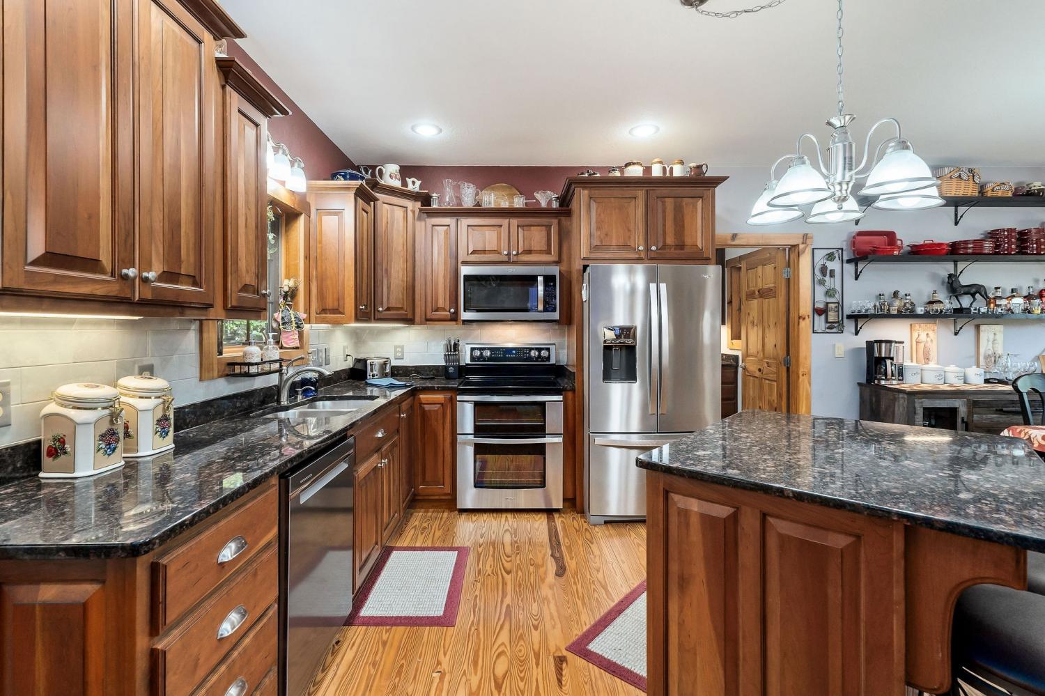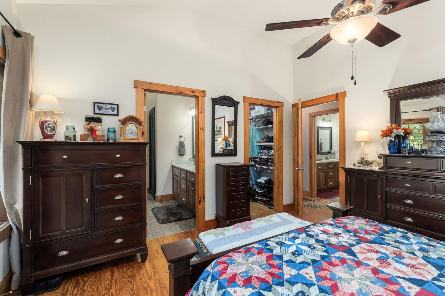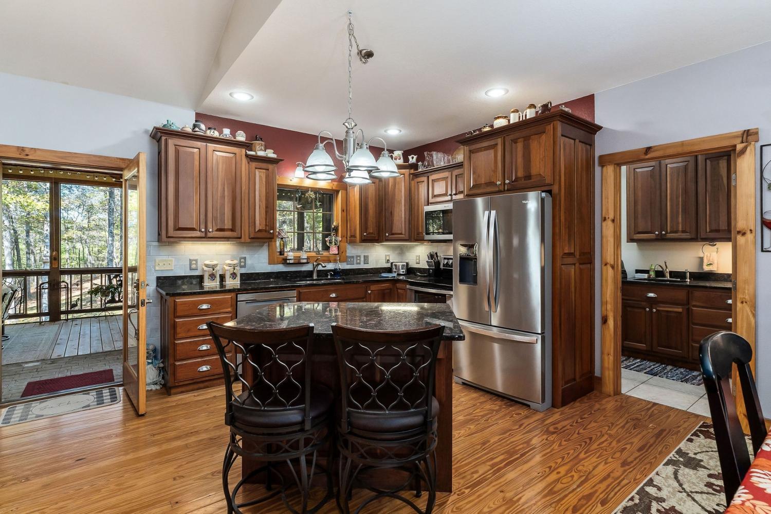 A rare find where nature, comfort, and character come together! Nestled in a gated community with resort-style amenities, this beautifully maintained 3-bedroom, 2-bathroom home offers over 250 feet of creek frontage with peaceful lake views—a true private oasis. Crafted with conventional construction, the home features wood siding and stone accents, blending rustic charm with lasting quality. Inside, you’ll find gorgeous hardwood floors, a cozy inset gas fireplace (easily convertible back to wood-burning), and a warm, inviting layout. The kitchen includes appliances that are just a year old, and the spacious master suite offers a large walk-in shower for added comfort. Step out to your 20x27 screened-in porch and take in the serene creek views, gather around the fire pit, or enjoy time in your garden area. The property also features ample concrete driveway space for parking, leaf guards on the gutters, and fiber optic internet for fast, reliable connection. The climate-controlled one-car subterranean garage includes a workshop and storage area, adding even more functionality to this well-thought-out home. As part of the gated community, you’ll also have access to two large pavilions, a pool, scenic lakes, a general store, and an optional equestrian center for horse lovers. Outdoor furniture is negotiable, making it even easier to move in and start enjoying your peaceful new lifestyle—all for just $479,900. Don’t miss your chance to own this beautiful retreat—schedule your showing today!