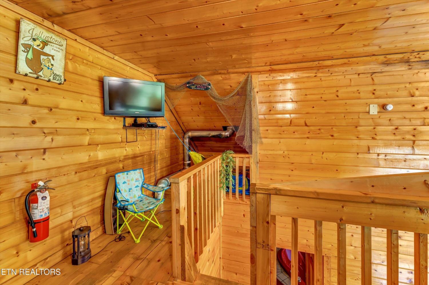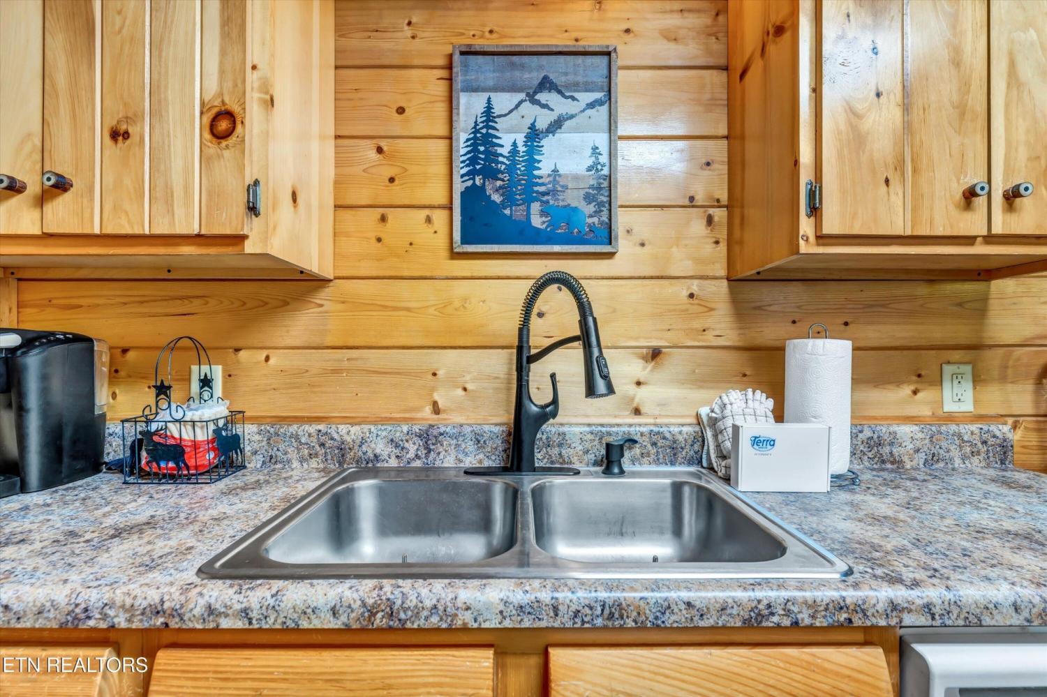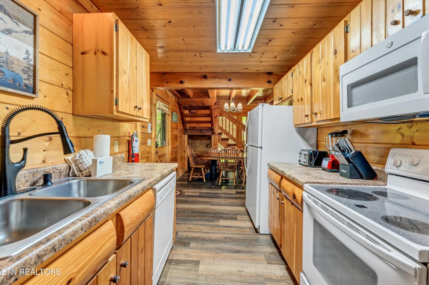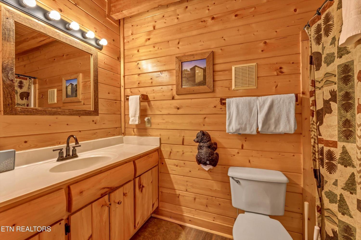 This charming 2 bed, 2 bath log cabin in the heart of Pigeon Forge offers 1,664 sqft of classic cabin charm and modern comfort. An ideal short-term rental or mountain retreat. The open living and dining area features soaring wooden beam ceilings, a cozy fireplace, and an abundance of windows that fill the space with natural light. The kitchen carries the rustic aesthetic with wooden cabinetry and a warm, welcoming atmosphere. Both bedrooms are generously sized, and the two bathrooms include unique features; one boasting a red heart-shaped jetted tub and walk-in shower. The loft area provides extra sleeping space, perfect for accommodating guests. Step outside to unwind on either of the two covered porches overlooking a peaceful creek-one with a private hot tub, perfect for soaking after a day in the Smokies. Incredible location with easy access to area attractions-don't miss this opportunity to own a piece of the Smoky Mountains!