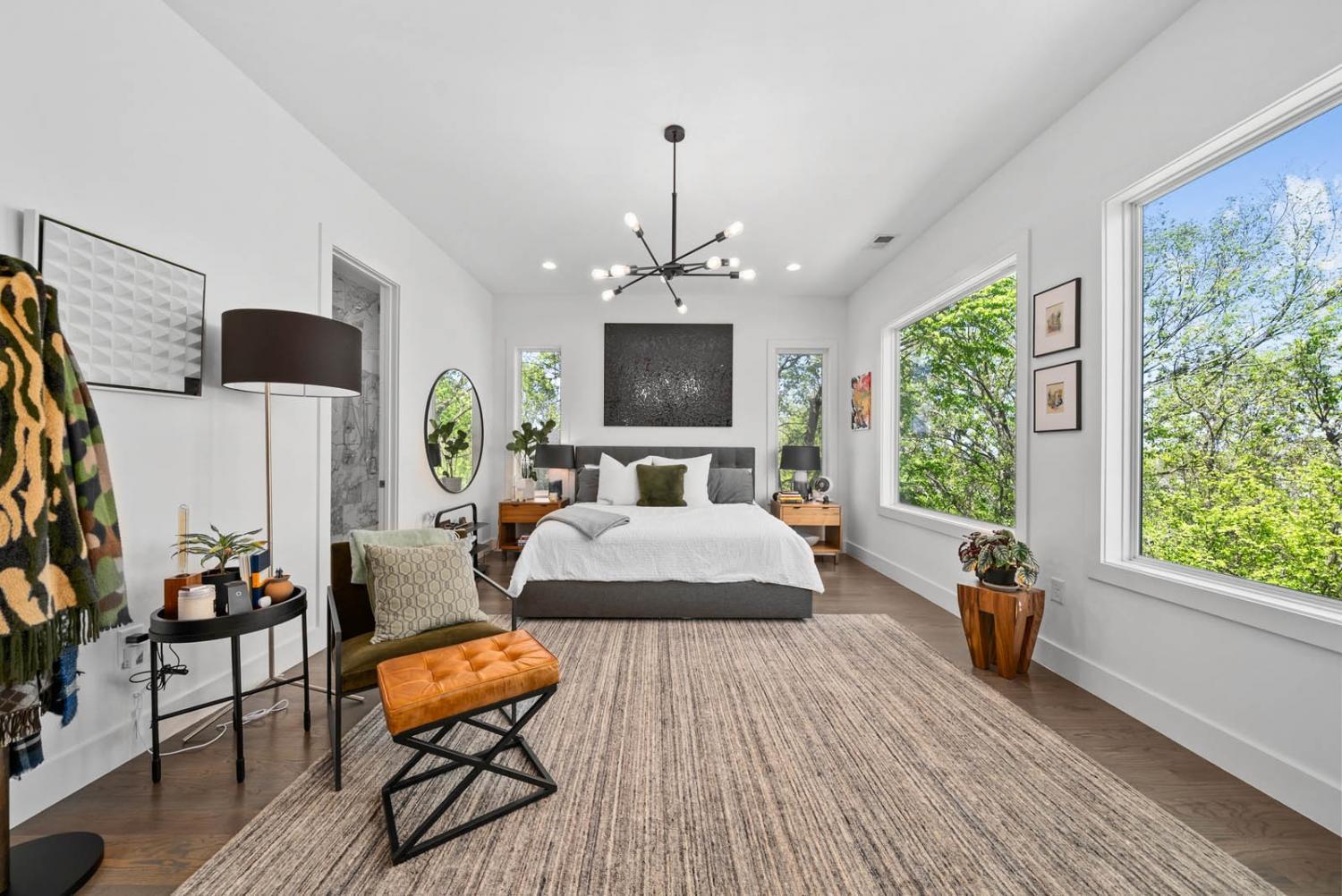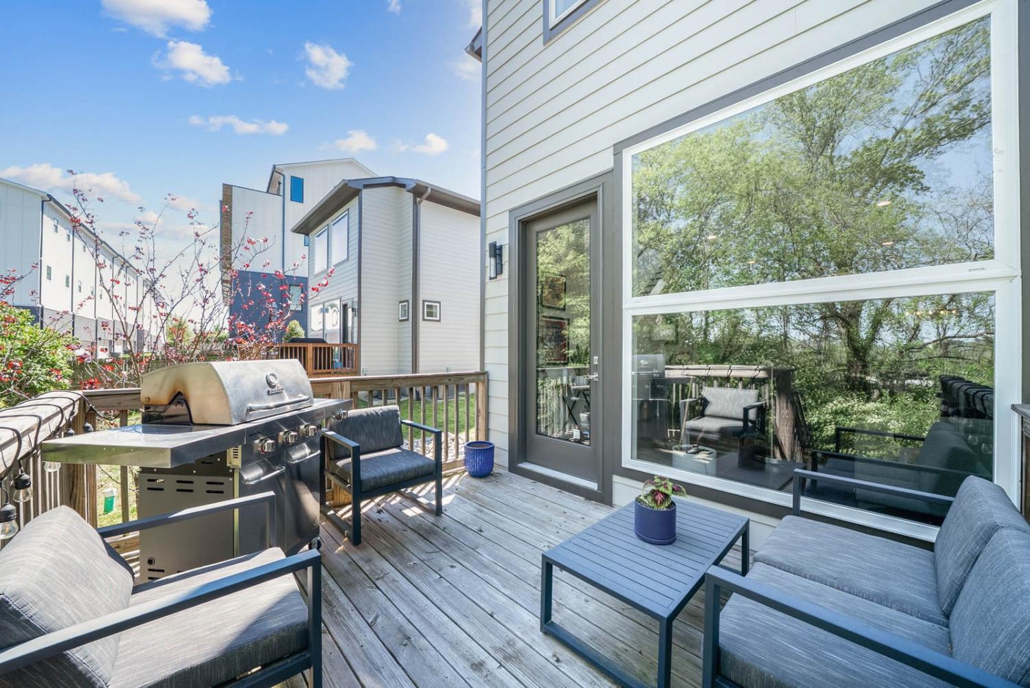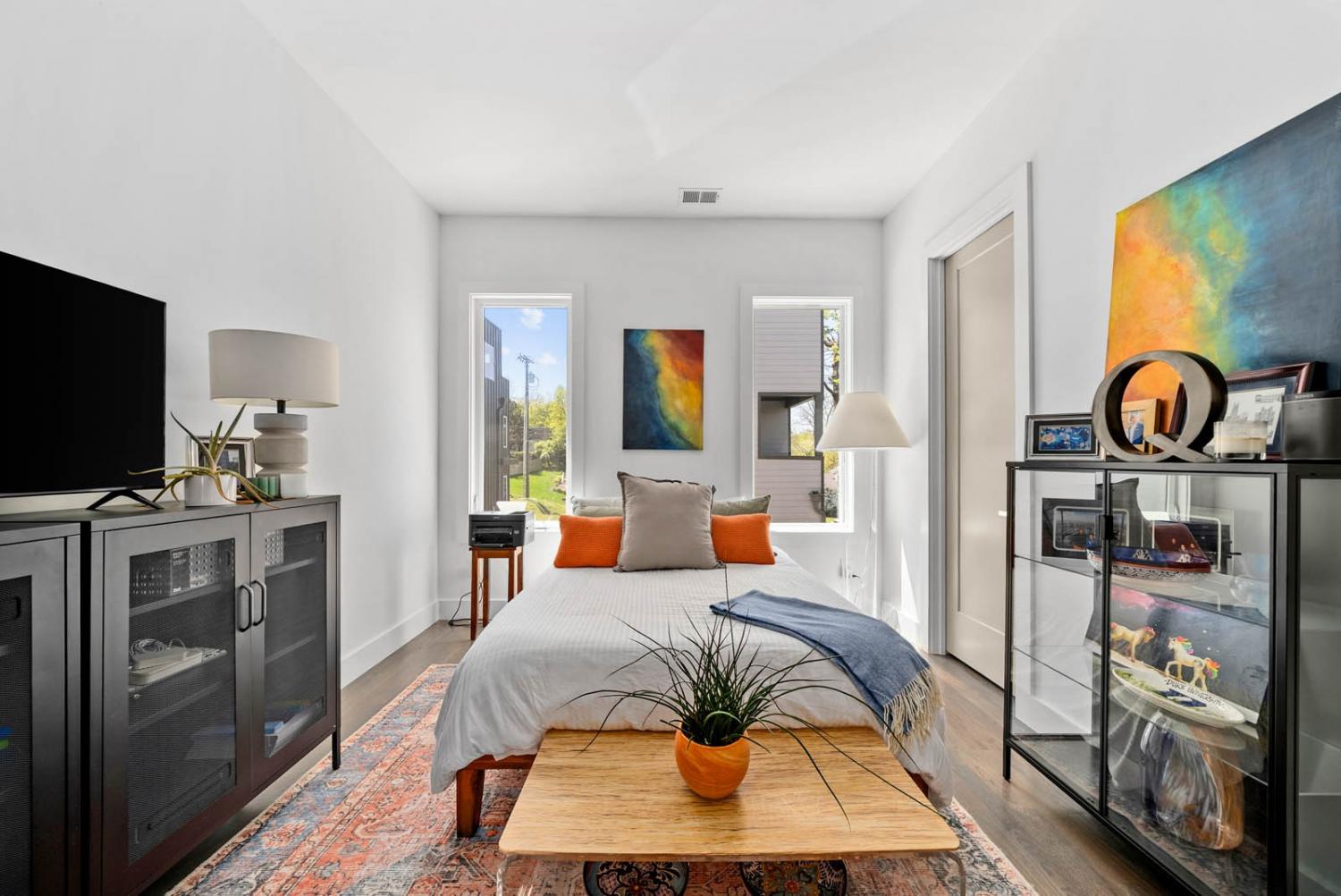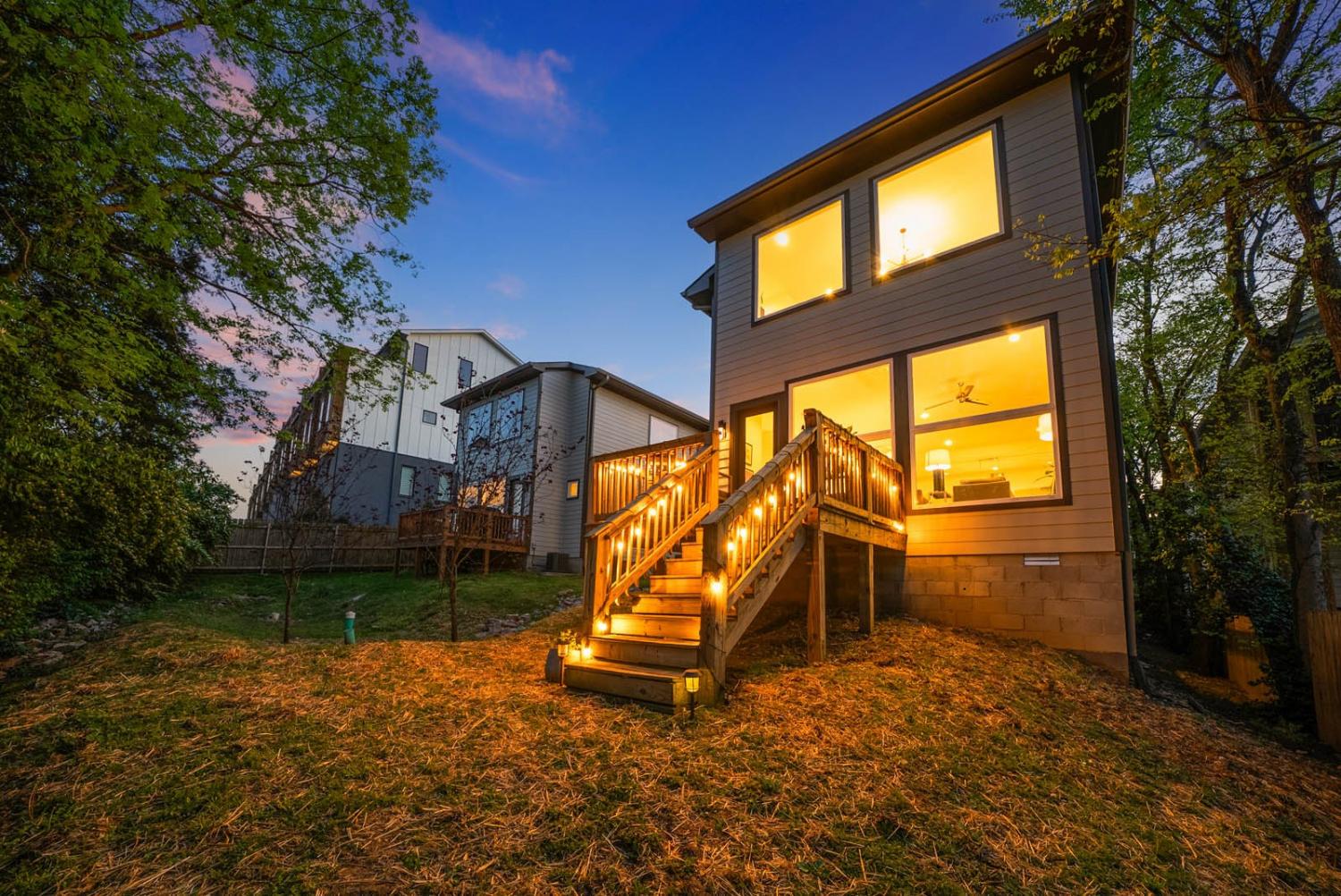 Located on a quiet, dead-end street in a quaint neighborhood, this gorgeous 3-bedroom, 2.5-bathroom home offers a perfect blend of modern luxury and comfort. With expansive oversized windows and soaring high ceilings, the home is bathed in natural light, creating an open, airy atmosphere throughout. The spacious kitchen is a chef's dream, featuring sleek quartz countertops, a large kitchen island, and a gas stove—perfect for entertaining or enjoying family meals. The owner's suite is a true retreat with a large walk-in custom closet & an on-suite bathroom that includes a walk-in shower and stunning floor-to-ceiling tile. Two spacious guest bedrooms share a convenient Jack and Jill bathroom, with the same high-end finishes. The entire home boasts beautiful hardwood floors, adding warmth and elegance to every room. Step outside onto the back deck and enjoy breathtaking views of downtown Nashville—perfect for sipping your morning coffee or hosting guests. The home also includes an attached two-car garage for added convenience. Situated just minutes from Sylvan Park and The Nations, this home offers easy access to vibrant Nashville living, while maintaining the peaceful charm of a quiet neighborhood. Ask about lender incentives.