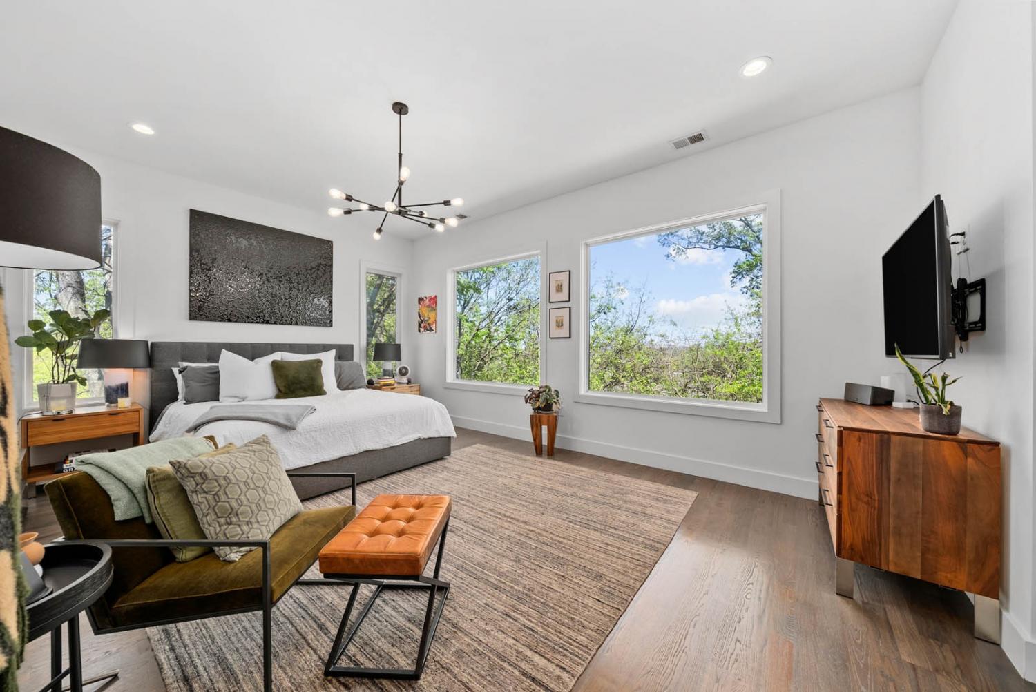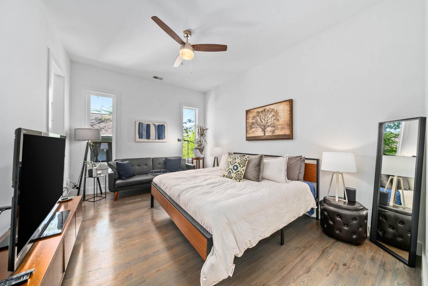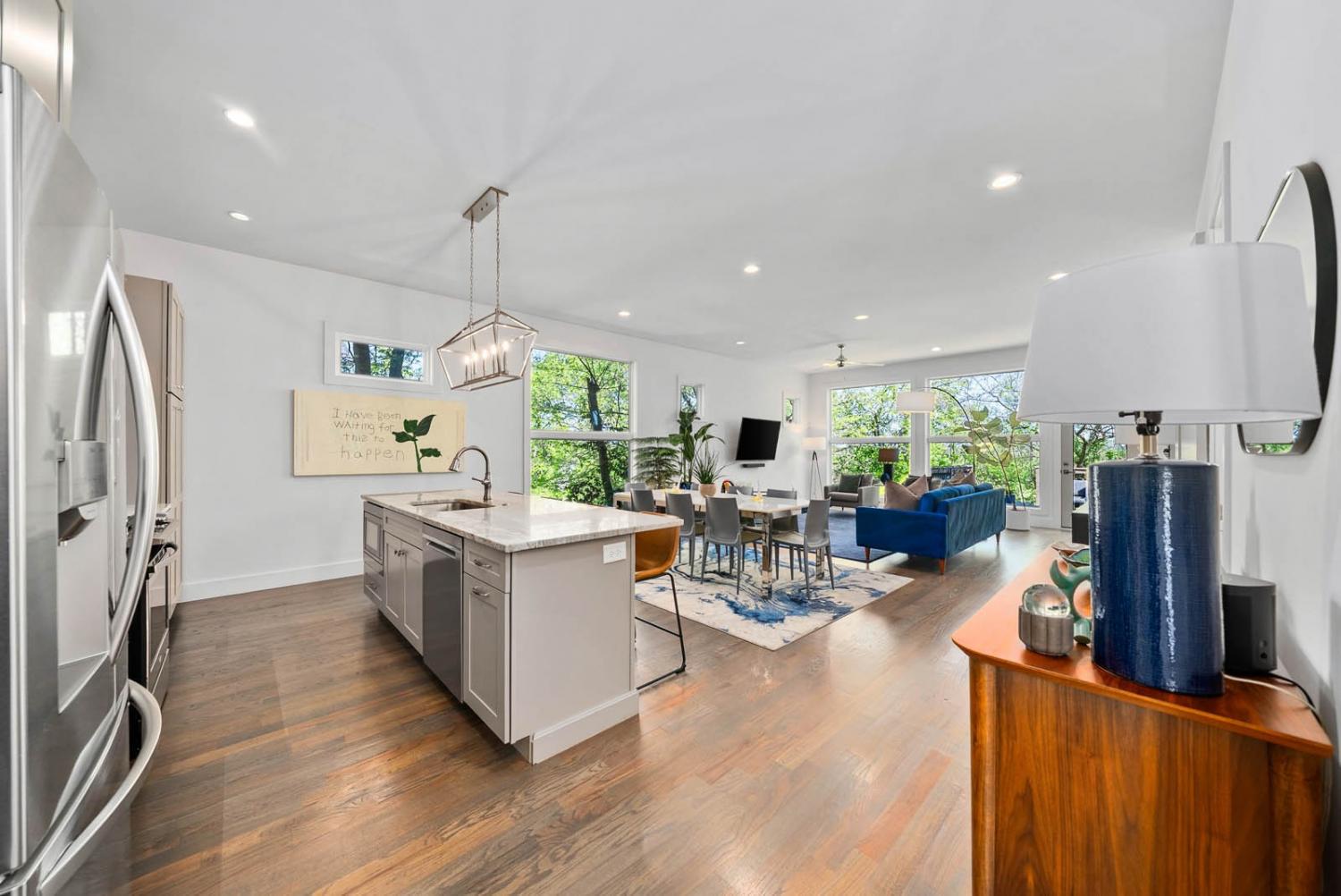 Located on a quiet, dead-end street in a quaint neighborhood, this gorgeous 3-bedroom, 2.5-bathroom home offers a perfect blend of modern luxury and comfort. With expansive oversized windows and soaring high ceilings, the home is bathed in natural light, creating an open, airy atmosphere throughout. The spacious kitchen is a chef's dream, featuring sleek quartz countertops, a large kitchen island, and a gas stove—perfect for entertaining or enjoying family meals. The owner's suite is a true retreat with a large walk-in custom closet & an on-suite bathroom that includes a walk-in shower and stunning floor-to-ceiling tile. Two spacious guest bedrooms share a convenient Jack and Jill bathroom, with the same high-end finishes. The entire home boasts beautiful hardwood floors, adding warmth and elegance to every room. Step outside onto the back deck and enjoy breathtaking views of downtown Nashville—perfect for sipping your morning coffee or hosting guests. The home also includes an attached two-car garage for added convenience. Situated just minutes from Sylvan Park and The Nations, this home offers easy access to vibrant Nashville living, while maintaining the peaceful charm of a quiet neighborhood. Ask about lender incentives.