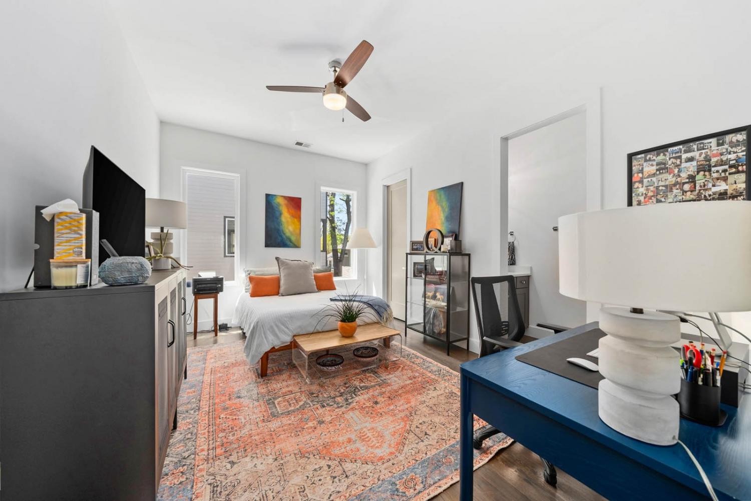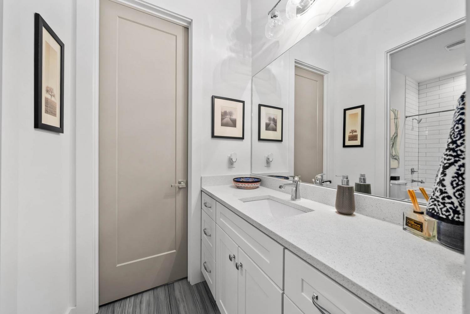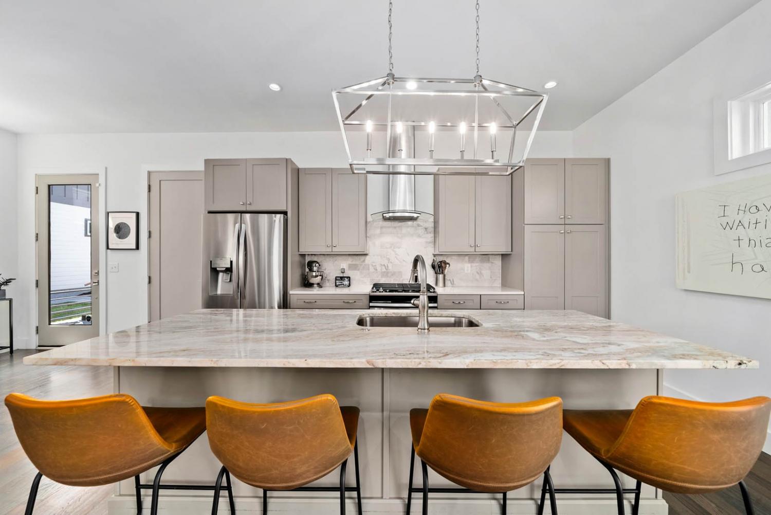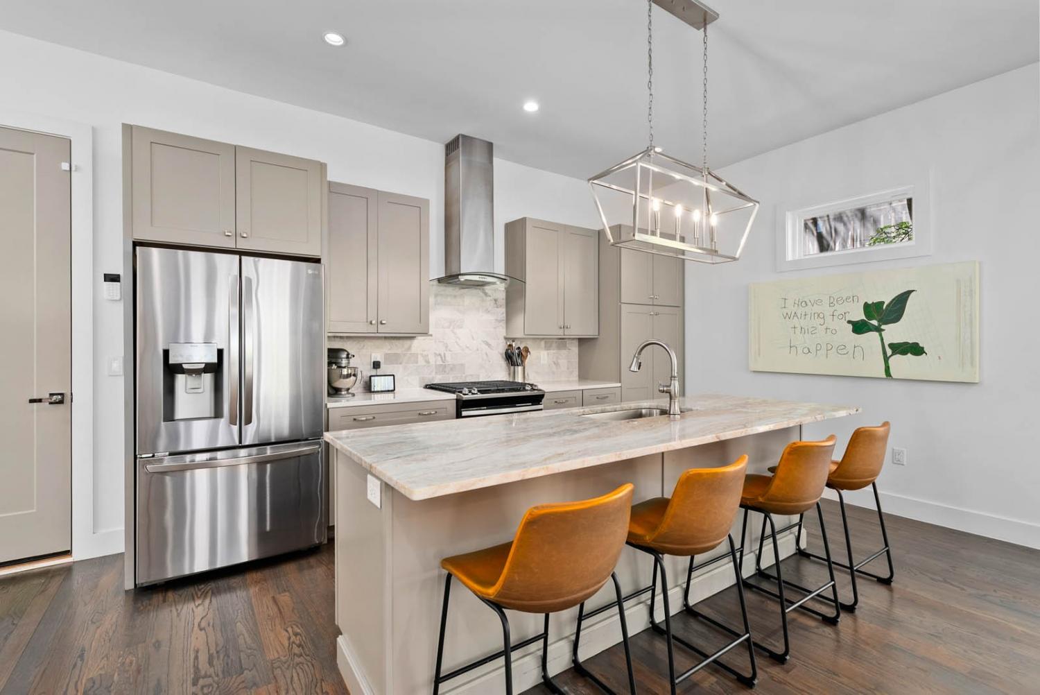Located on a quiet, dead-end street in a quaint neighborhood, this gorgeous 3-bedroom, 2.5-bathroom home offers a perfect blend of modern luxury and comfort. With expansive oversized windows and soaring high ceilings, the home is bathed in natural light, creating an open, airy atmosphere throughout. The spacious kitchen is a chef's dream, featuring sleek quartz countertops, a large kitchen island, and a gas stove—perfect for entertaining or enjoying family meals. The owner's suite is a true retreat with a large walk-in custom closet & an on-suite bathroom that includes a walk-in shower and stunning floor-to-ceiling tile. Two spacious guest bedrooms share a convenient Jack and Jill bathroom, with the same high-end finishes. The entire home boasts beautiful hardwood floors, adding warmth and elegance to every room. Step outside onto the back deck and enjoy breathtaking views of downtown Nashville—perfect for sipping your morning coffee or hosting guests. The home also includes an attached two-car garage for added convenience. Situated just minutes from Sylvan Park and The Nations, this home offers easy access to vibrant Nashville living, while maintaining the peaceful charm of a quiet neighborhood. Ask about lender incentives.