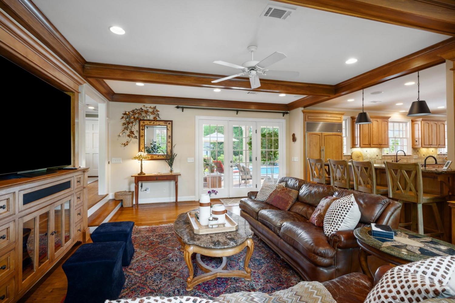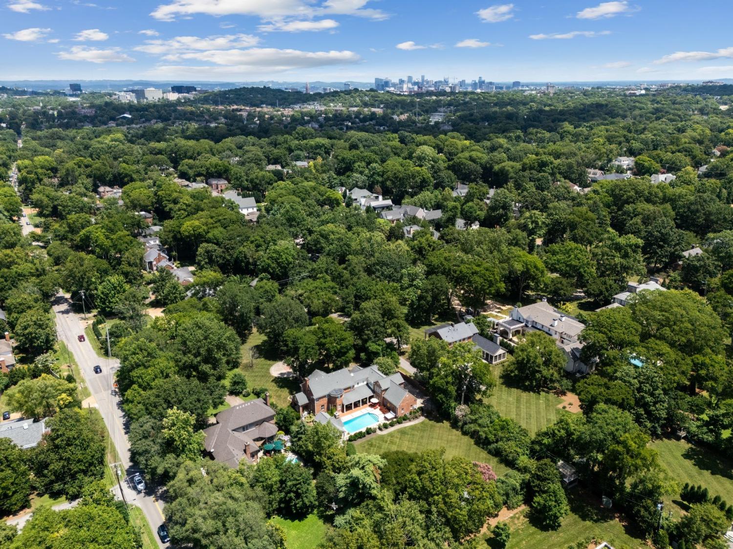 Set on a level estate lot on one of Nashville's most coveted streets, this classic Colonial Revival home-originally built in 1937-has been thoughtfully expanded by Allard Ward Architects to blend timeless elegance with modern comfort. A gracious entry leads to traditional formal spaces, while the open kitchen and family room, along with a light-filled breakfast area, provide an inviting and functional flow for everyday living. The spacious primary suite features a sitting area, dual closets and a well appointed bath. Seamlessly connected to the outdoor living space, the kitchen opens to a covered porch overlooking a stunning pool, outdoor pavilion with a professional-grade grilling area, a double sided fireplace, a custom daybed and sweeping lawn-perfect for effortless entertaining. With ample off-street guest parking and an oversized three car garage, this exceptional property offers rare livability, architectural beauty and a truly premier Nashville location.