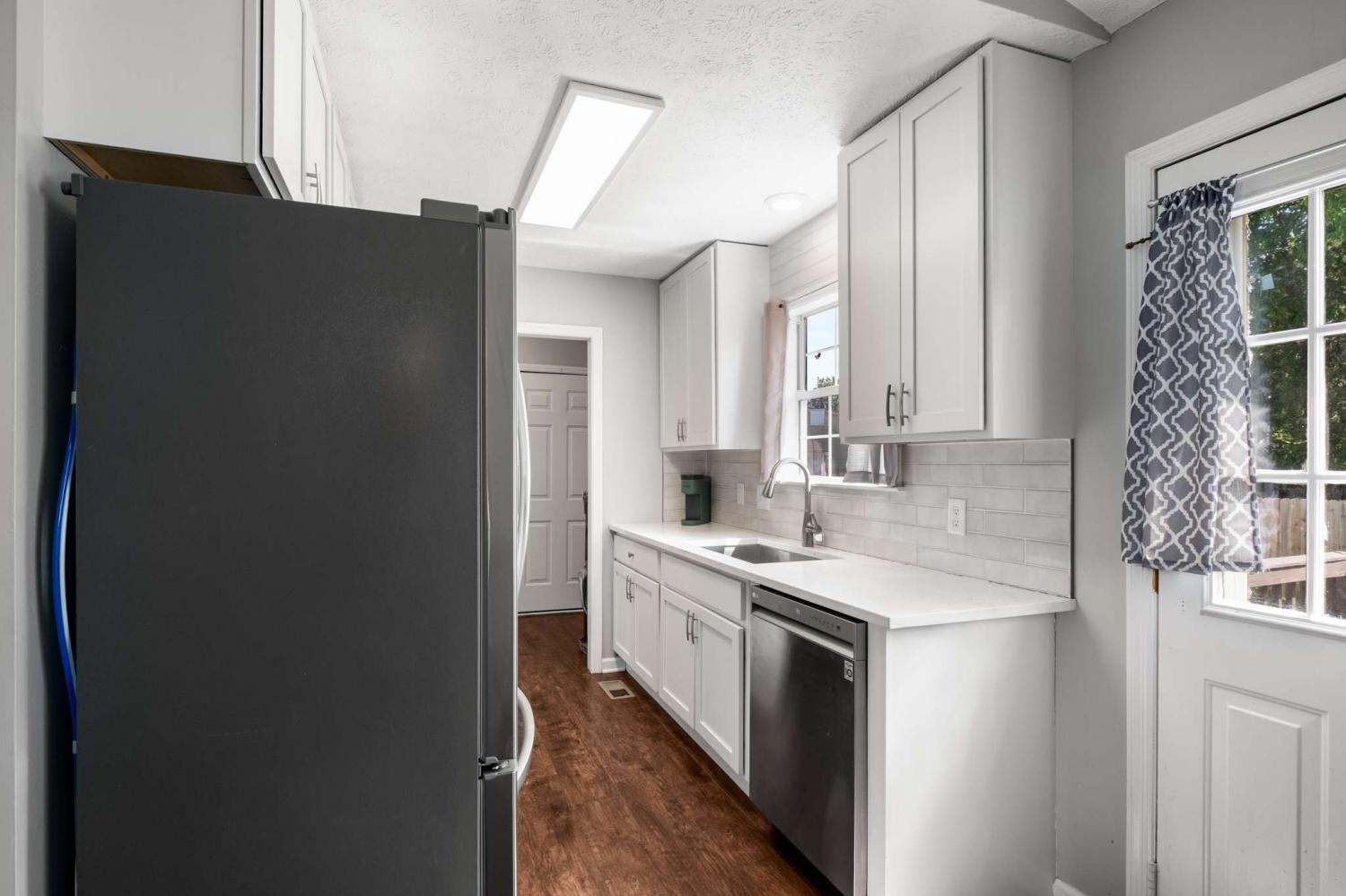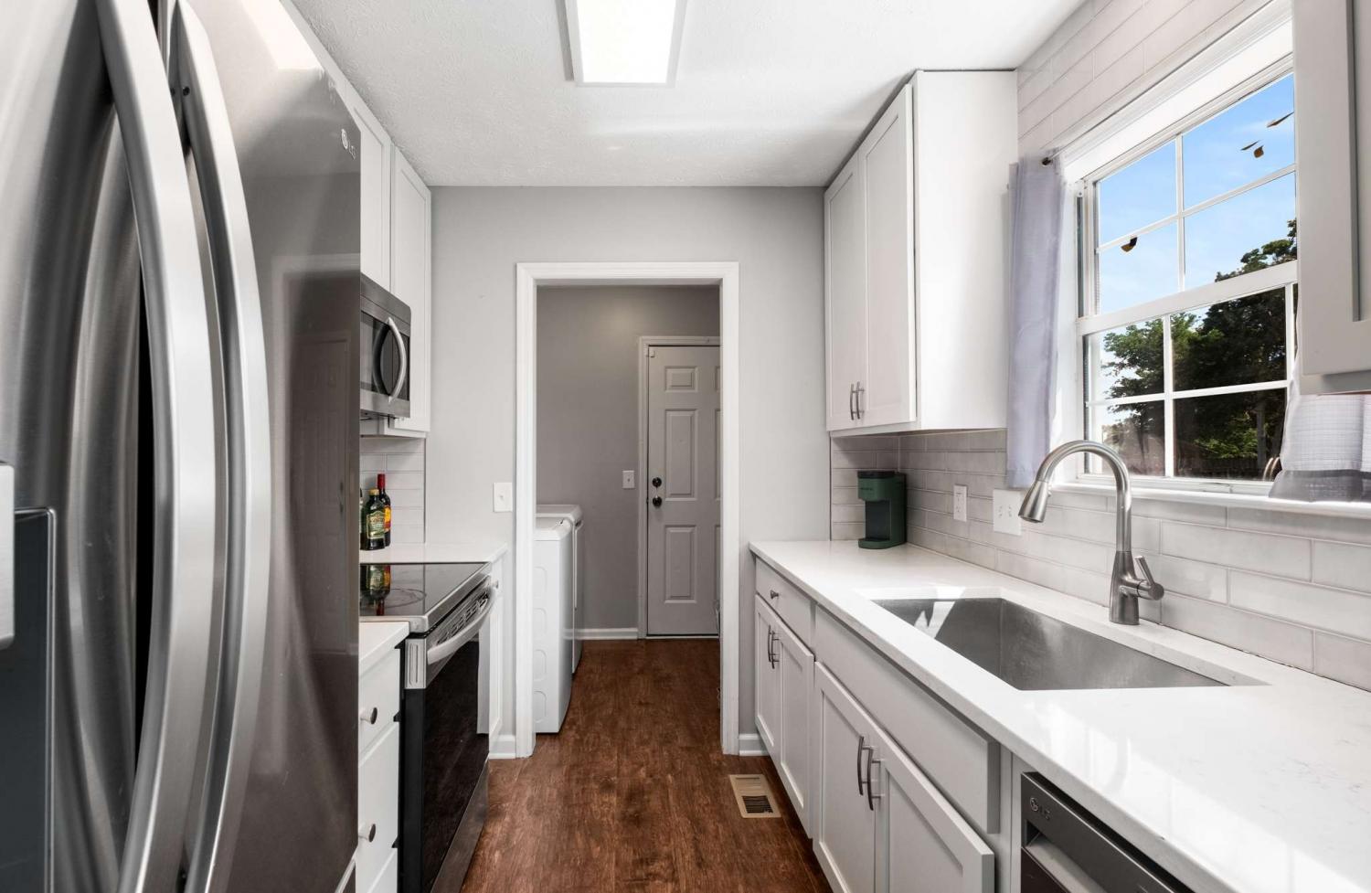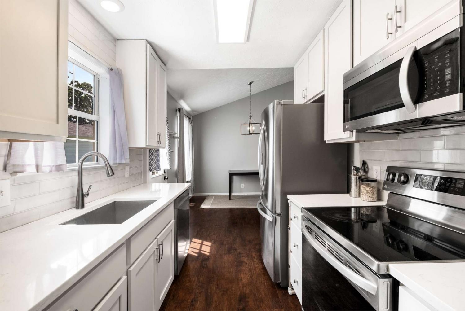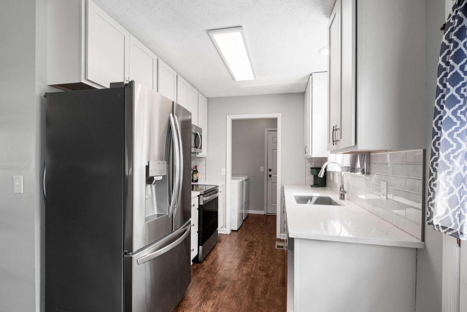 Welcome to this adorable corner-lot ranch home in the desirable Peppertree Forest neighborhood - ideally located near La Vergne and Smyrna, and just minutes from the lake, marina, parks, and outdoor recreation. Step onto the covered front porch and enjoy a shady spot to relax or sip your morning coffee. Inside, you'll find a bright and welcoming layout with vaulted ceilings that bring in natural light and a cozy gas fireplace in the living room, along with a neutral paint palette throughout. This home has been thoughtfully updated over the past three years, featuring a new roof, remodeled kitchen and bathrooms, and new flooring throughout - carpet, laminate, and tile. The kitchen offers white cabinetry with matching quartz counters and tile backsplash, with stainless steel appliances. The primary bedroom features a private full bathroom. Across the house, two more bedrooms share a second full bathroom. The laundry room has built-in cabinetry for storage. Head out back to the deck, perfect for summer grilling, entertaining, or simply soaking up the sun. The back yard is perfect for pets, play, and more. Situated within 2 miles of shopping, dining, schools, and all your favorite lake activities - also, there’s no HOA in this community. Schedule your private tour today!