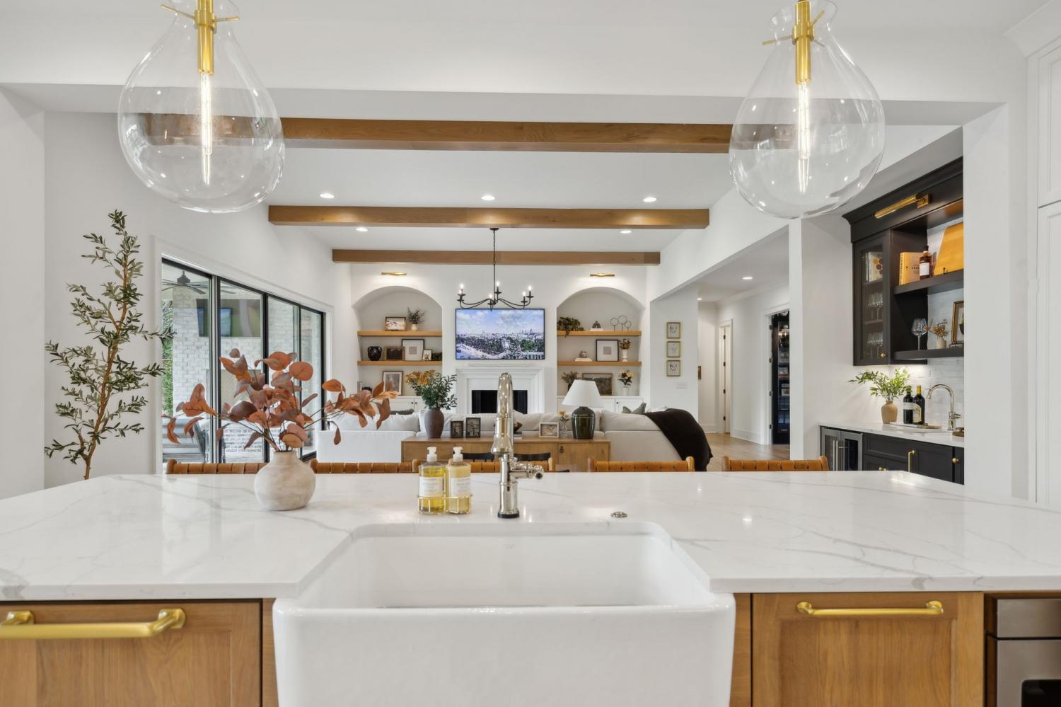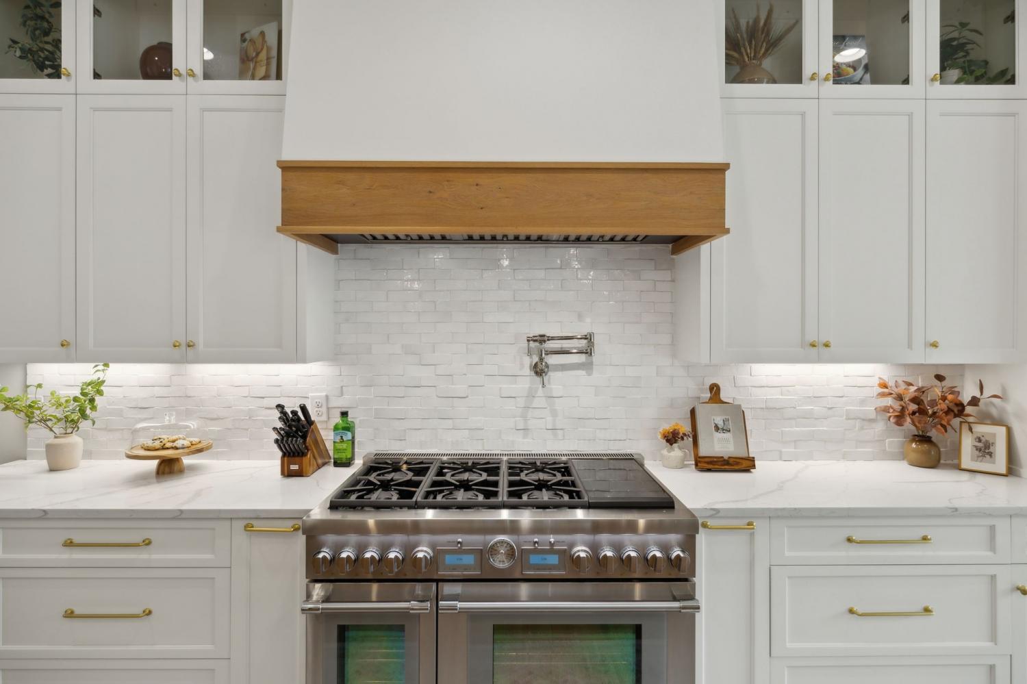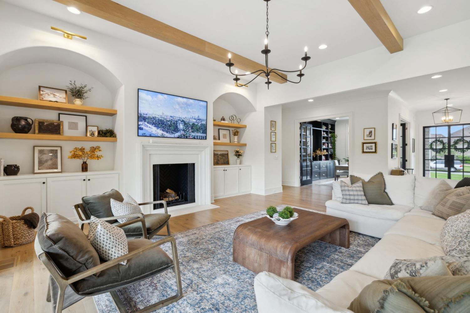 Stunning 2 year old custom-built home by Catalyst Builders in coveted Legends Ridge. Set on 1.3 private acres, this beautifully designed residence offers an open floor plan with seamless flow and thoughtfully curated designer finishes throughout. The striking kitchen features a waterfall-edge Quartz island, designer lighting, Thermador 6-burner gas range with double ovens, Bosch dishwasher, Thermador refrigerator, Sharp drawer microwave, and a KitchenAid ice maker. Enjoy the convenience of a coffee bar, cozy banquette seating, and a fully equipped prep kitchen with a second KitchenAid dishwasher, second refrigerator, and drop zone. A spacious walk-in pantry with Zephyr beverage fridge and a wet bar make entertaining effortless. The expansive Great Room is the heart of the home, with beamed ceilings, custom built-ins, and a gas fireplace. A temperature-controlled wine room and large office with glass doors and built-ins add sophistication and function. Two main-level bedrooms include a luxurious owner’s suite with vaulted ceiling, boutique-style walk-in closet with center island, and spa-like bath. Outdoor living is equally impressive with a covered brick porch, second fireplace, irrigation system, and privacy fencing. Additional main-level features include a guest suite with ensuite bath, powder room, and utility zone with extra fridge. Upstairs, enjoy a large bonus room, four ensuite bedrooms and spacious attic storage, a private au pair suite with separate living area and full bath, and a hobby room currently used as a gym. A 3-car garage with epoxy flooring completes the exterior features. High-end finishes include Henry custom white oak cabinetry, Marvin windows, and designer lighting from Visual Comfort, Serena & Lily, and Pottery Barn. A rare offering that blends timeless design with modern luxury—don’t miss this one-of-a-kind opportunity in Legends Ridge.