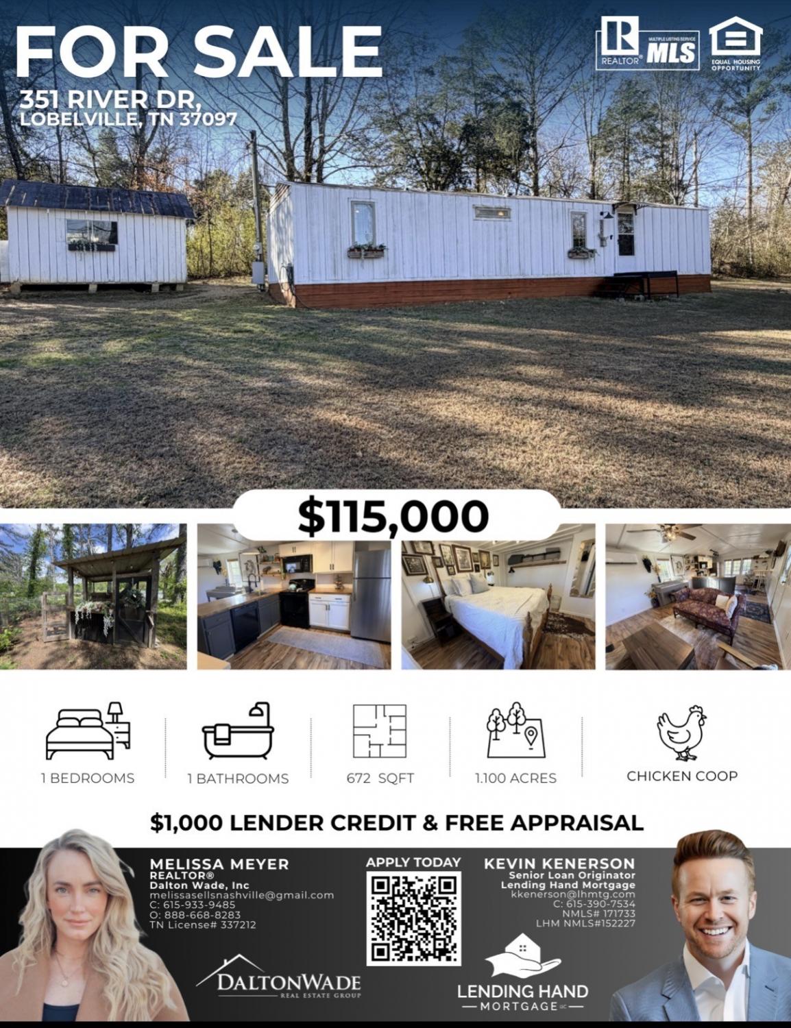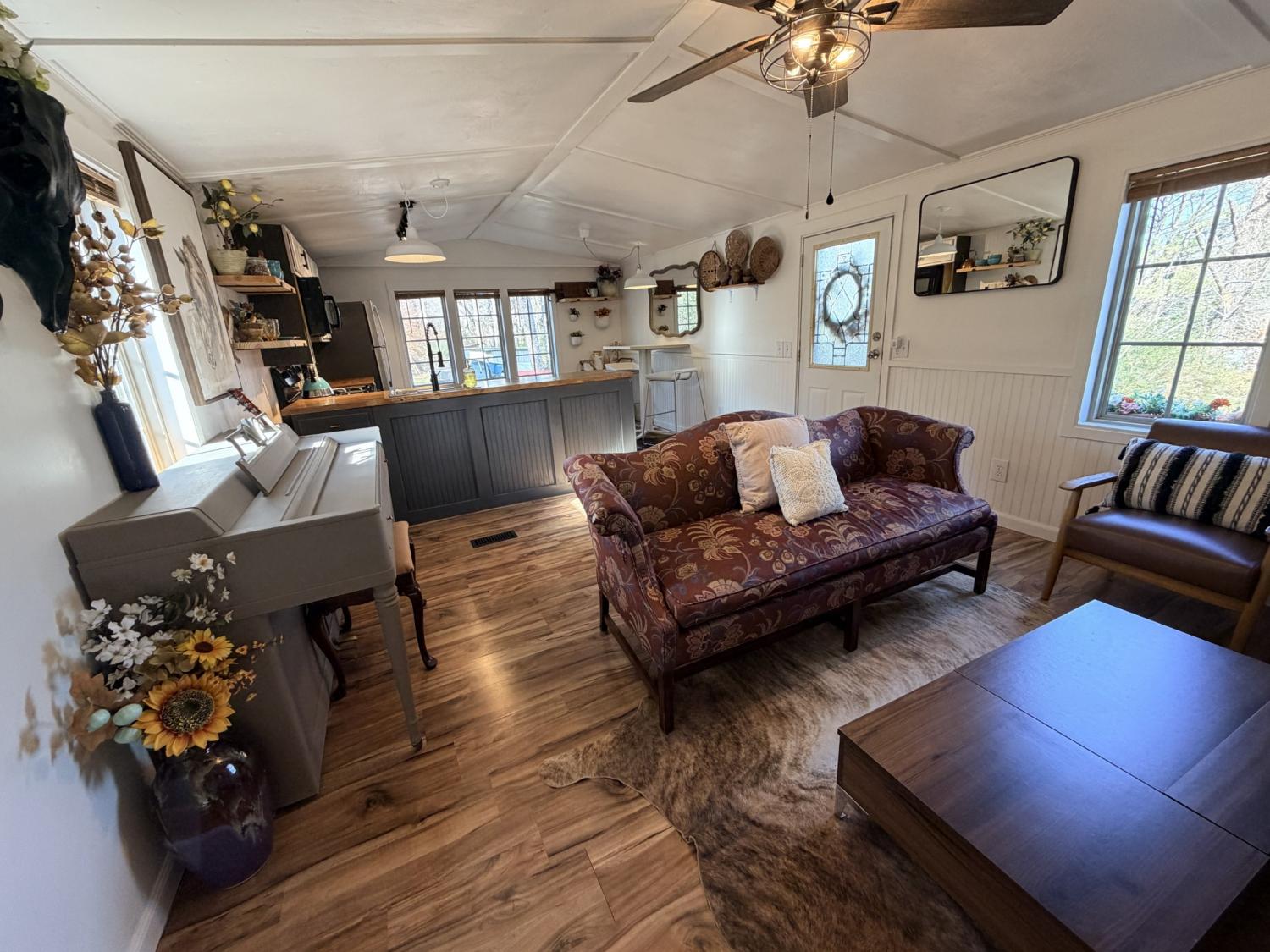 Welcome to your peaceful retreat just minutes from the scenic Buffalo River! Set on a full acre within city limits, this cozy 1-bedroom, 1-bath home offers a rare opportunity with two separate lot sites—ideal for future expansion, a second dwelling, or investment potential. The interior features a bright open-concept living room and kitchen, creating a spacious, welcoming feel perfect for everyday living or entertaining. A dedicated coffee bar adds charm and convenience. Outside, you'll love the large chicken coop with fenced run, ideal for hobby farming or sustainable living, along with a sprawling yard shaded by mature trees. Whether you're seeking a weekend escape, a rental property, or a peaceful place to call home, this property is full of potential. $1,000 Lender credit with free appraisal available! Conventional and FHA financing