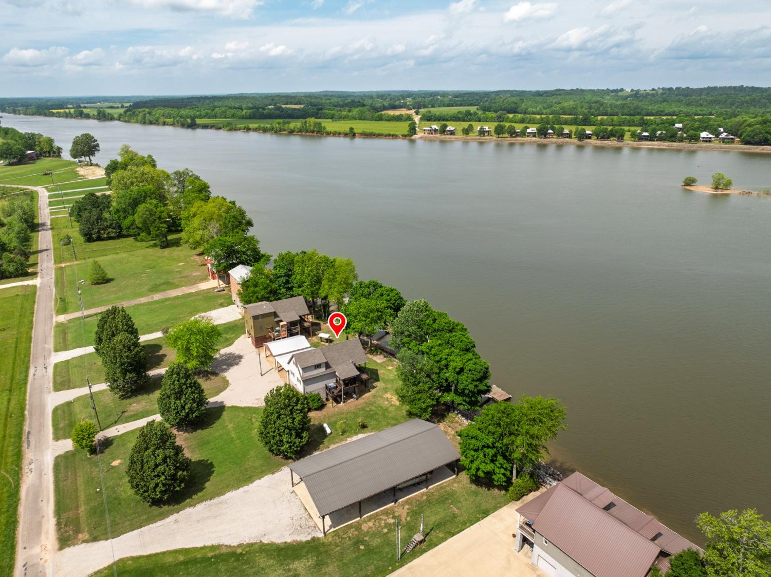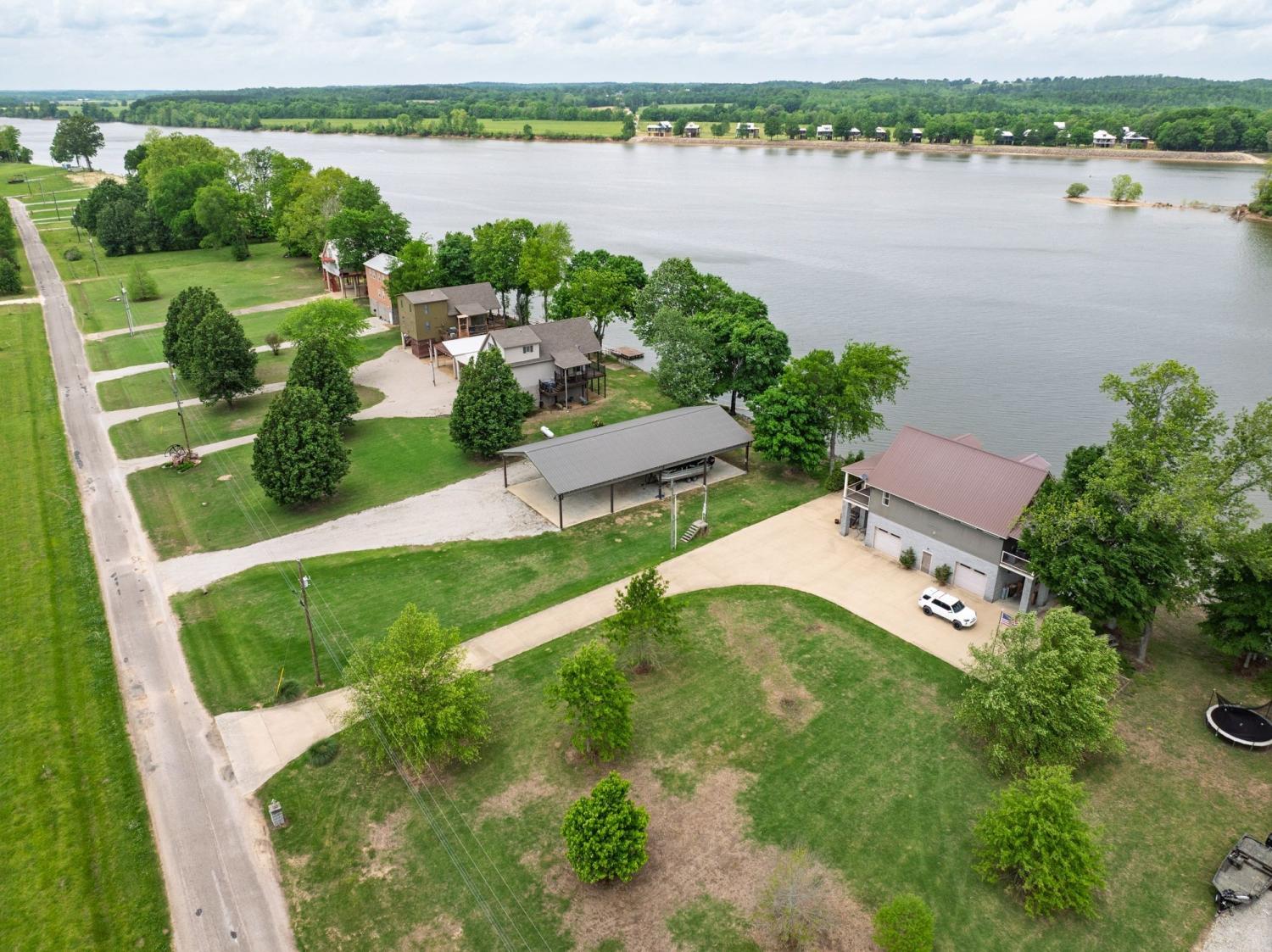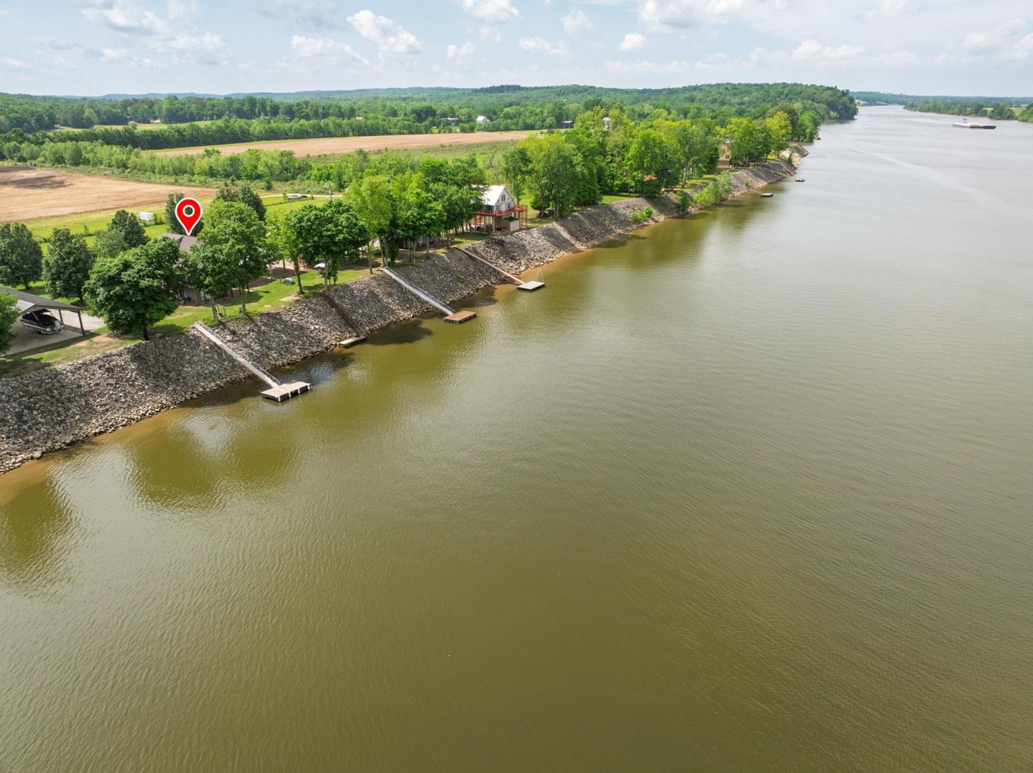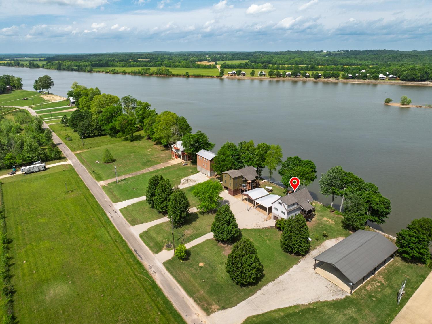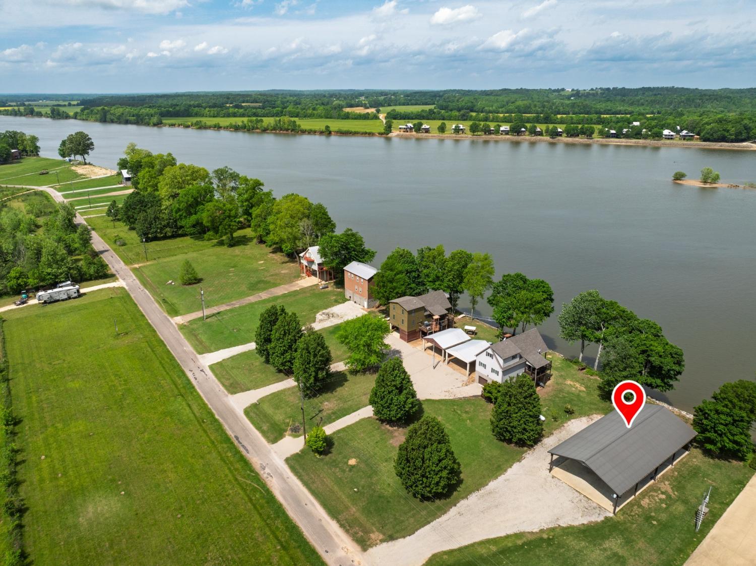 1.13 ACRE RiverFront Living! Mostly furnished & Custom 3BR home w/dock-plus separate 50x65 boat & camper shed! Newly installed composite decking & vaulted ceiling wrap around the waterview deck leading to the home's entry. A wonderful vaulted ceiling anchors the open living area featuring a fireplace & wall of windows-with all the water views! A pretty waterview dining/kitchen area accommodates a breakfast bar, custom cabinetry, granite counters, tile backsplash, & all appliances-w/side door out to the grilling/dining porch. 2 BRs, full BA, & washer/dryer in laundry room complete the main floor. Upstairs is a flexible open loft-roomy enough for an office, bunk room, or den & master BR w/private BA & roomy walk in closet. The heated/cooled garage features a half bath & a large flexible space perfect for gaming, sitting, or bunk area! Ground level covered patio features a perfect place to enjoy the magnificent sunsets as well as a 2nd location for grilling. Lrg covered double carport adds to the plentiful parking & the cargo elevator provides an effortless way to bring in groceries & other household items. Ramp leads to the private floating dock a set of steps down to the beach area are shared with the neighbor as is the well which is located on this 1.13 acre waterfront lot w/197 feet of water frontage overlooking the main channel of the TN River. The extra large boat/camper shed offers plenty of room for extra guests to bring their camper or for your boats & four wheelers/side by sides! Community boat launch next door as well as 2 commercial marinas nearby-located just off Hwy 641 mins from the small TN River towns of Clifton & Bath Springs-between Memphis & Nashville. Ready for a new Family-just bring the kids & the boat!