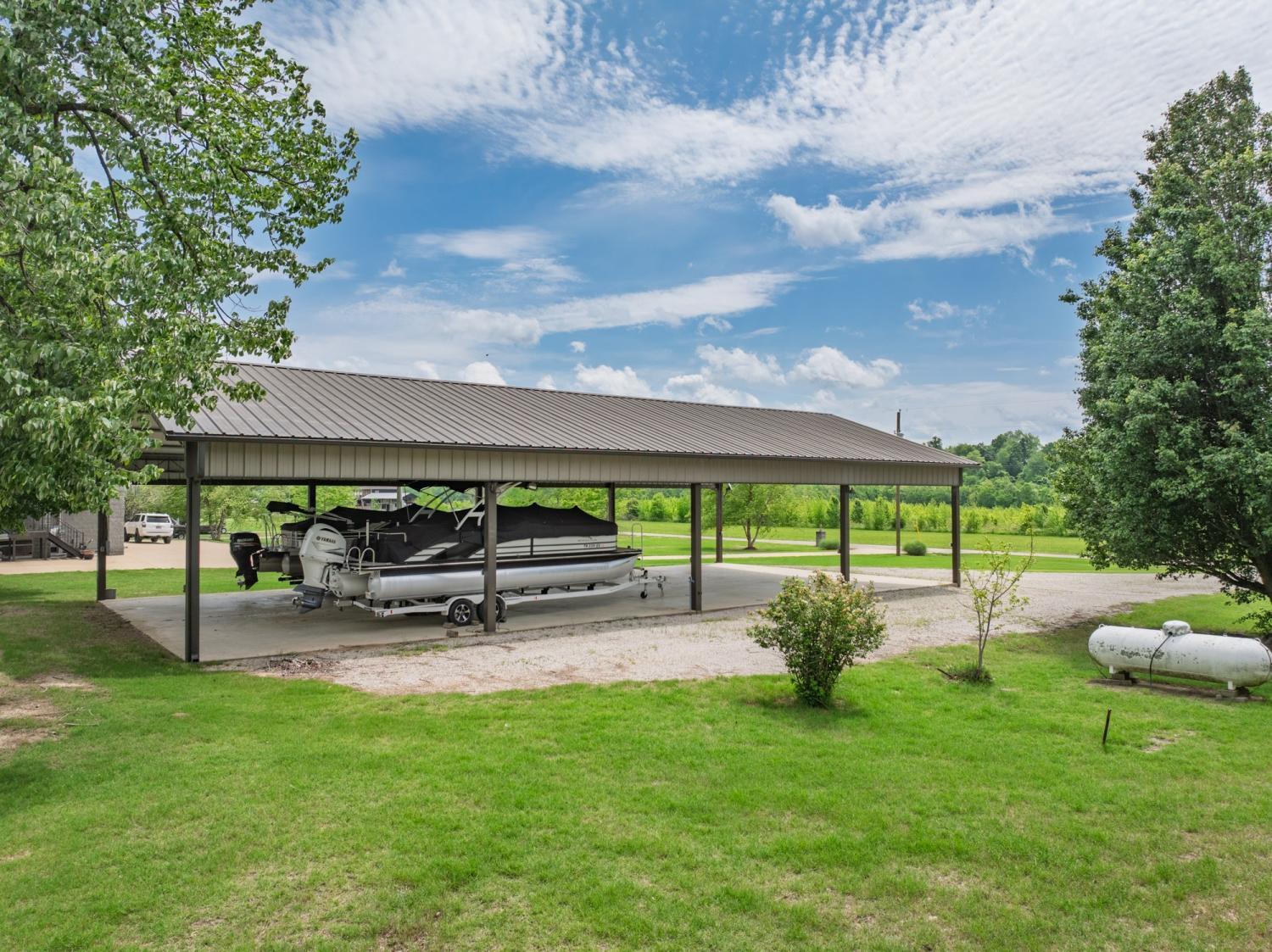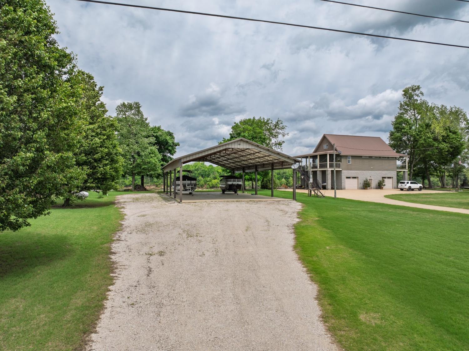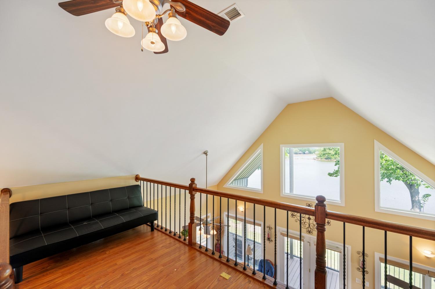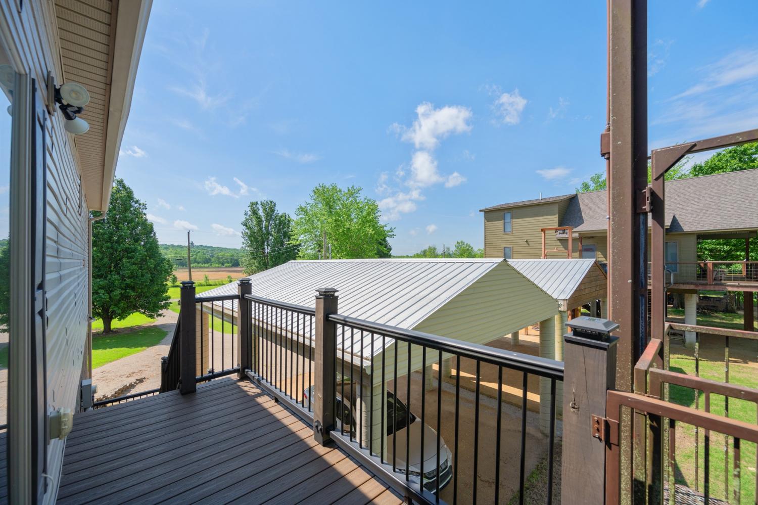 1.13 ACRE RiverFront Living! Mostly furnished & Custom 3BR home w/dock-plus separate 50x65 boat & camper shed! Newly installed composite decking & vaulted ceiling wrap around the waterview deck leading to the home's entry. A wonderful vaulted ceiling anchors the open living area featuring a fireplace & wall of windows-with all the water views! A pretty waterview dining/kitchen area accommodates a breakfast bar, custom cabinetry, granite counters, tile backsplash, & all appliances-w/side door out to the grilling/dining porch. 2 BRs, full BA, & washer/dryer in laundry room complete the main floor. Upstairs is a flexible open loft-roomy enough for an office, bunk room, or den & master BR w/private BA & roomy walk in closet. The heated/cooled garage features a half bath & a large flexible space perfect for gaming, sitting, or bunk area! Ground level covered patio features a perfect place to enjoy the magnificent sunsets as well as a 2nd location for grilling. Lrg covered double carport adds to the plentiful parking & the cargo elevator provides an effortless way to bring in groceries & other household items. Ramp leads to the private floating dock a set of steps down to the beach area are shared with the neighbor as is the well which is located on this 1.13 acre waterfront lot w/197 feet of water frontage overlooking the main channel of the TN River. The extra large boat/camper shed offers plenty of room for extra guests to bring their camper or for your boats & four wheelers/side by sides! Community boat launch next door as well as 2 commercial marinas nearby-located just off Hwy 641 mins from the small TN River towns of Clifton & Bath Springs-between Memphis & Nashville. Ready for a new Family-just bring the kids & the boat!